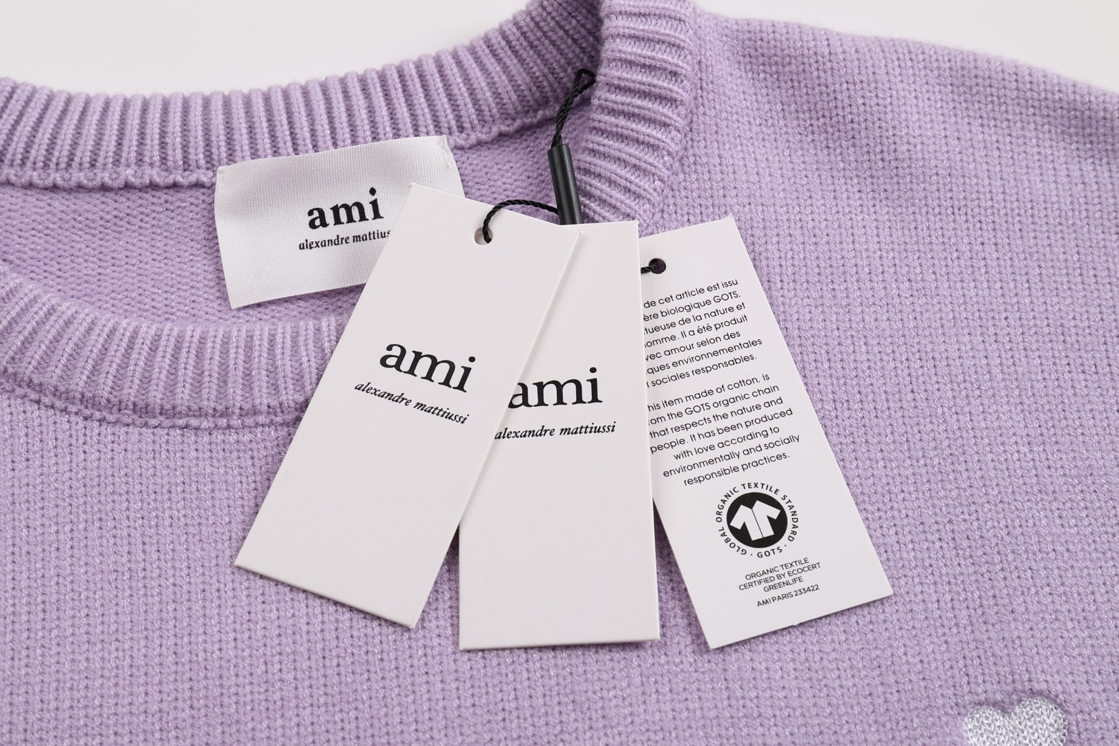 这款衣服是AAAAA 1:1 质量 (非常棒). 使用了和原版一模一样的材料. 商标部分也保持了和Ami一样. 图片拍摄是实物衣服拍摄, 您所收到的实物保证和我们图片一模一样.