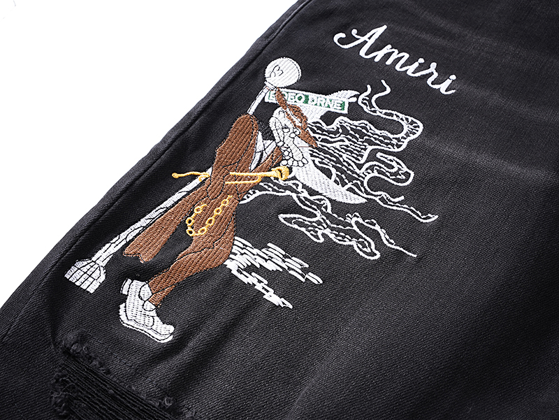 这款衣服是AAAAA 1:1 质量 (非常棒). 使用了和原版一模一样的材料. 商标部分也保持了和AMIRI一样. 图片拍摄是实物衣服拍摄, 您所收到的实物保证和我们图片一模一样.