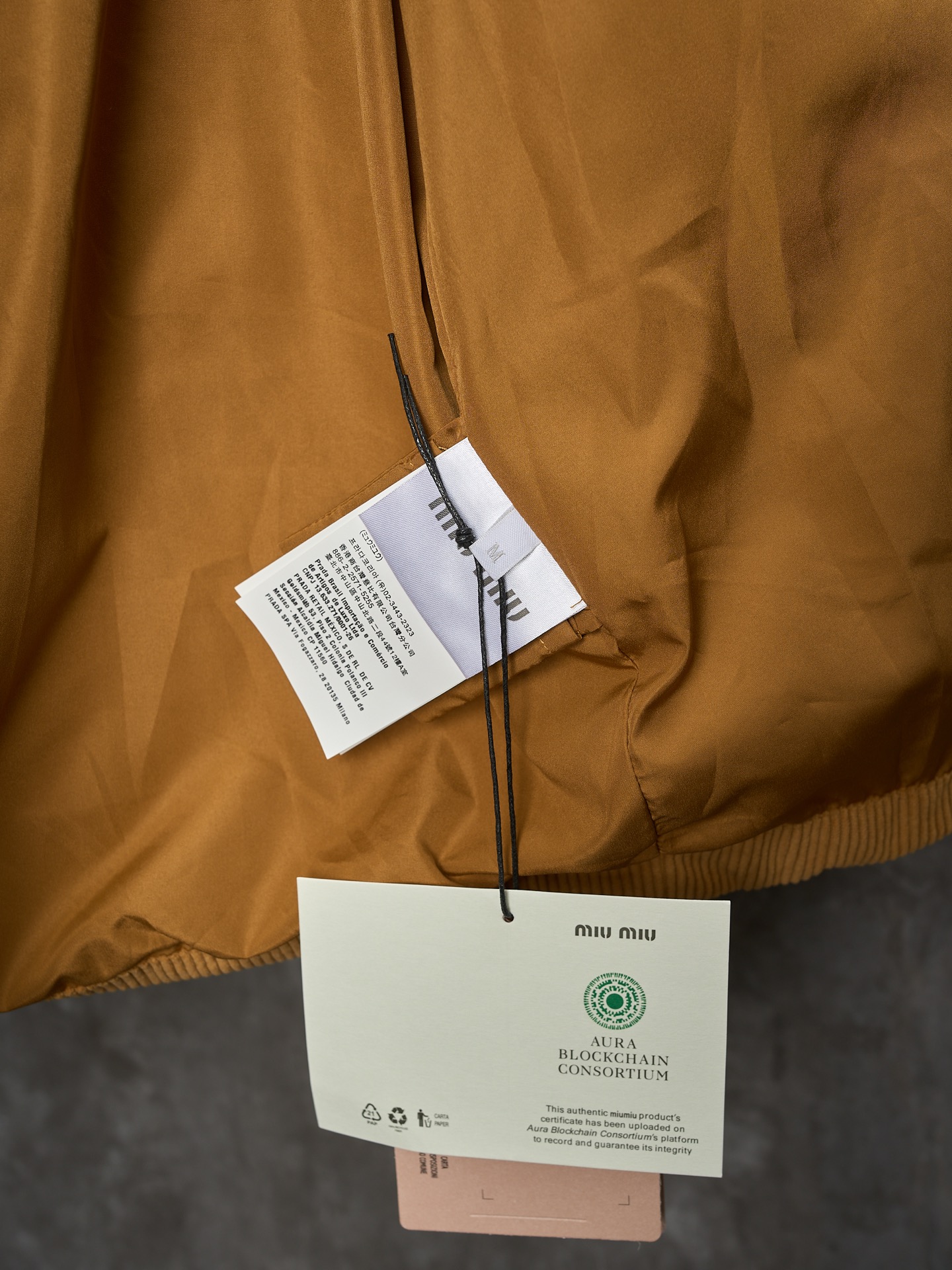 这款衣服是AAAAA 1:1 质量 (非常棒). 使用了和原版一模一样的材料. 商标部分也保持了和缪缪/Miu Miu一样. 图片拍摄是实物衣服拍摄, 您所收到的实物保证和我们图片一模一样.