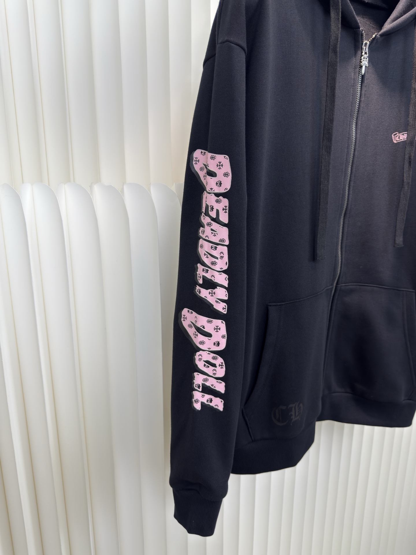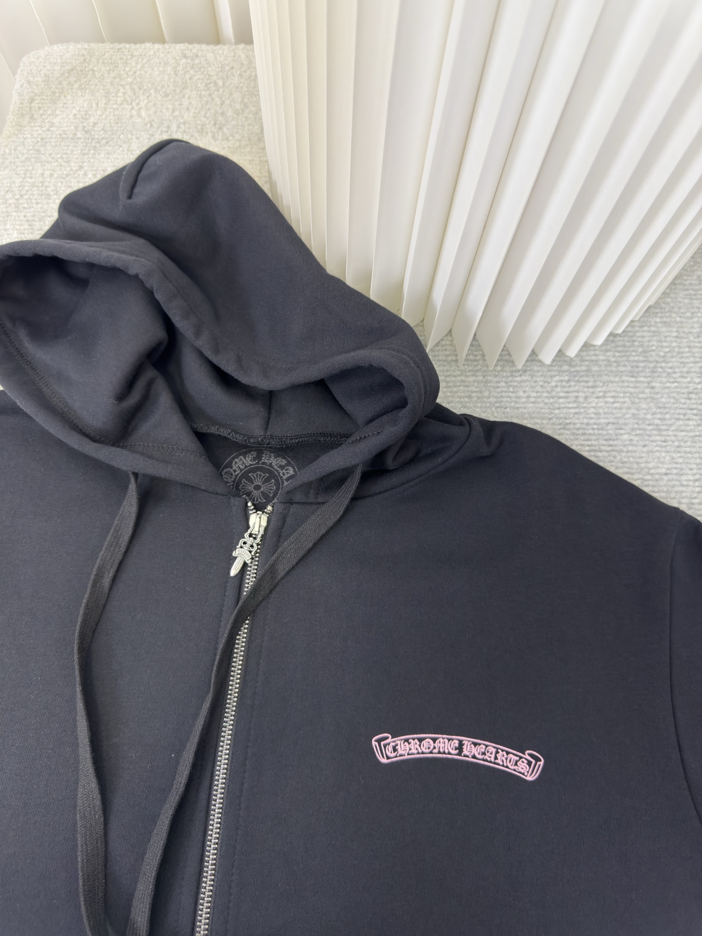 这款衣服是AAAAA 1:1 质量 (非常棒). 使用了和原版一模一样的材料. 商标部分也保持了和克罗心/Chrome Hearts一样. 图片拍摄是实物衣服拍摄, 您所收到的实物保证和我们图片一模一样.