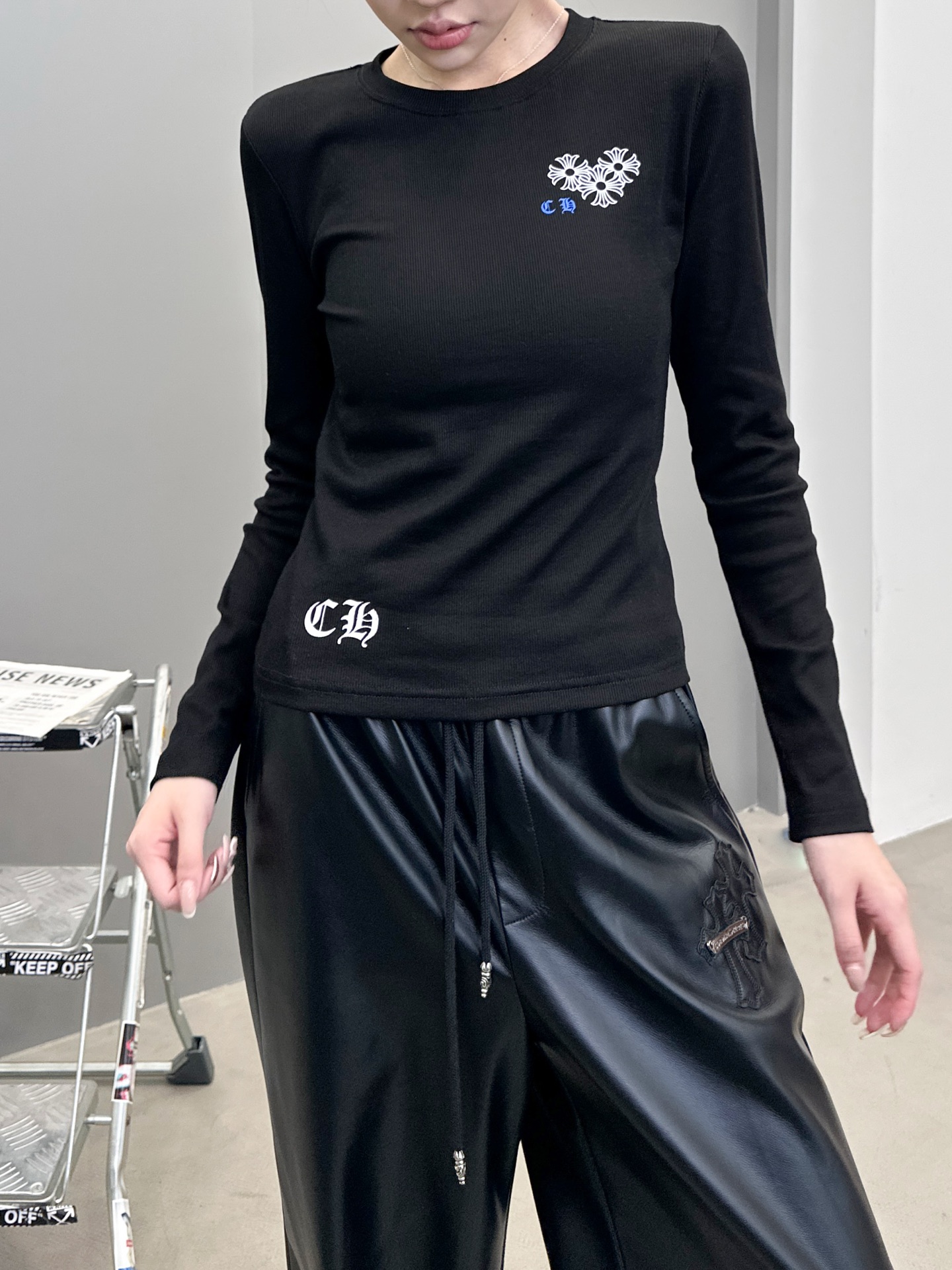 这款衣服是AAAAA 1:1 质量 (非常棒). 使用了和原版一模一样的材料. 商标部分也保持了和克罗心/Chrome Hearts一样. 图片拍摄是实物衣服拍摄, 您所收到的实物保证和我们图片一模一样.