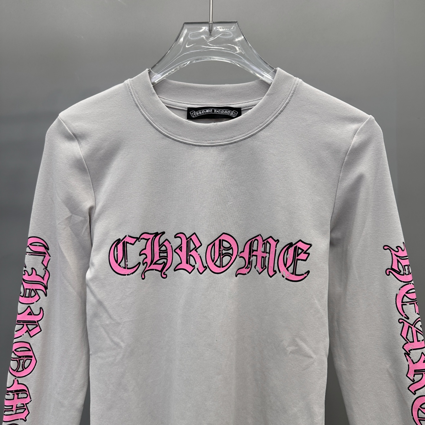 这款衣服是AAAAA 1:1 质量 (非常棒). 使用了和原版一模一样的材料. 商标部分也保持了和克罗心/Chrome Hearts一样. 图片拍摄是实物衣服拍摄, 您所收到的实物保证和我们图片一模一样.