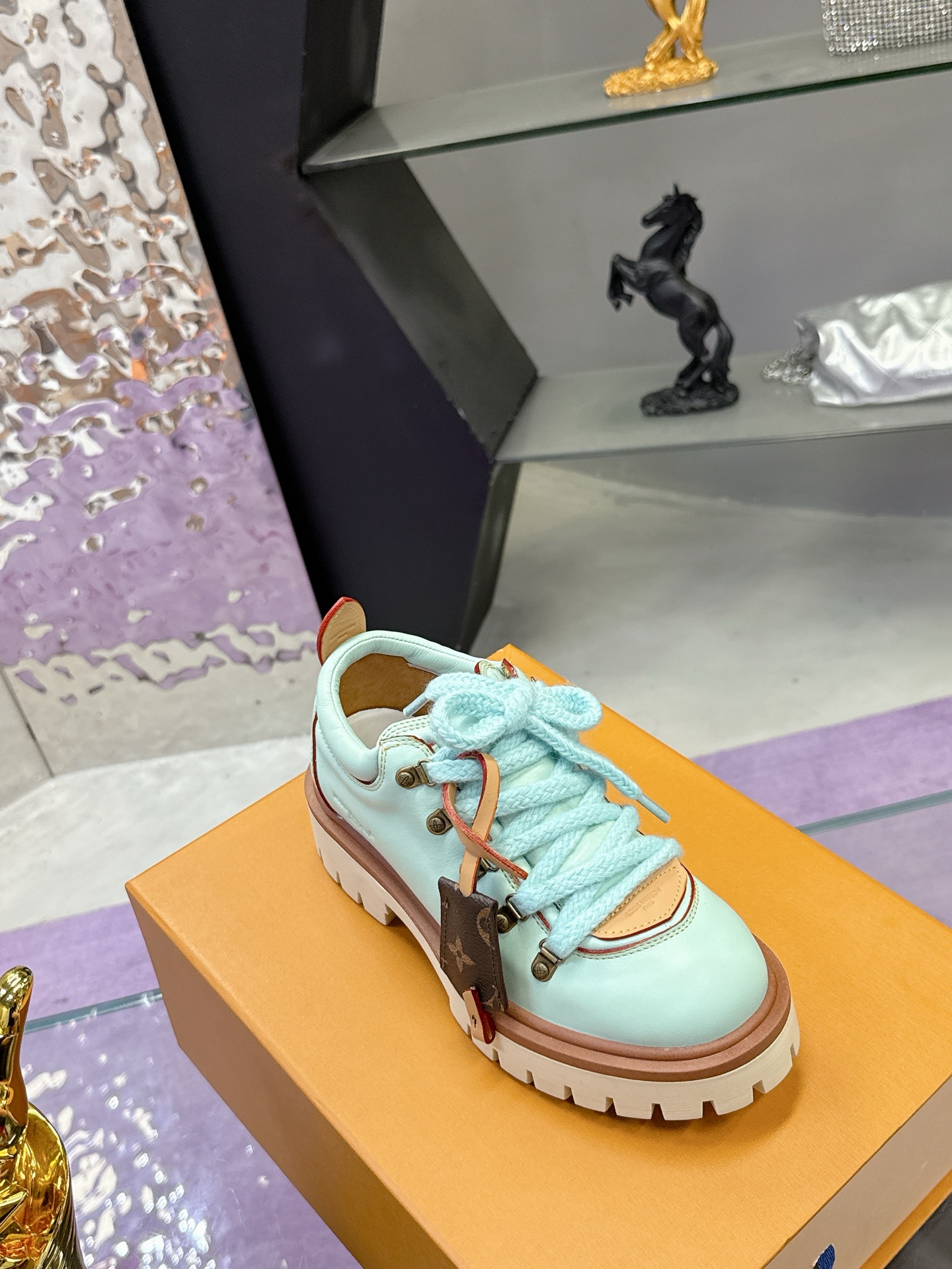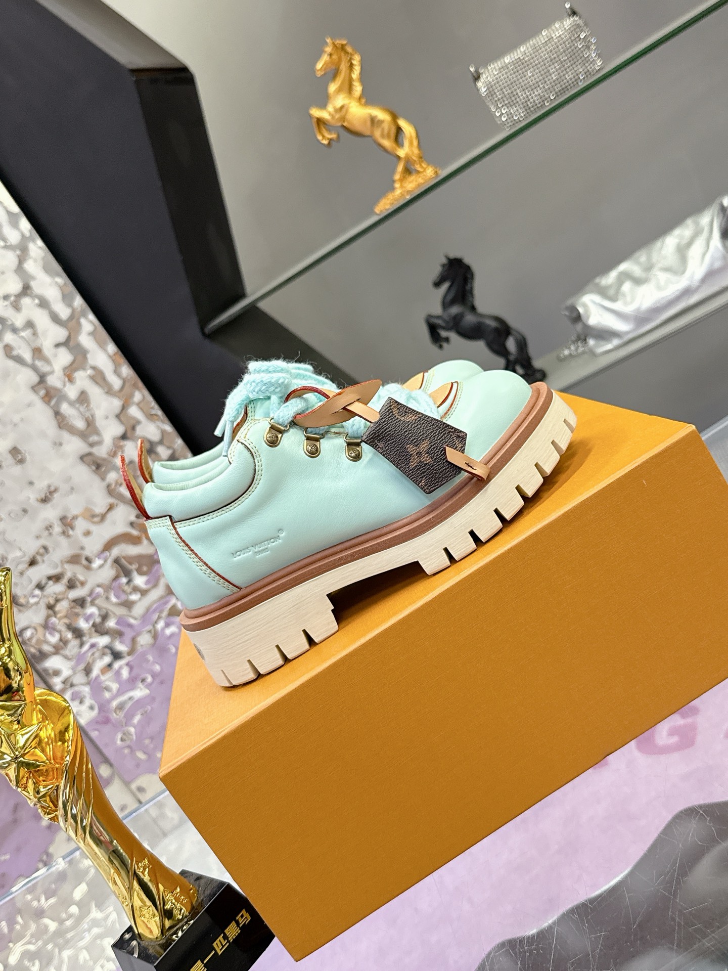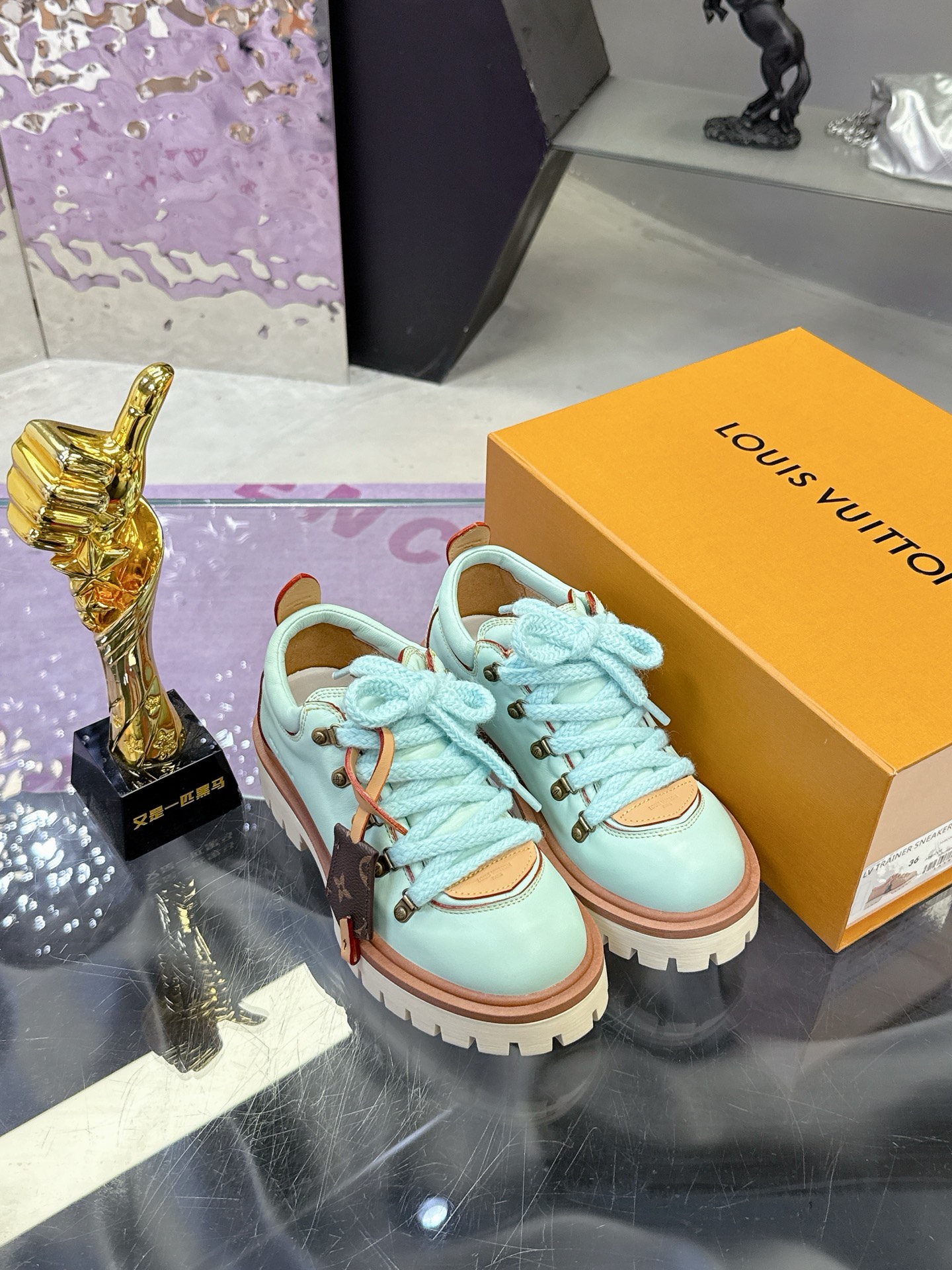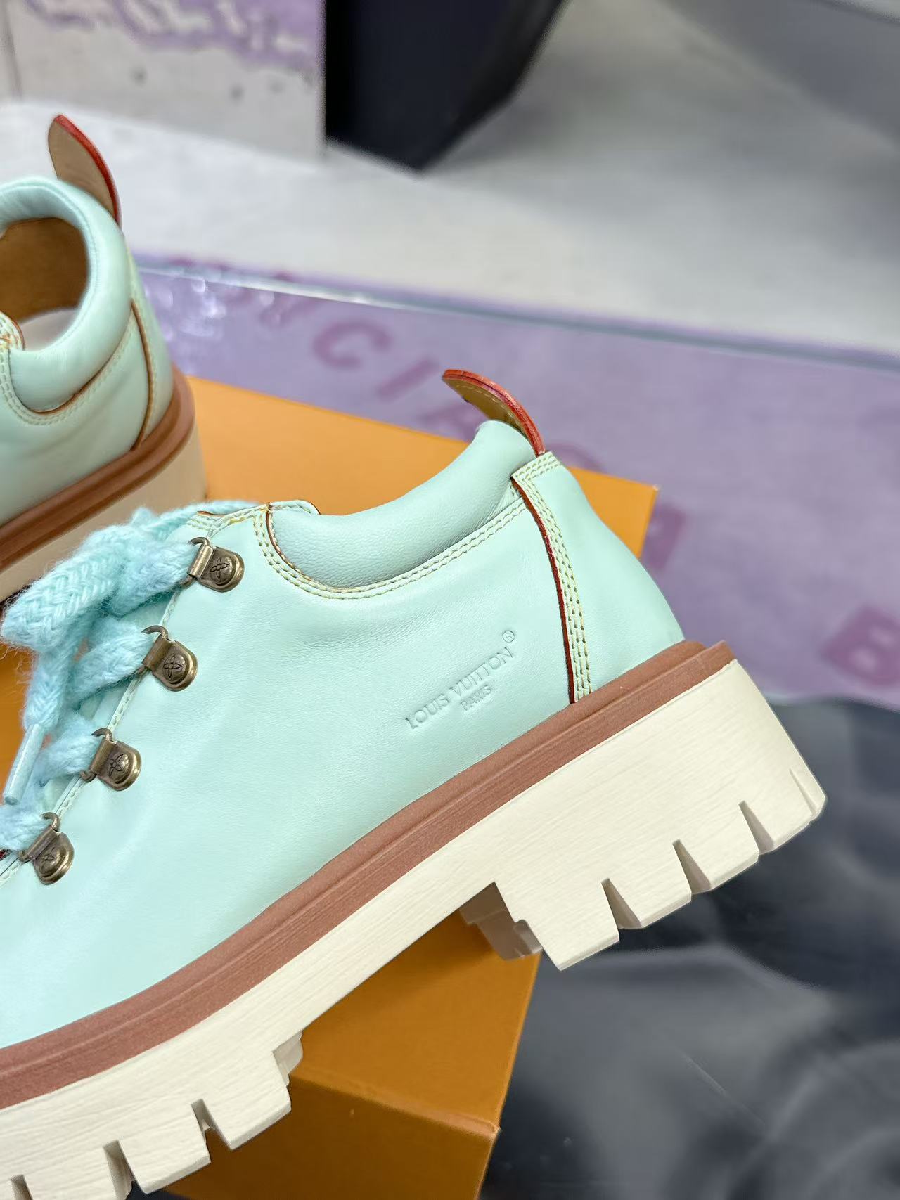 这款鞋子是AAAAA 1:1 质量 (非常棒). 使用了和原版一模一样的材料. 商标部分也保持了和路易威登/Louis Vuitton一样. 图片拍摄是实物鞋子拍摄, 您所收到的实物保证和我们图片一模一样.