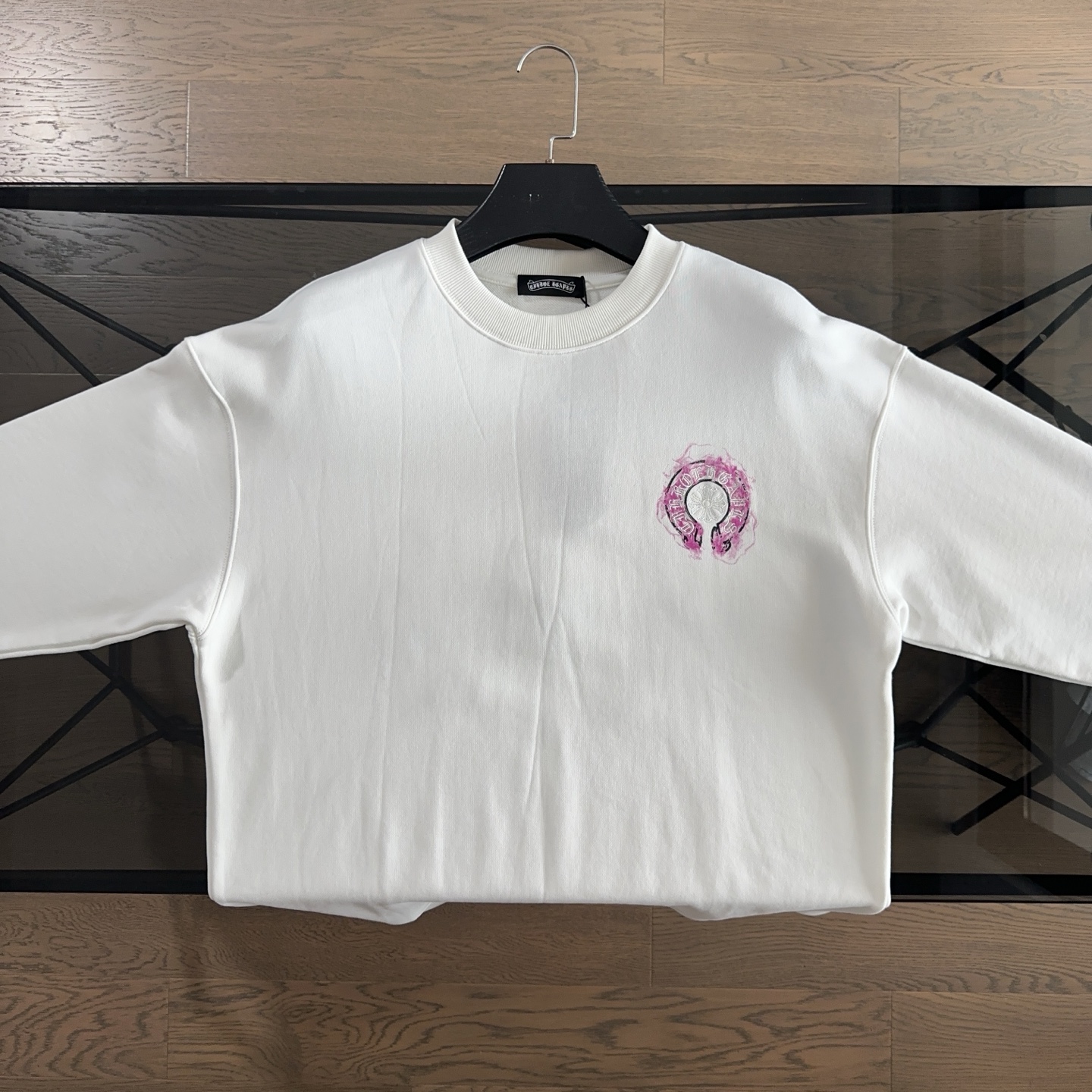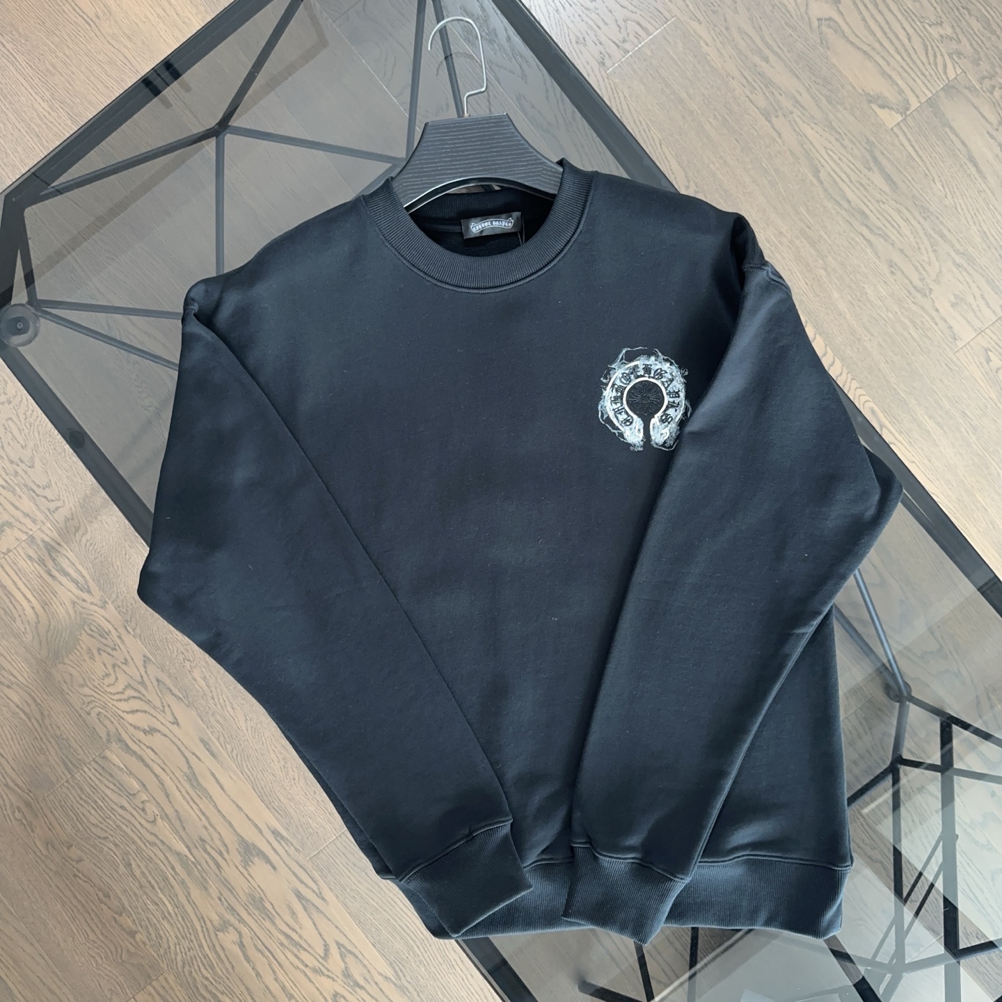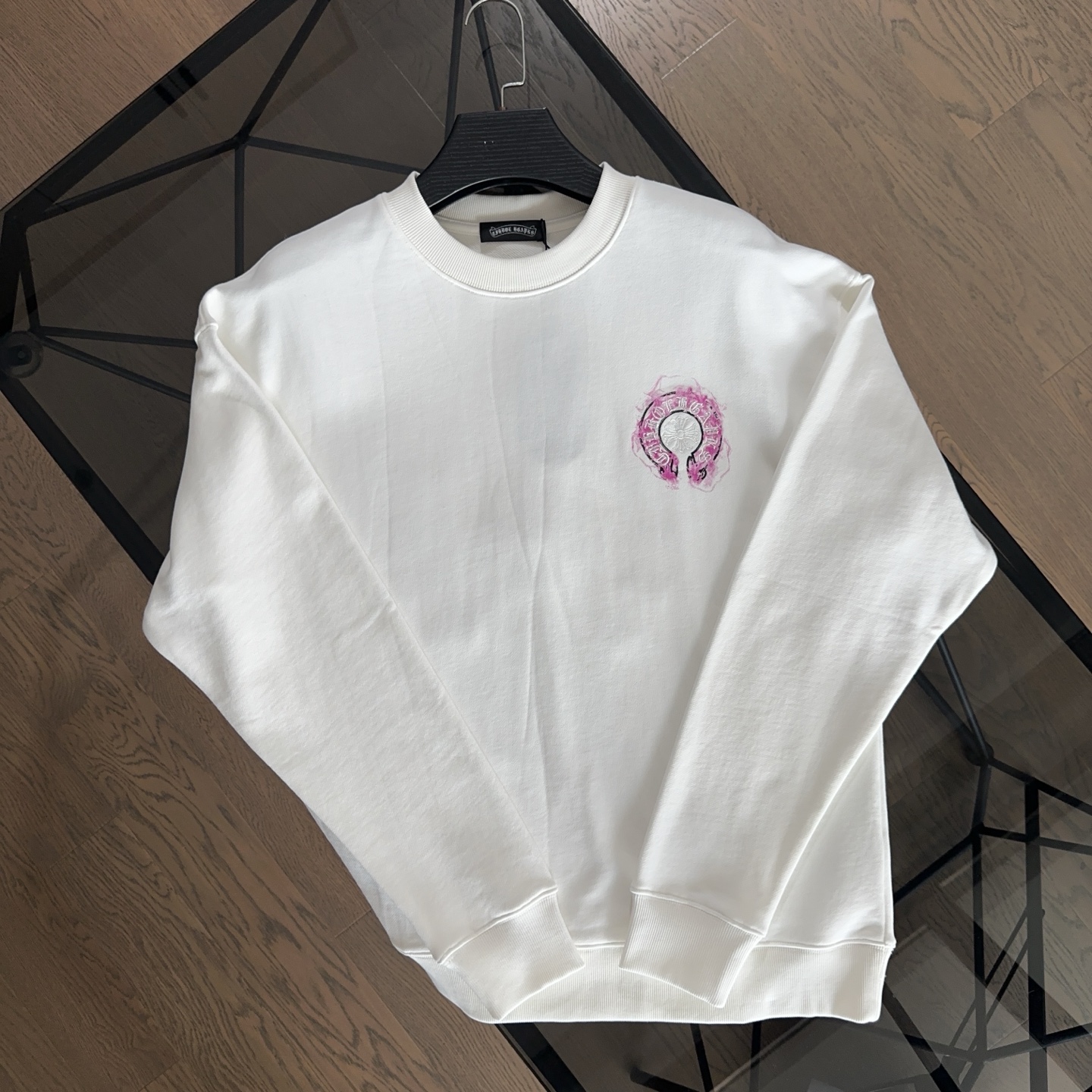 这款衣服是AAAAA 1:1 质量 (非常棒). 使用了和原版一模一样的材料. 商标部分也保持了和克罗心/Chrome Hearts一样. 图片拍摄是实物衣服拍摄, 您所收到的实物保证和我们图片一模一样.