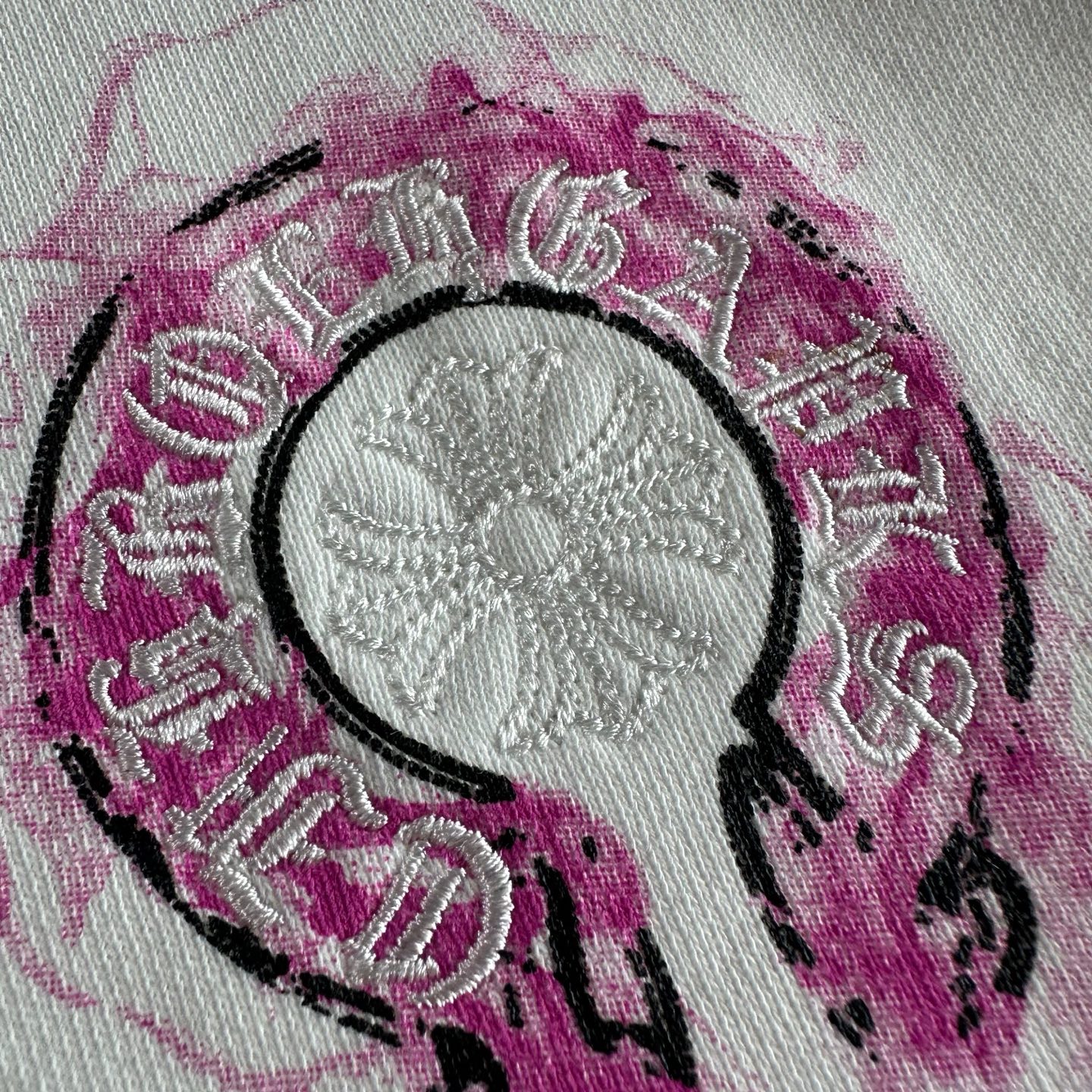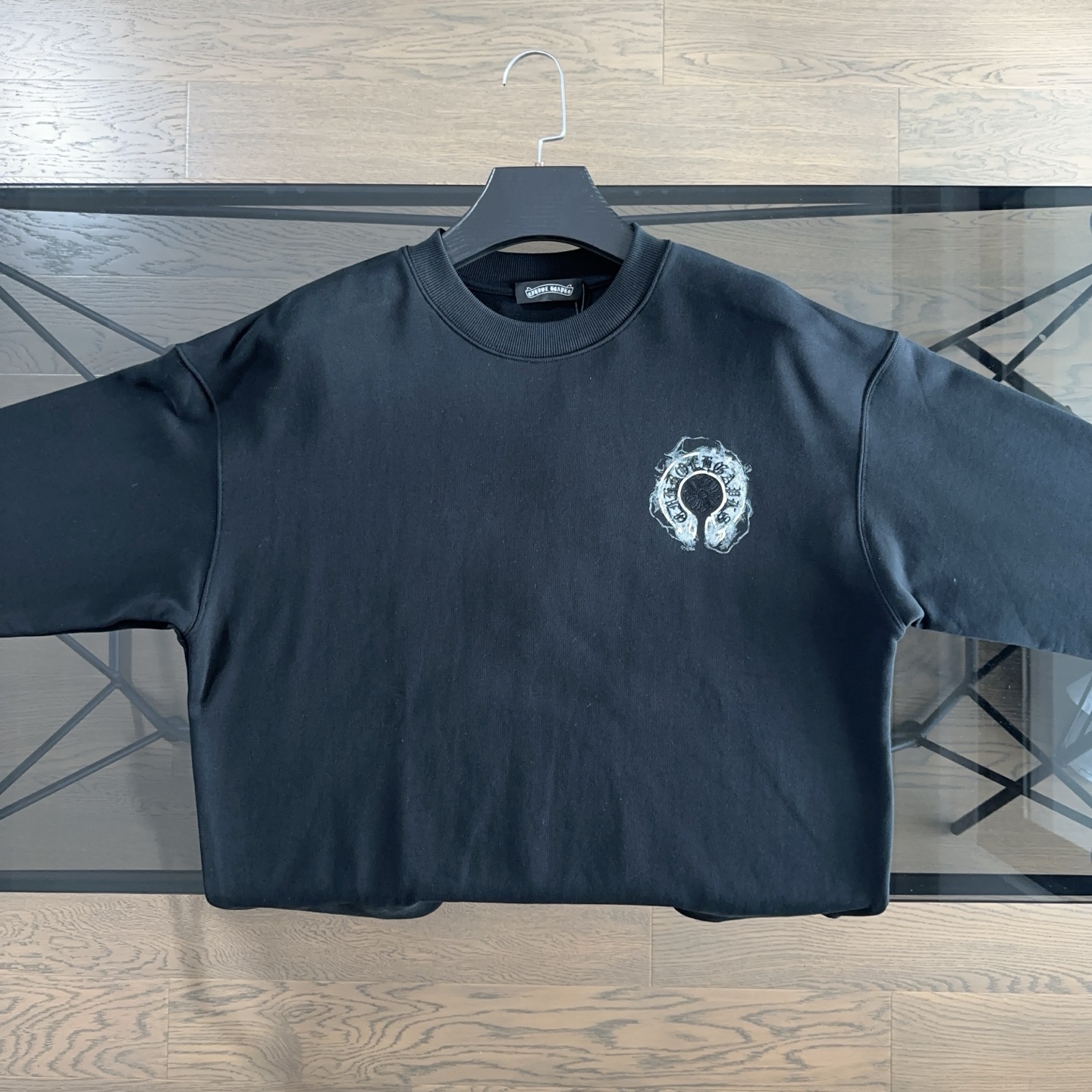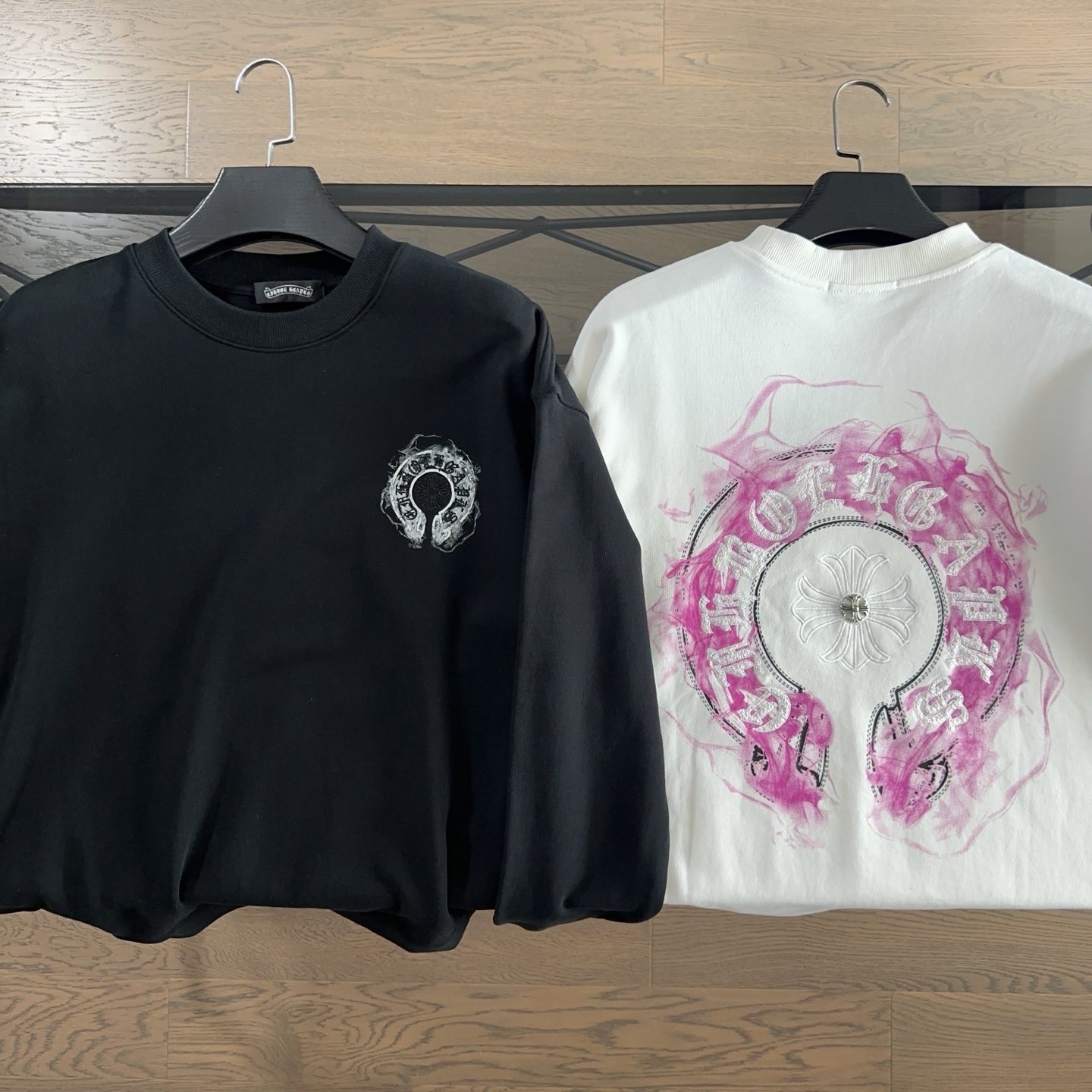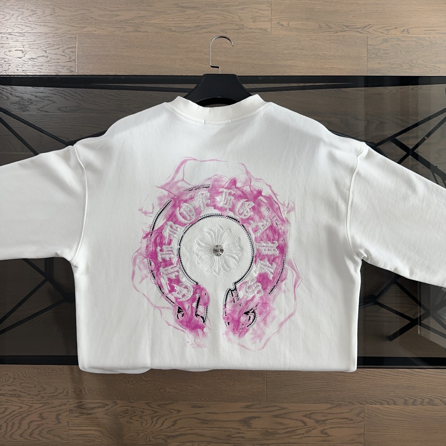 这款衣服是AAAAA 1:1 质量 (非常棒). 使用了和原版一模一样的材料. 商标部分也保持了和克罗心/Chrome Hearts一样. 图片拍摄是实物衣服拍摄, 您所收到的实物保证和我们图片一模一样.
