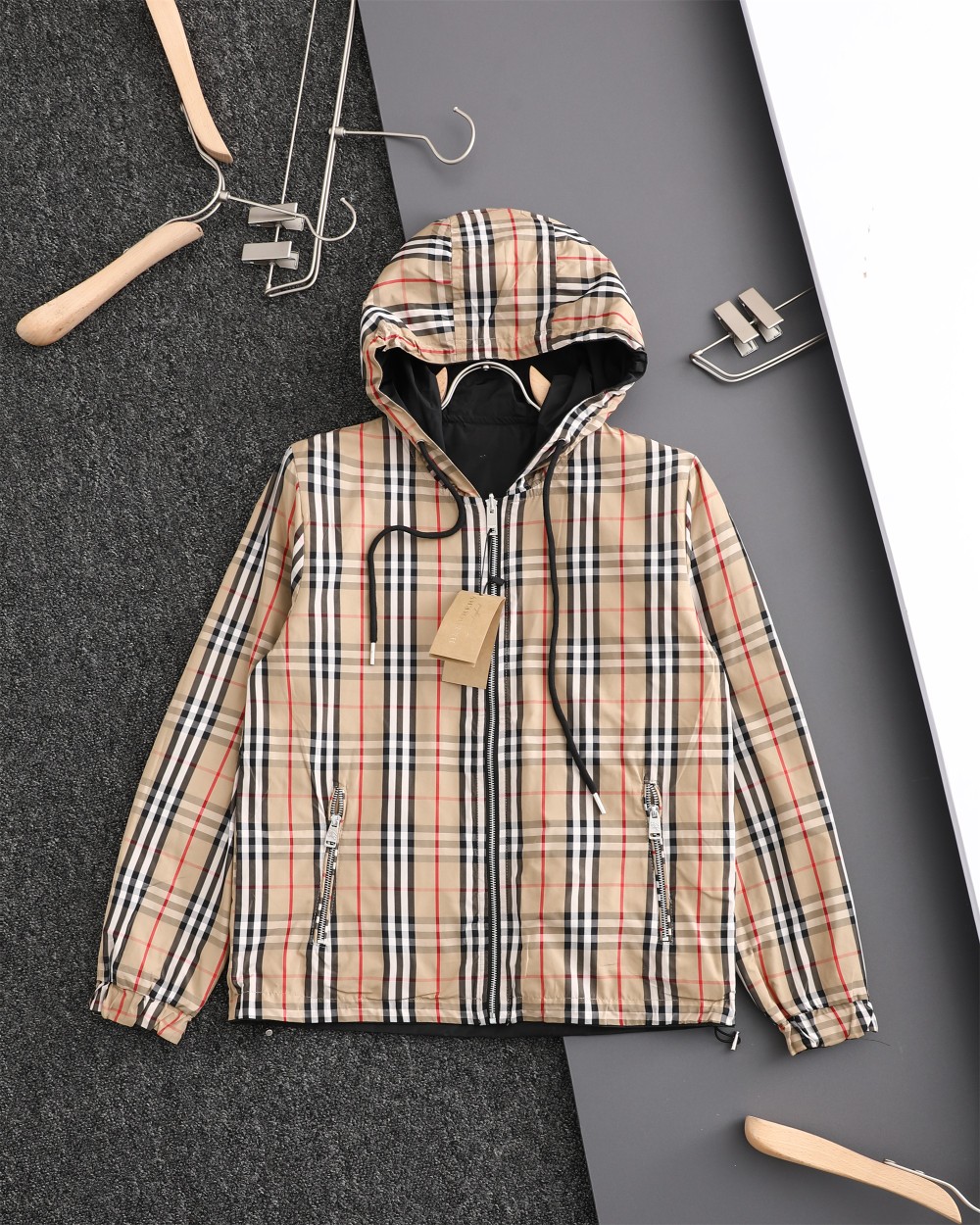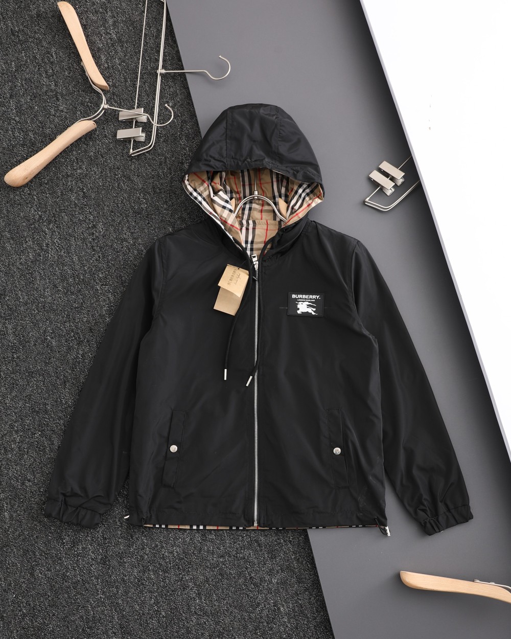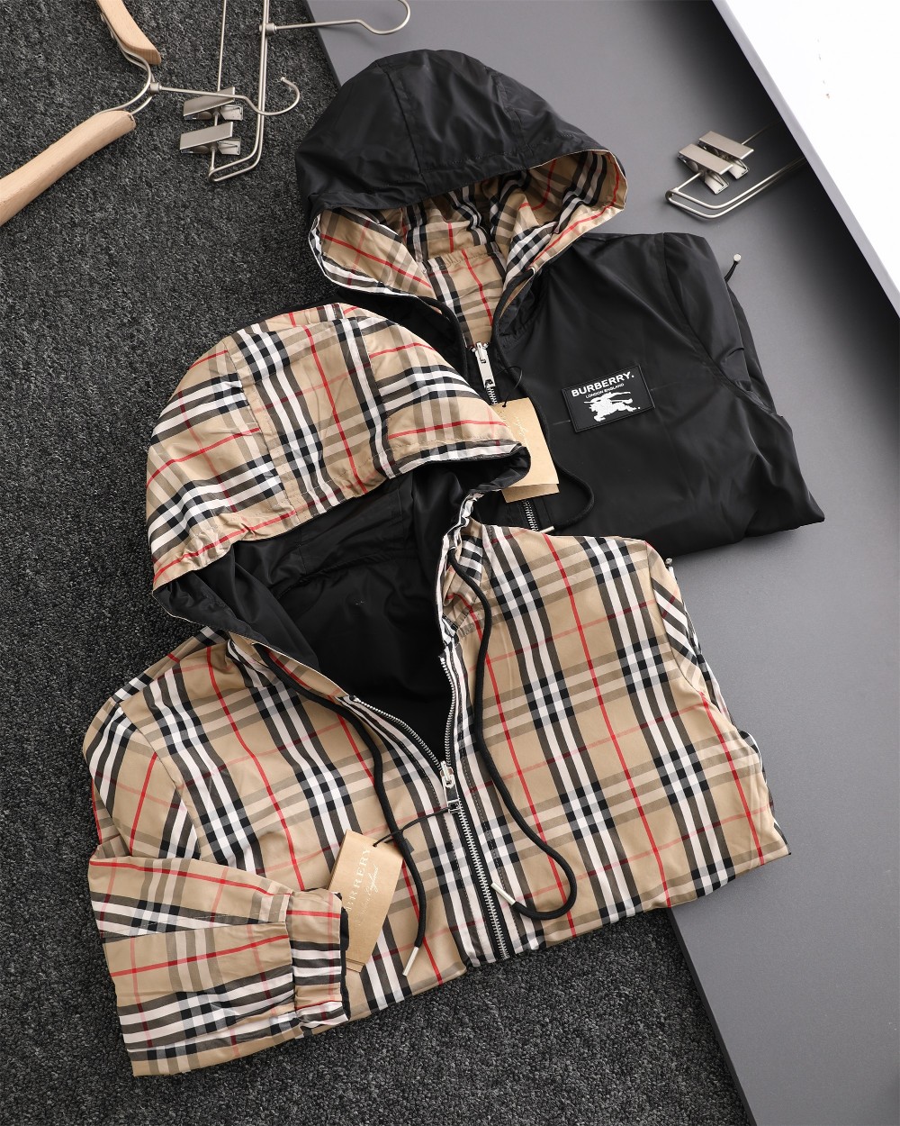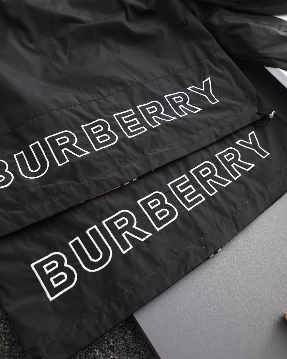 这款衣服是AAAAA 1:1 质量 (非常棒). 使用了和原版一模一样的材料. 商标部分也保持了和巴宝莉/Burberry一样. 图片拍摄是实物衣服拍摄, 您所收到的实物保证和我们图片一模一样.