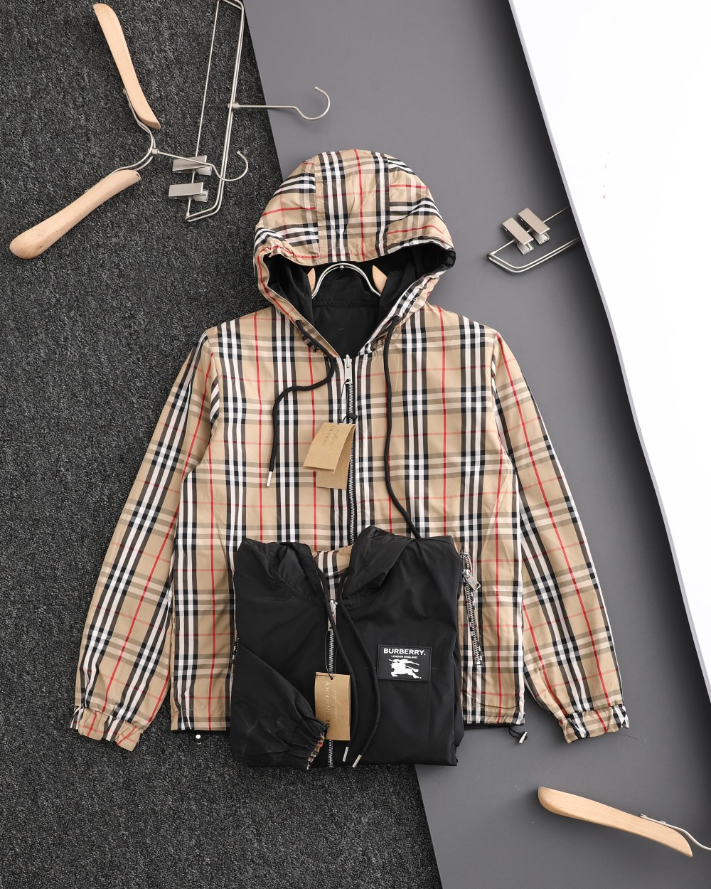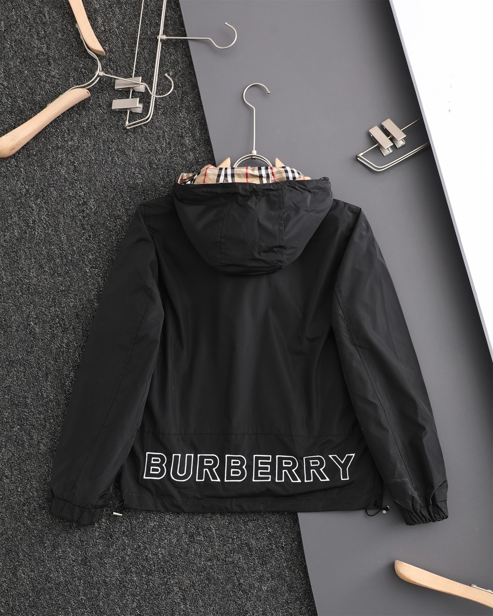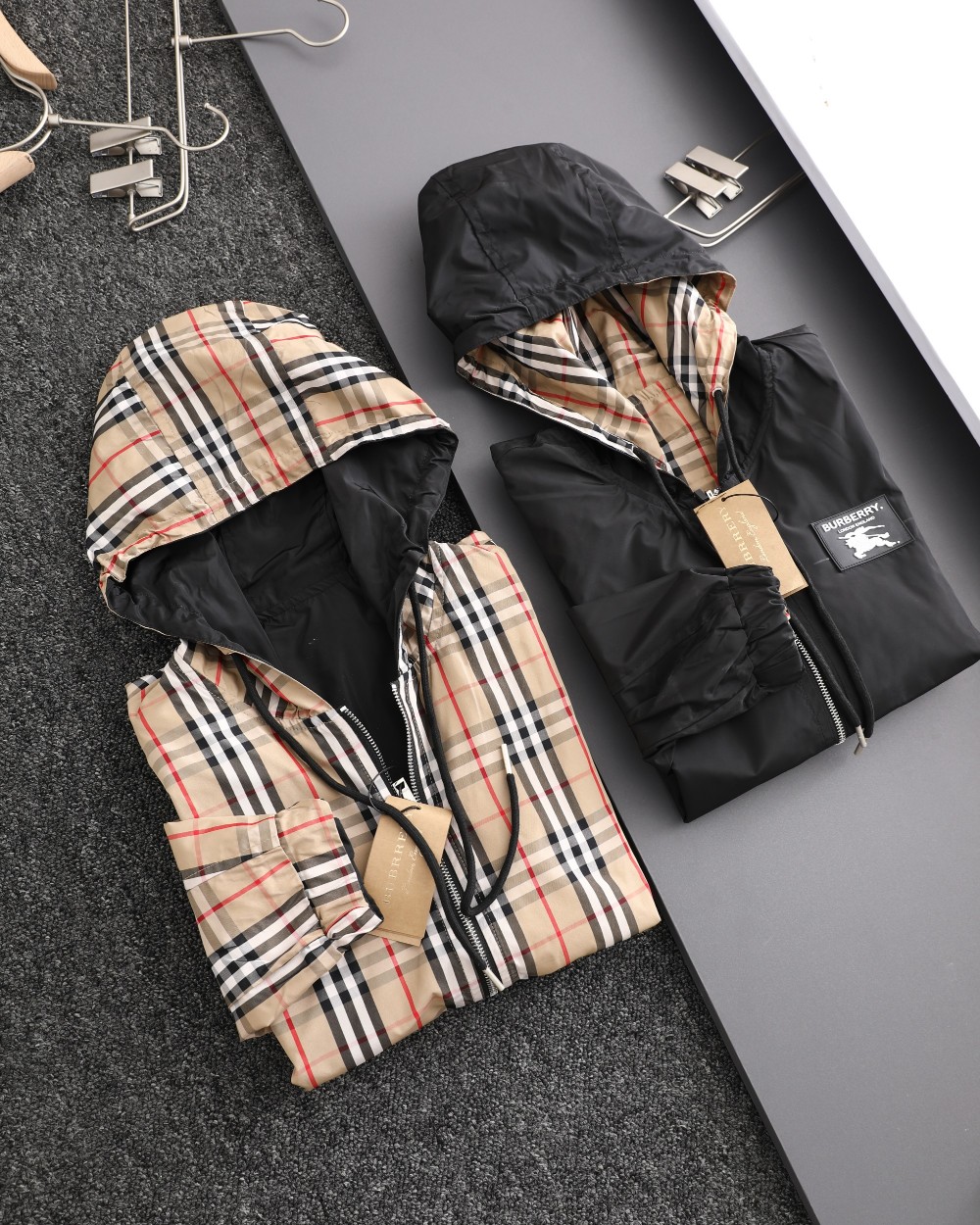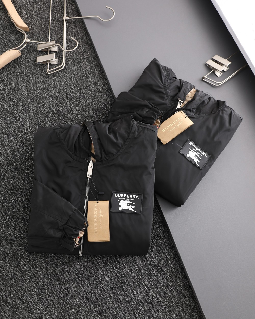 这款衣服是AAAAA 1:1 质量 (非常棒). 使用了和原版一模一样的材料. 商标部分也保持了和巴宝莉/Burberry一样. 图片拍摄是实物衣服拍摄, 您所收到的实物保证和我们图片一模一样.