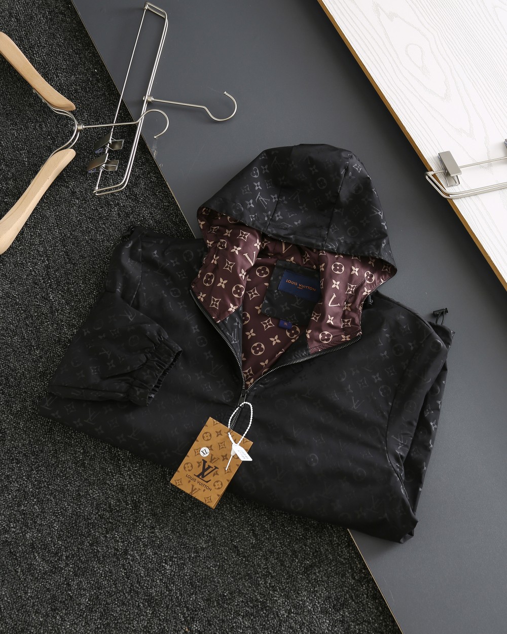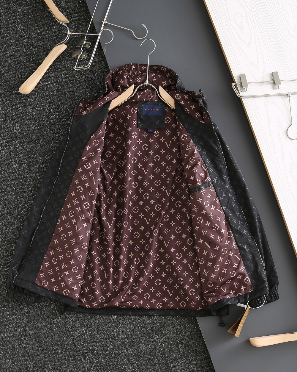 这款衣服是AAAAA 1:1 质量 (非常棒). 使用了和原版一模一样的材料. 商标部分也保持了和路易威登/Louis Vuitton一样. 图片拍摄是实物衣服拍摄, 您所收到的实物保证和我们图片一模一样.