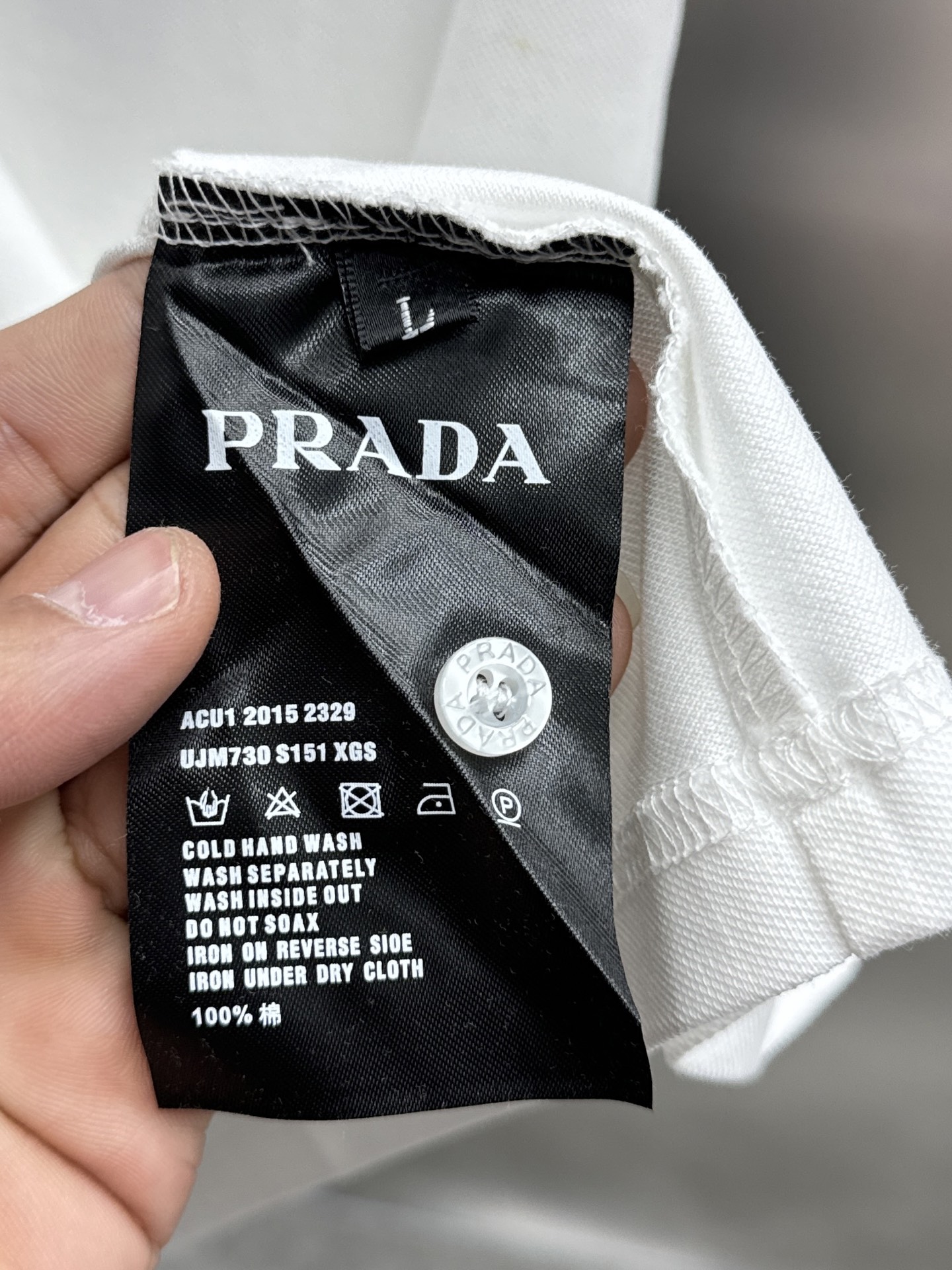 这款衣服是AAAAA 1:1 质量 (非常棒). 使用了和原版一模一样的材料. 商标部分也保持了和普拉达/Prada一样. 图片拍摄是实物衣服拍摄, 您所收到的实物保证和我们图片一模一样.
