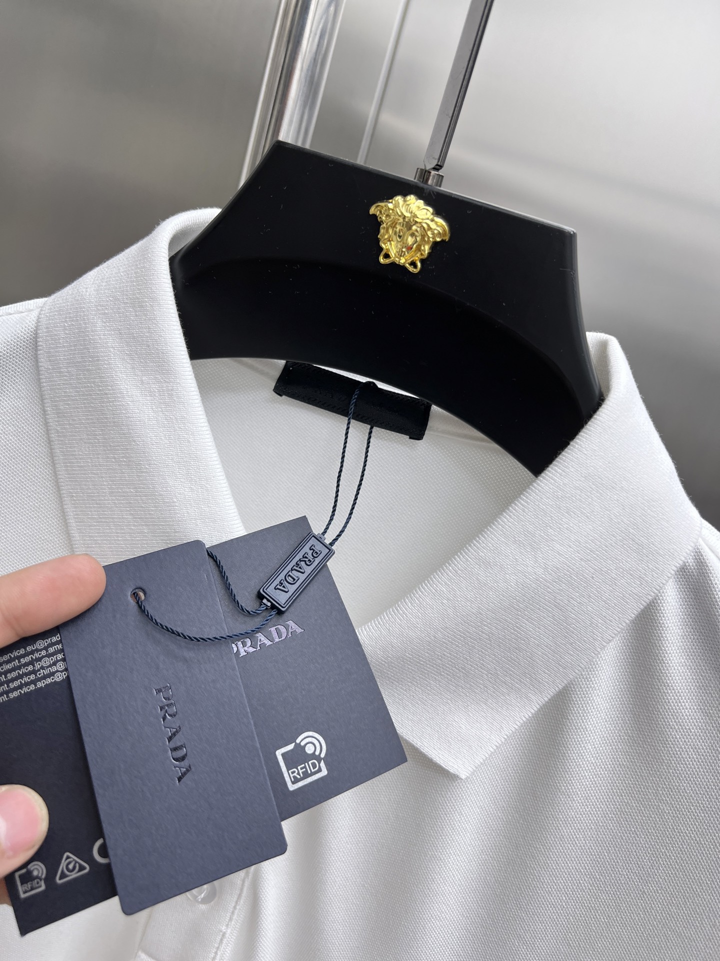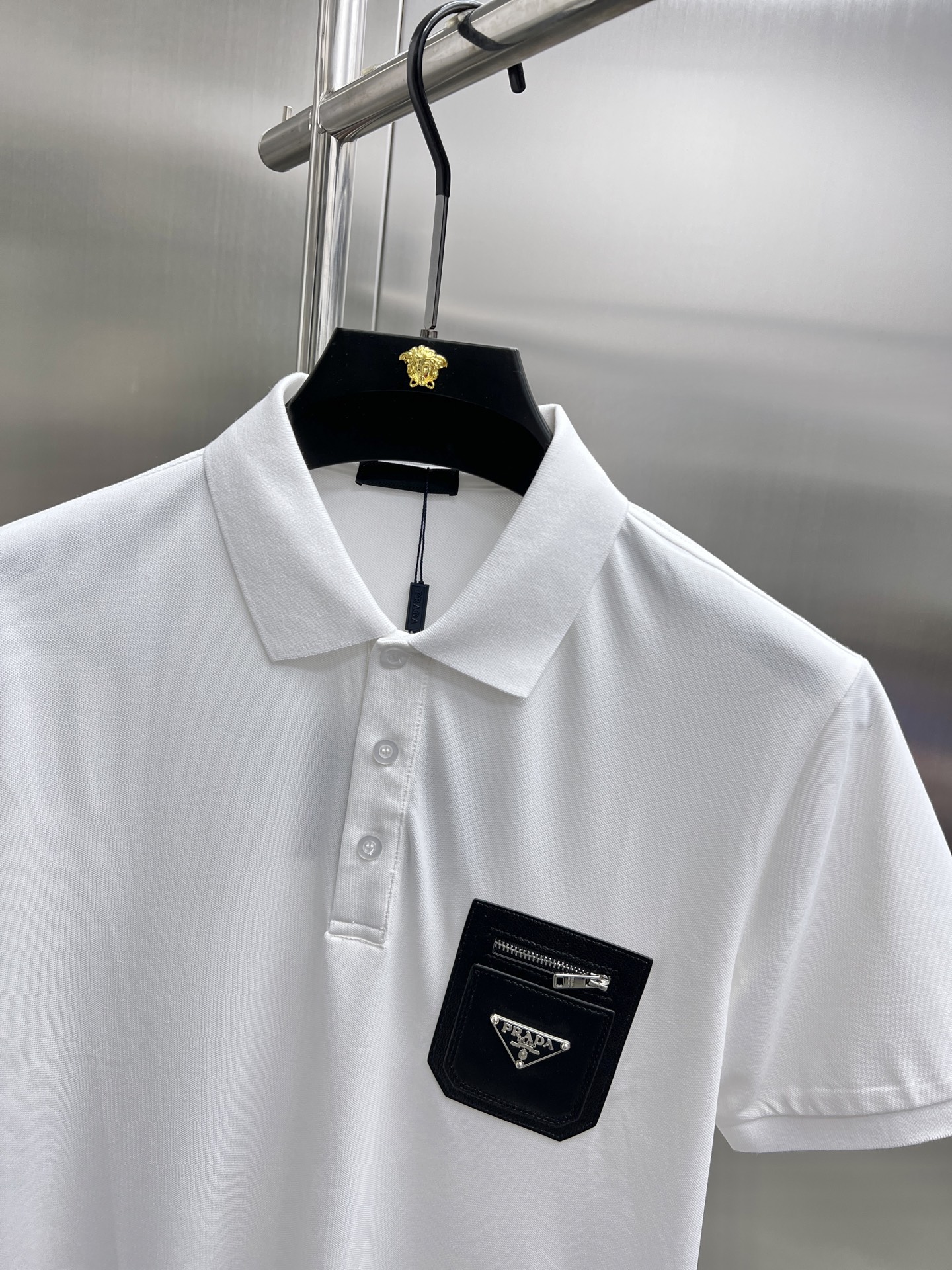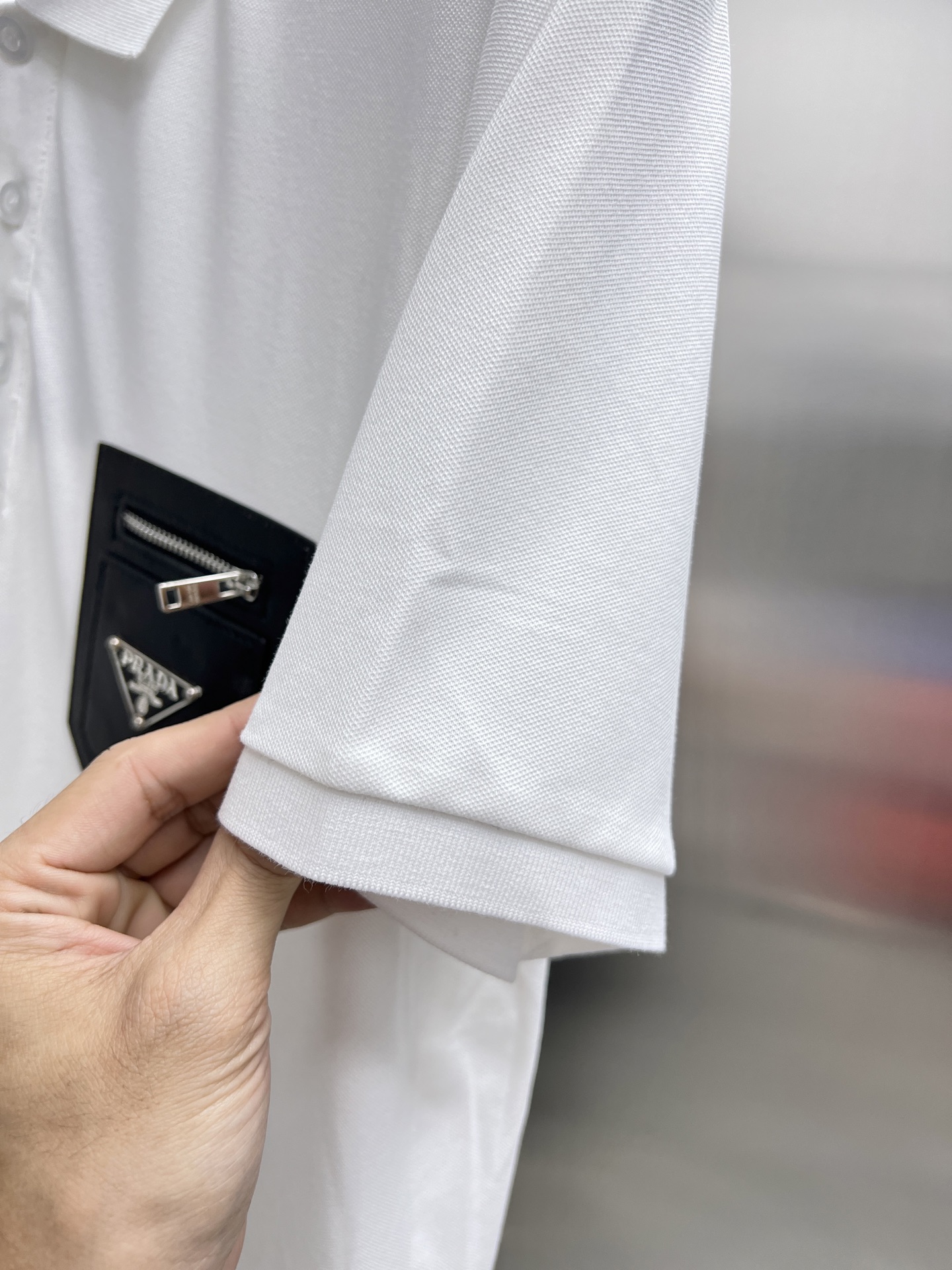 这款衣服是AAAAA 1:1 质量 (非常棒). 使用了和原版一模一样的材料. 商标部分也保持了和普拉达/Prada一样. 图片拍摄是实物衣服拍摄, 您所收到的实物保证和我们图片一模一样.