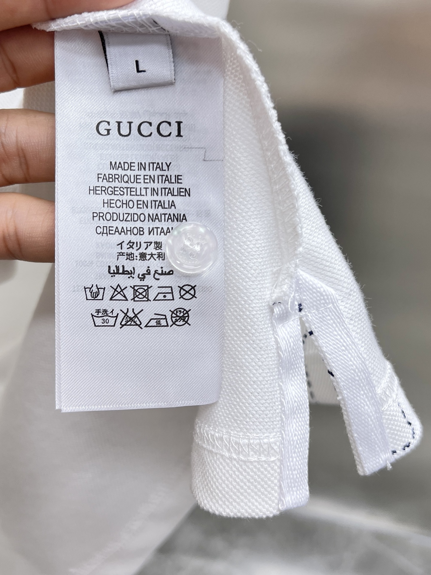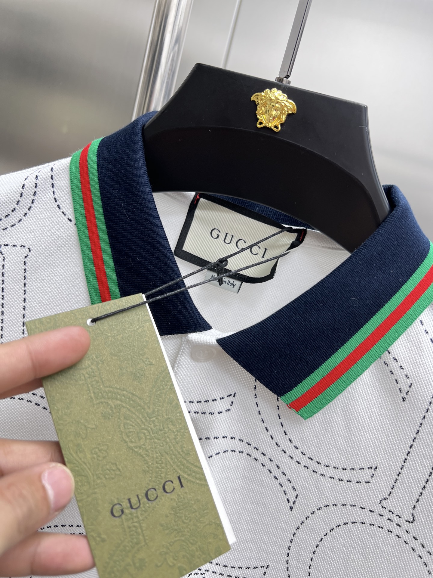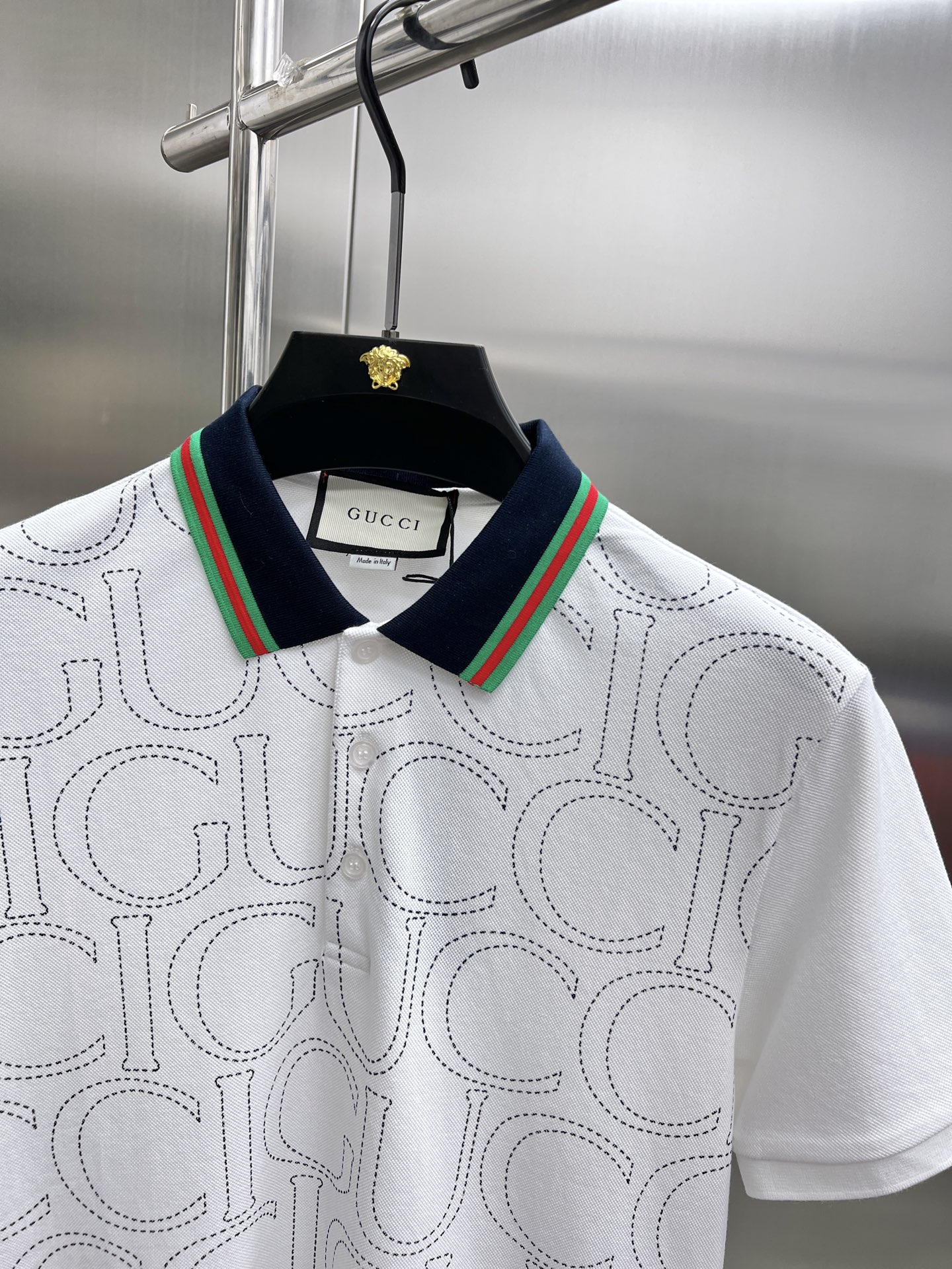 这款衣服是AAAAA 1:1 质量 (非常棒). 使用了和原版一模一样的材料. 商标部分也保持了和古奇/Gucci一样. 图片拍摄是实物衣服拍摄, 您所收到的实物保证和我们图片一模一样.
