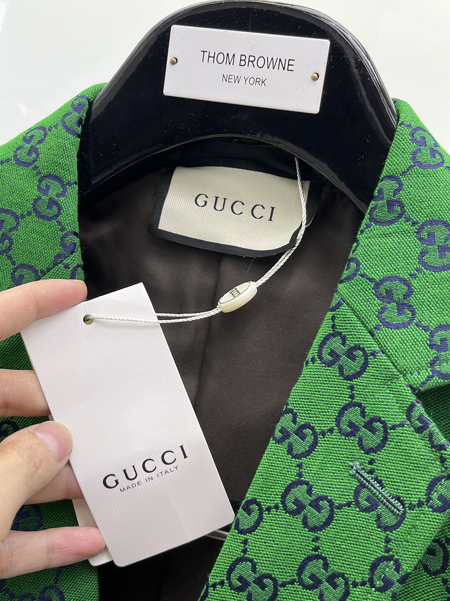 这款衣服是AAAAA 1:1 质量 (非常棒). 使用了和原版一模一样的材料. 商标部分也保持了和古奇/Gucci一样. 图片拍摄是实物衣服拍摄, 您所收到的实物保证和我们图片一模一样.
