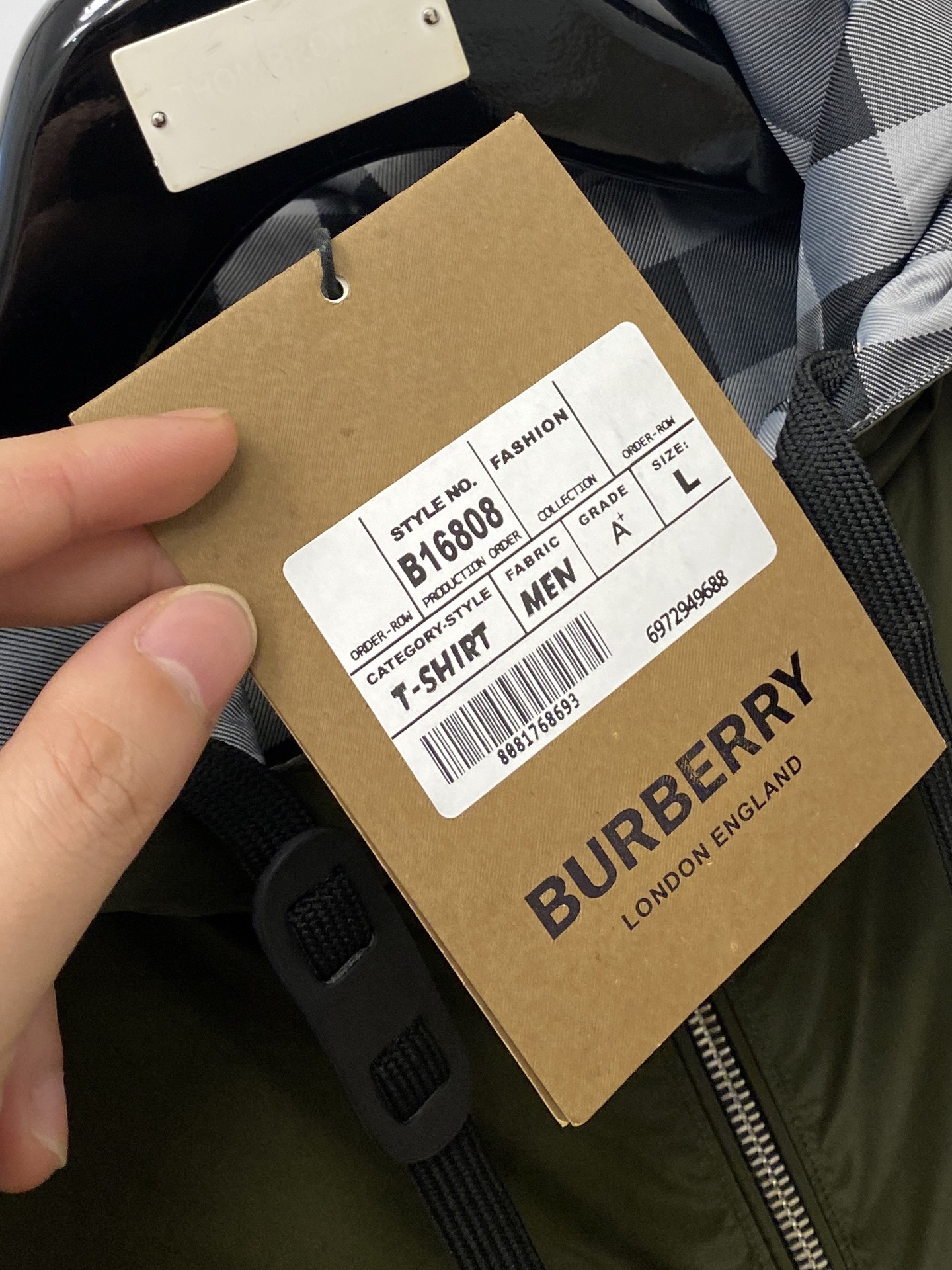 这款衣服是AAAAA 1:1 质量 (非常棒). 使用了和原版一模一样的材料. 商标部分也保持了和巴宝莉/Burberry一样. 图片拍摄是实物衣服拍摄, 您所收到的实物保证和我们图片一模一样.