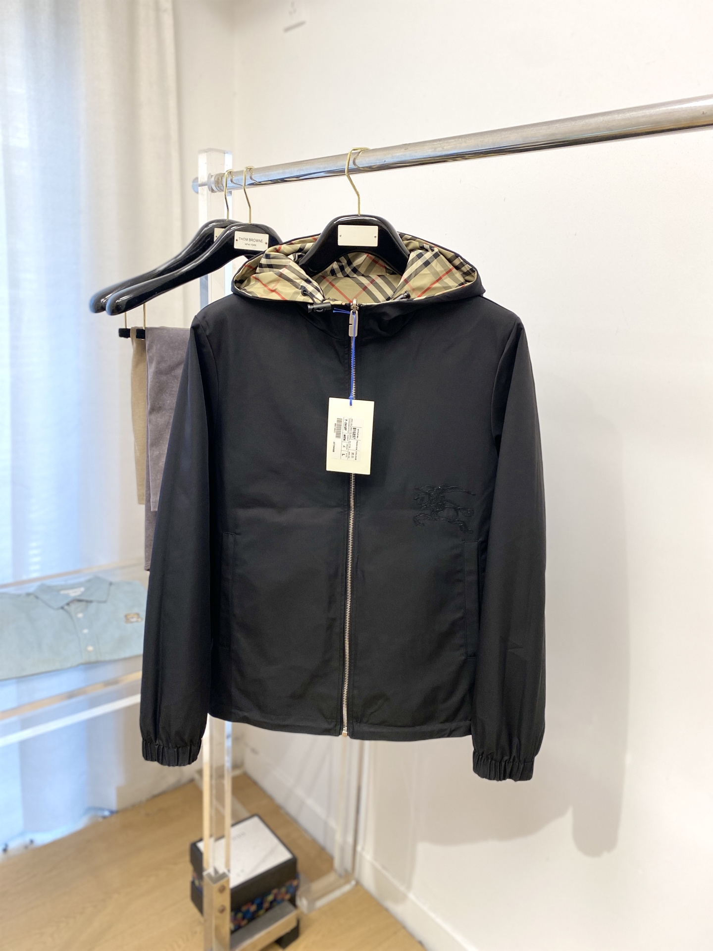这款衣服是AAAAA 1:1 质量 (非常棒). 使用了和原版一模一样的材料. 商标部分也保持了和巴宝莉/Burberry一样. 图片拍摄是实物衣服拍摄, 您所收到的实物保证和我们图片一模一样.