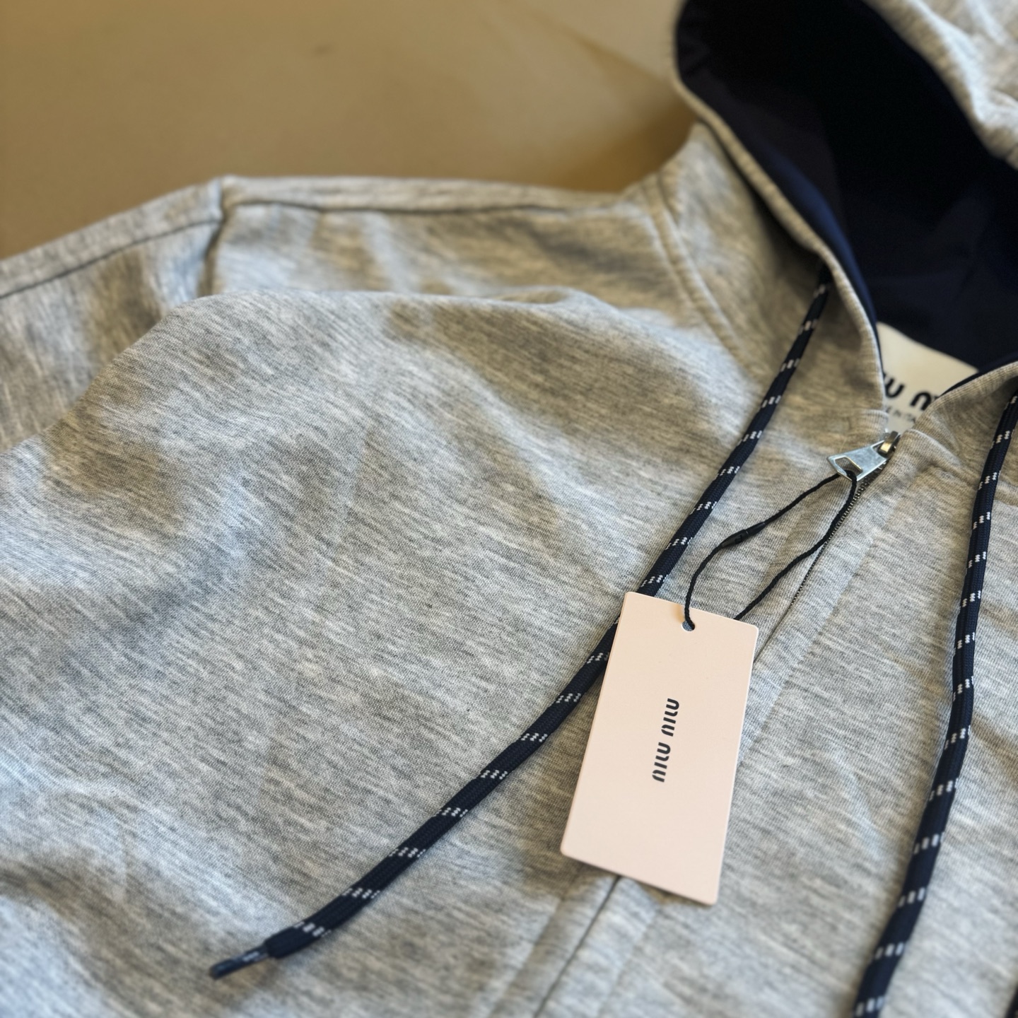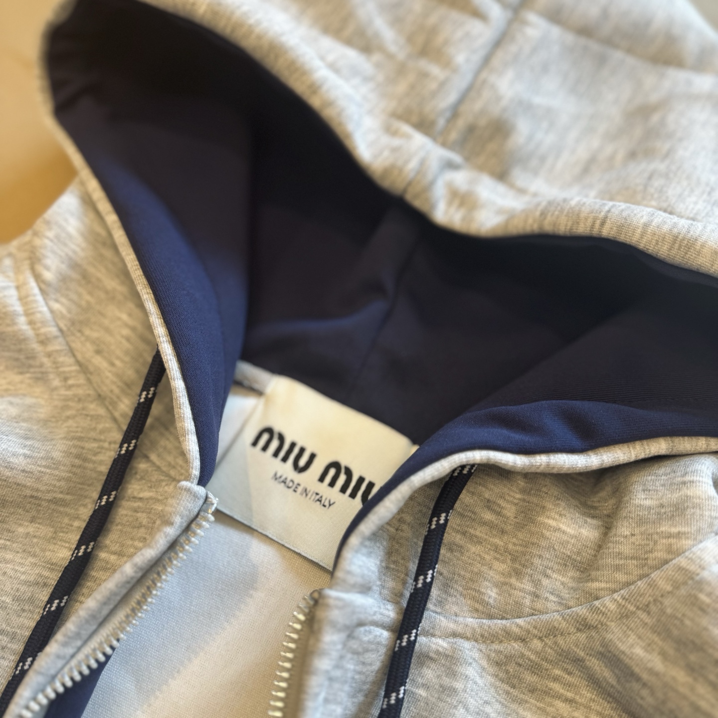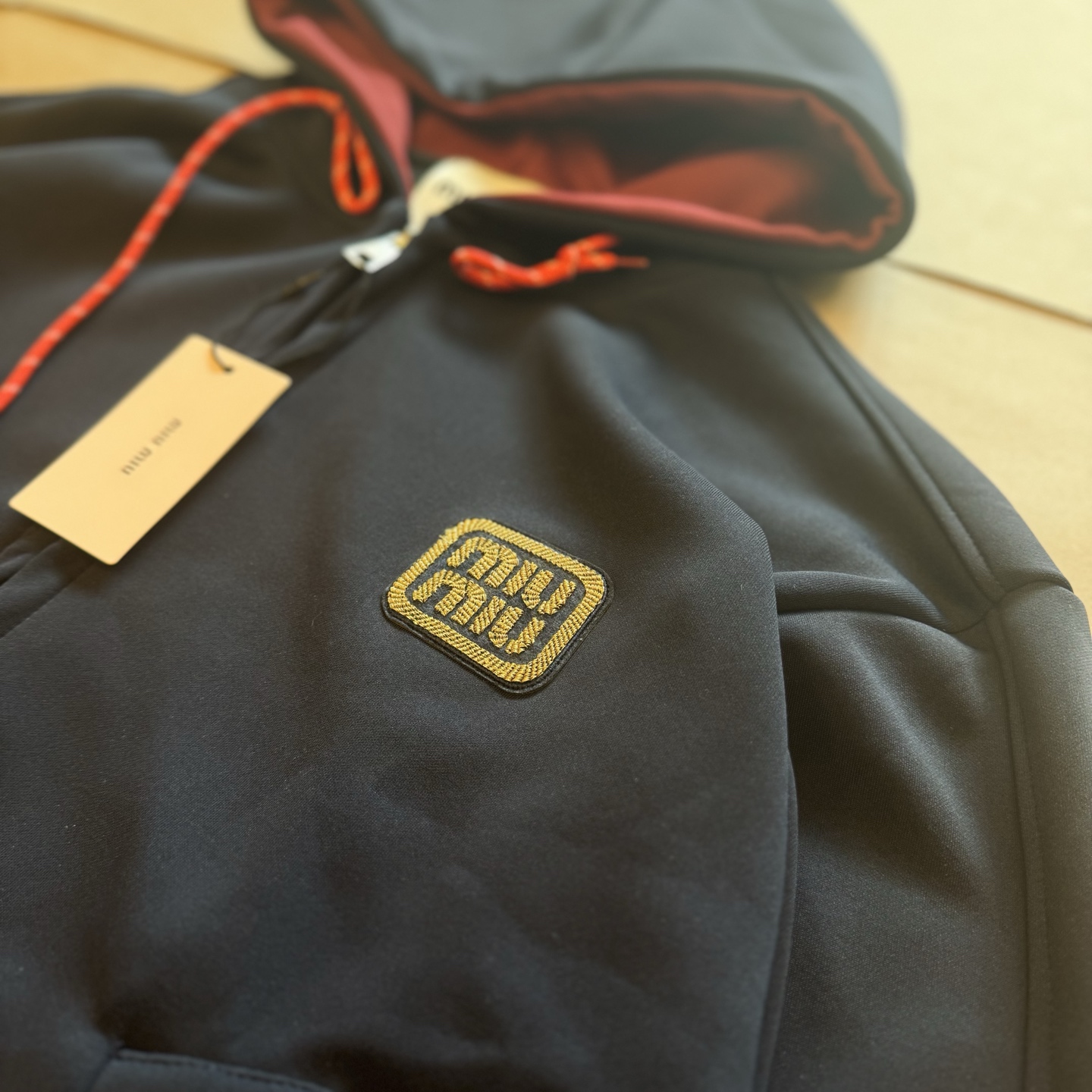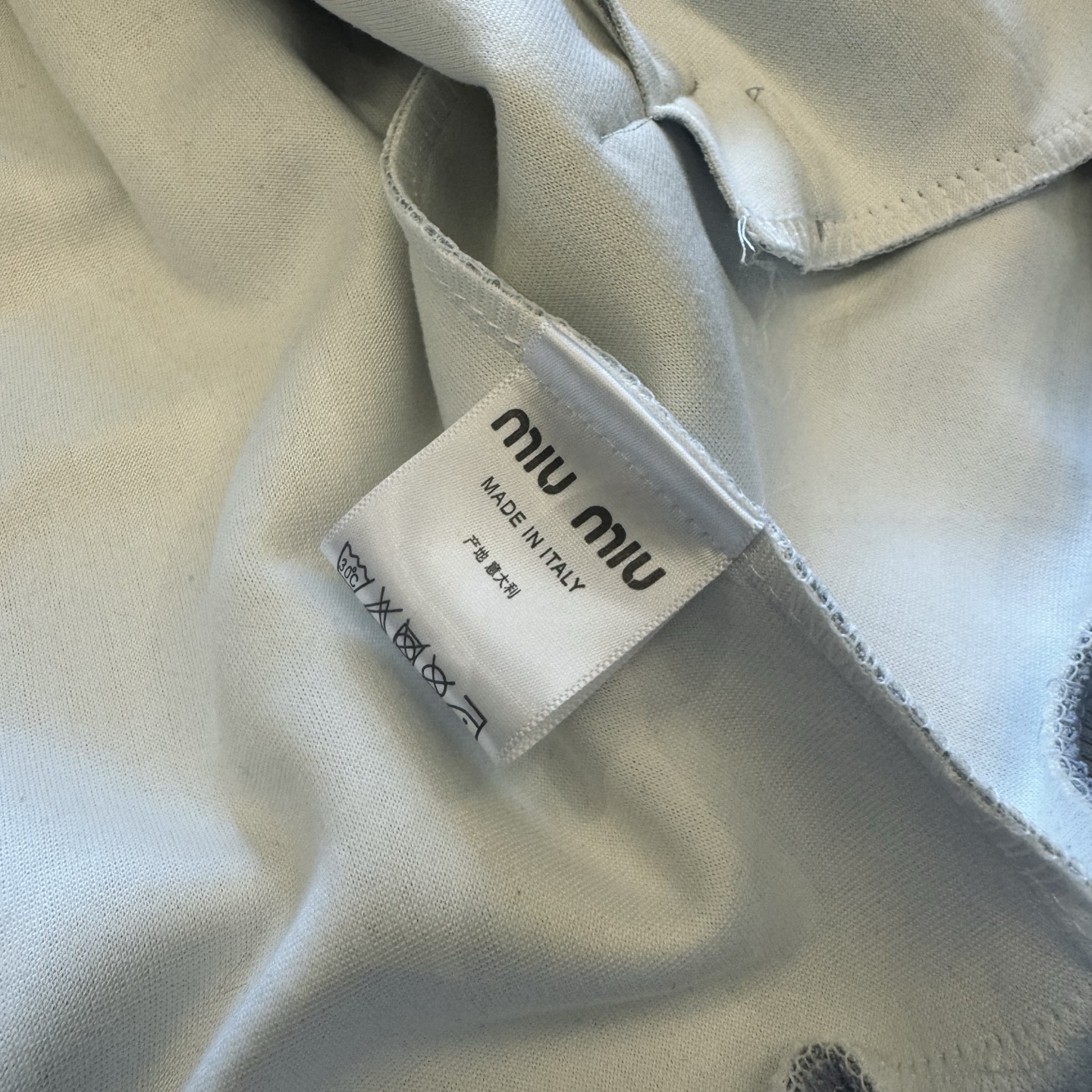 这款衣服是AAAAA 1:1 质量 (非常棒). 使用了和原版一模一样的材料. 商标部分也保持了和缪缪/Miu Miu一样. 图片拍摄是实物衣服拍摄, 您所收到的实物保证和我们图片一模一样.