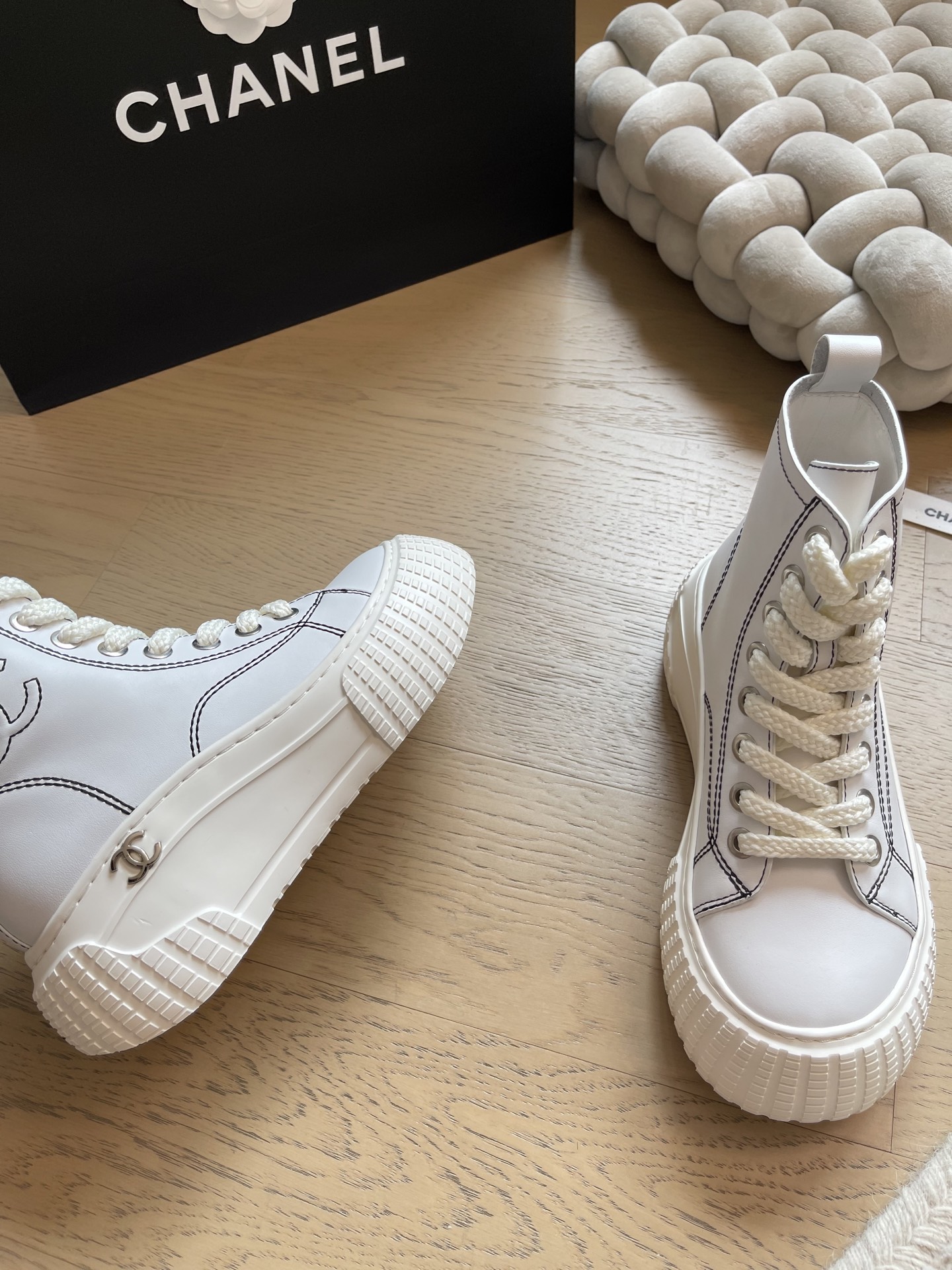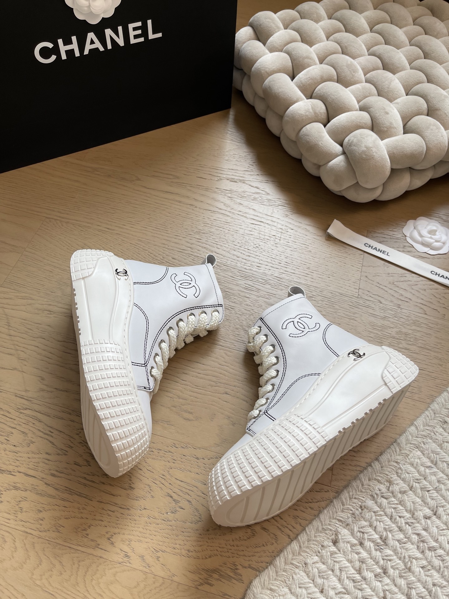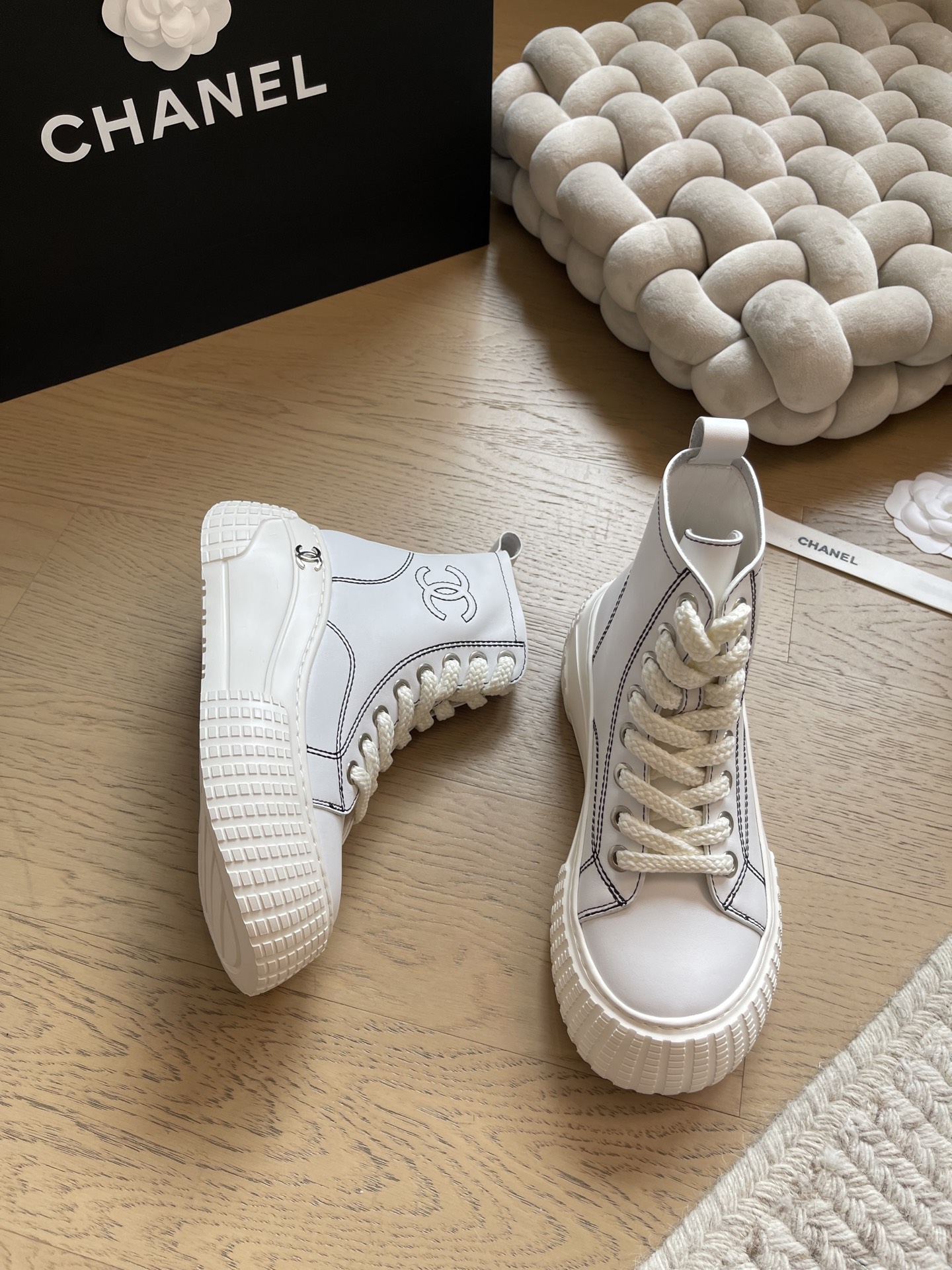 这款鞋子是AAAAA 1:1 质量 (非常棒). 使用了和原版一模一样的材料. 商标部分也保持了和香奈儿/Chanel一样. 图片拍摄是实物鞋子拍摄, 您所收到的实物保证和我们图片一模一样.