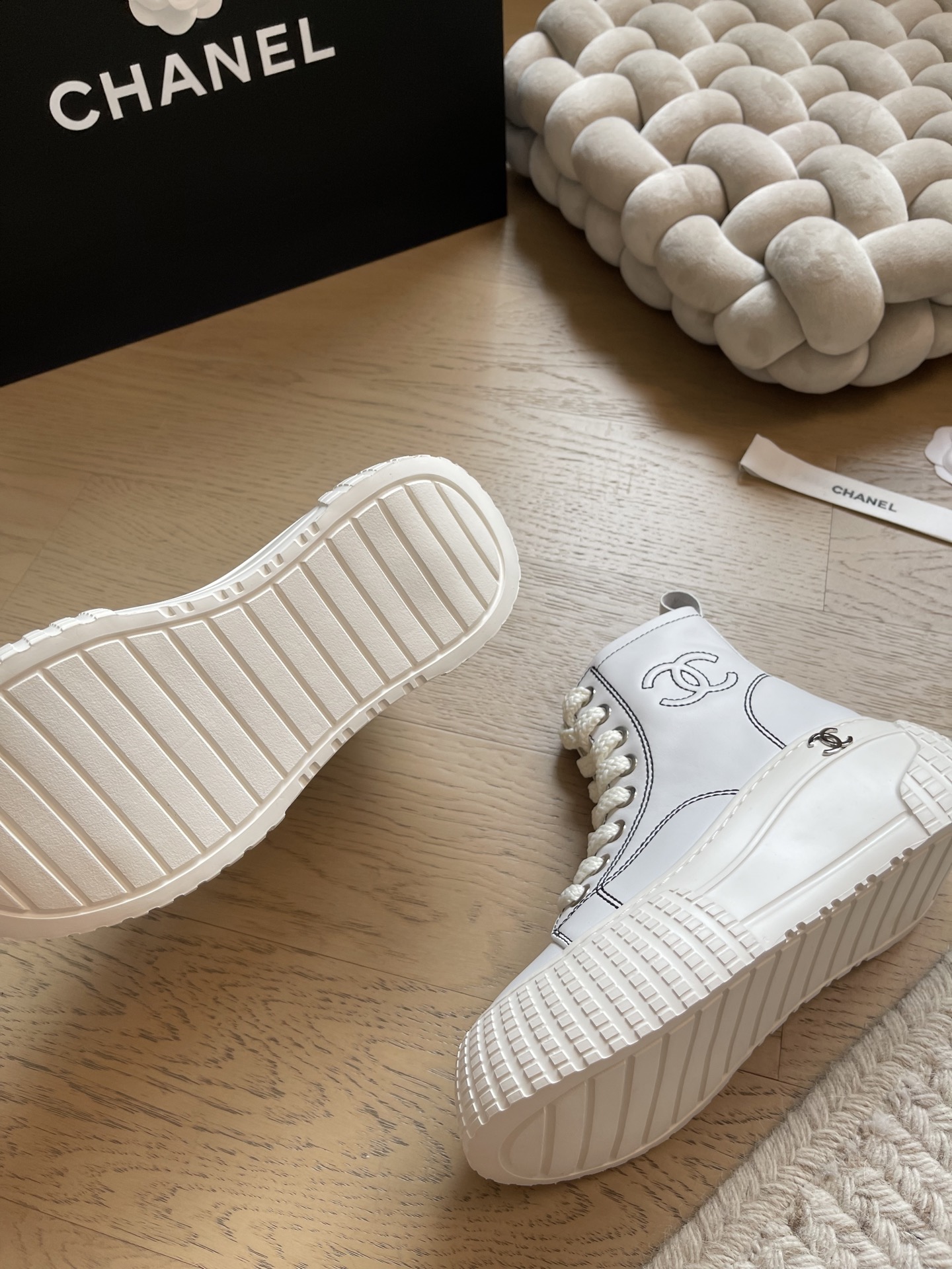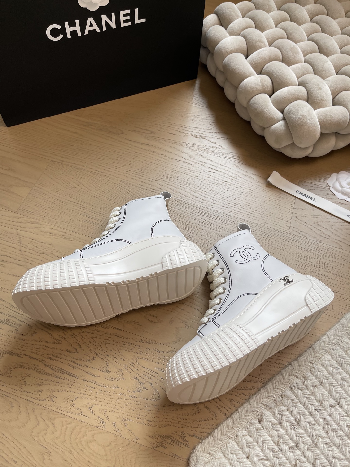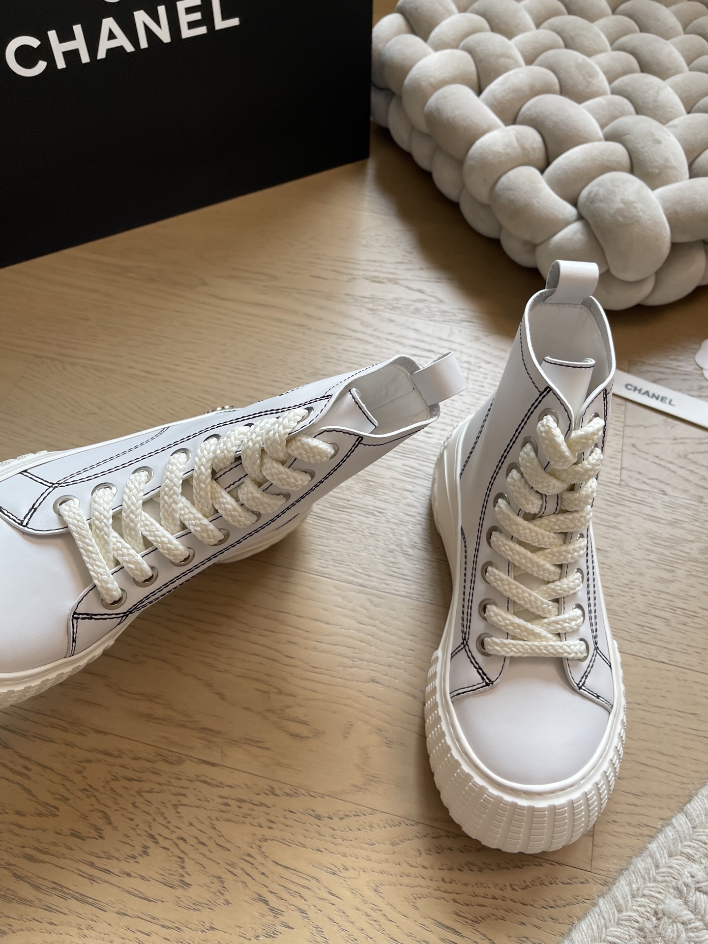这款鞋子是AAAAA 1:1 质量 (非常棒). 使用了和原版一模一样的材料. 商标部分也保持了和香奈儿/Chanel一样. 图片拍摄是实物鞋子拍摄, 您所收到的实物保证和我们图片一模一样.
