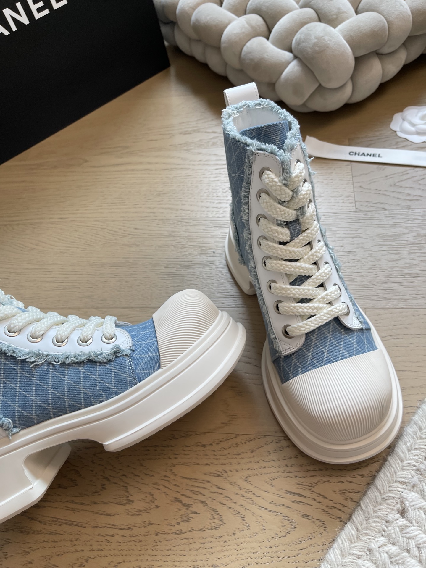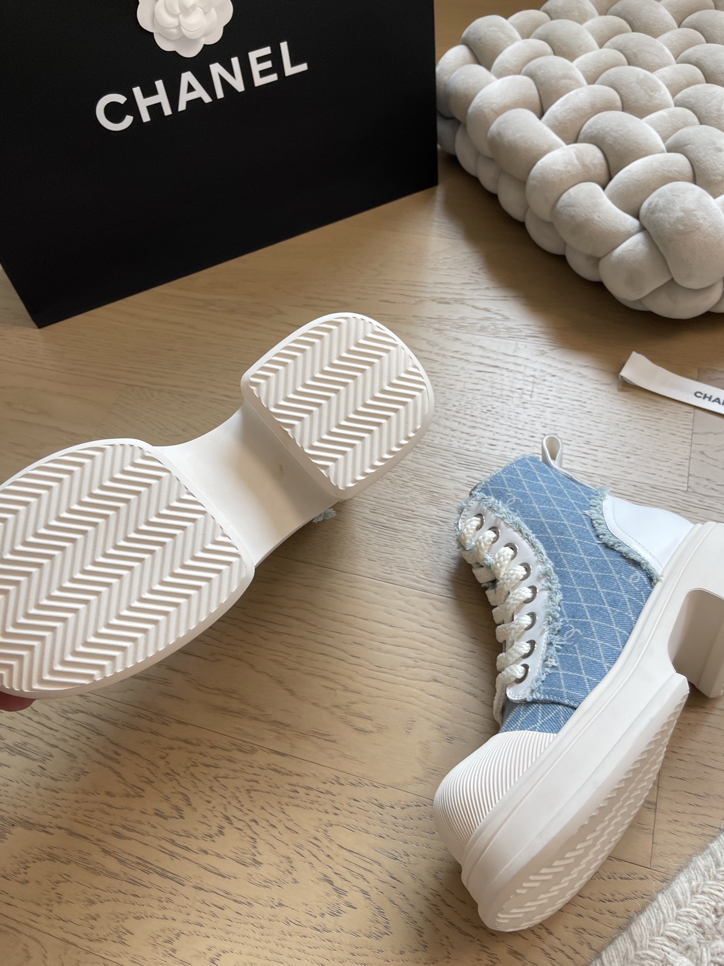 这款鞋子是AAAAA 1:1 质量 (非常棒). 使用了和原版一模一样的材料. 商标部分也保持了和香奈儿/Chanel一样. 图片拍摄是实物鞋子拍摄, 您所收到的实物保证和我们图片一模一样.