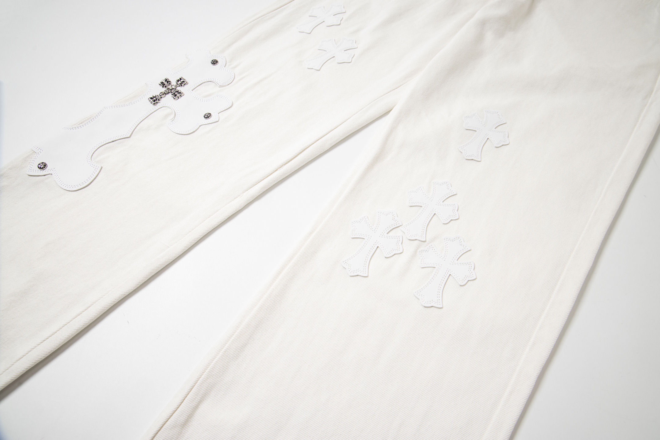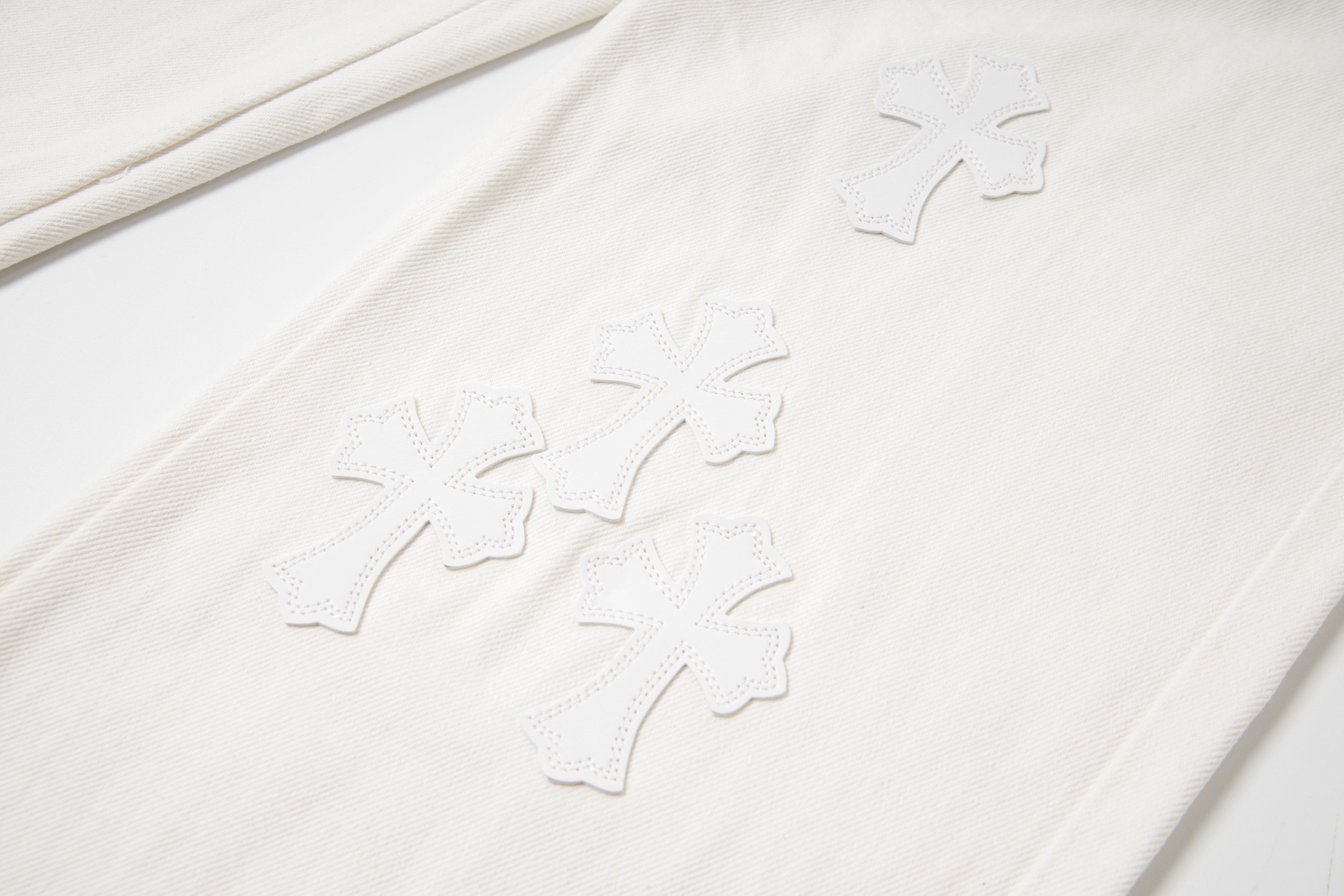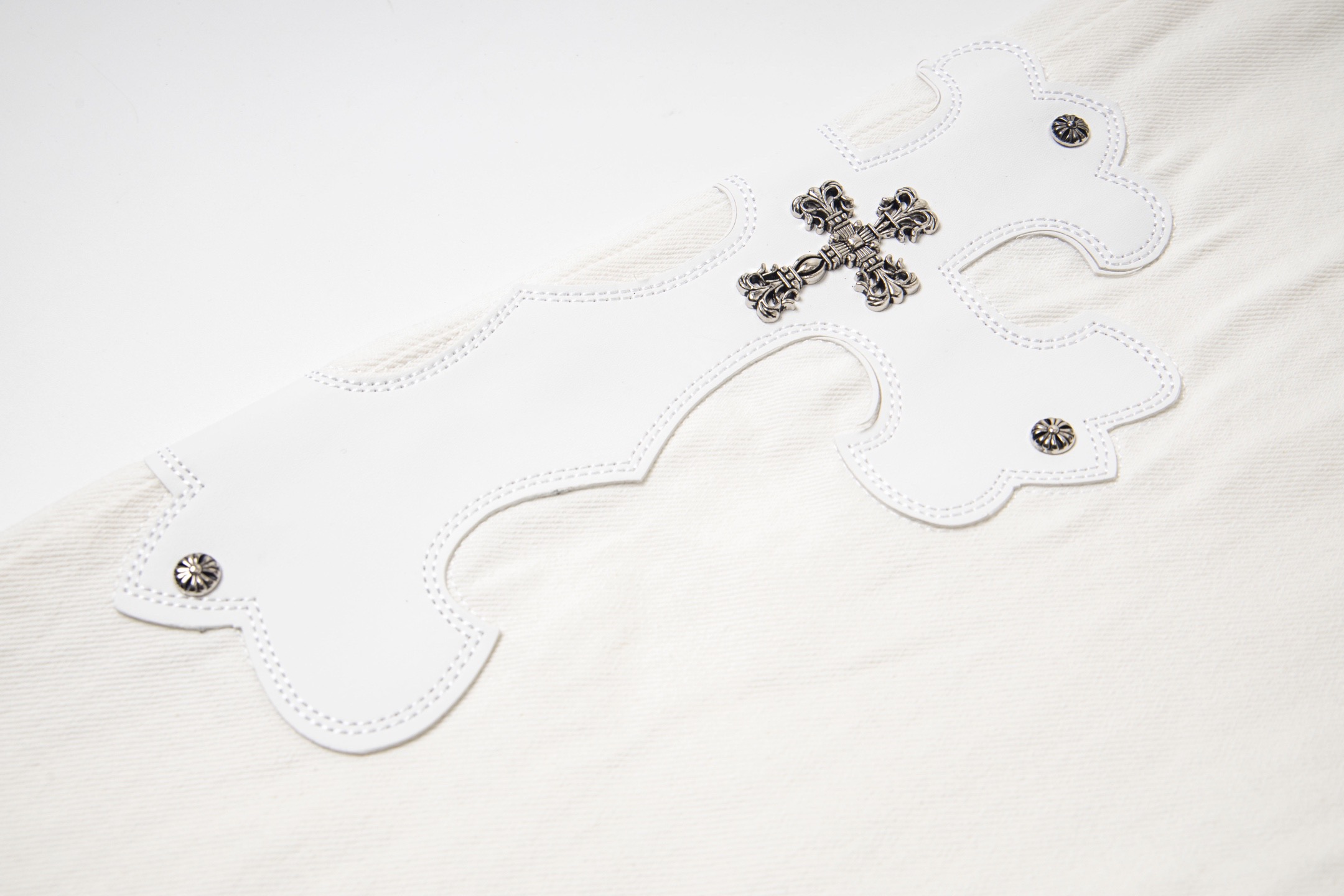 这款衣服是AAAAA 1:1 质量 (非常棒). 使用了和原版一模一样的材料. 商标部分也保持了和克罗心/Chrome Hearts一样. 图片拍摄是实物衣服拍摄, 您所收到的实物保证和我们图片一模一样.