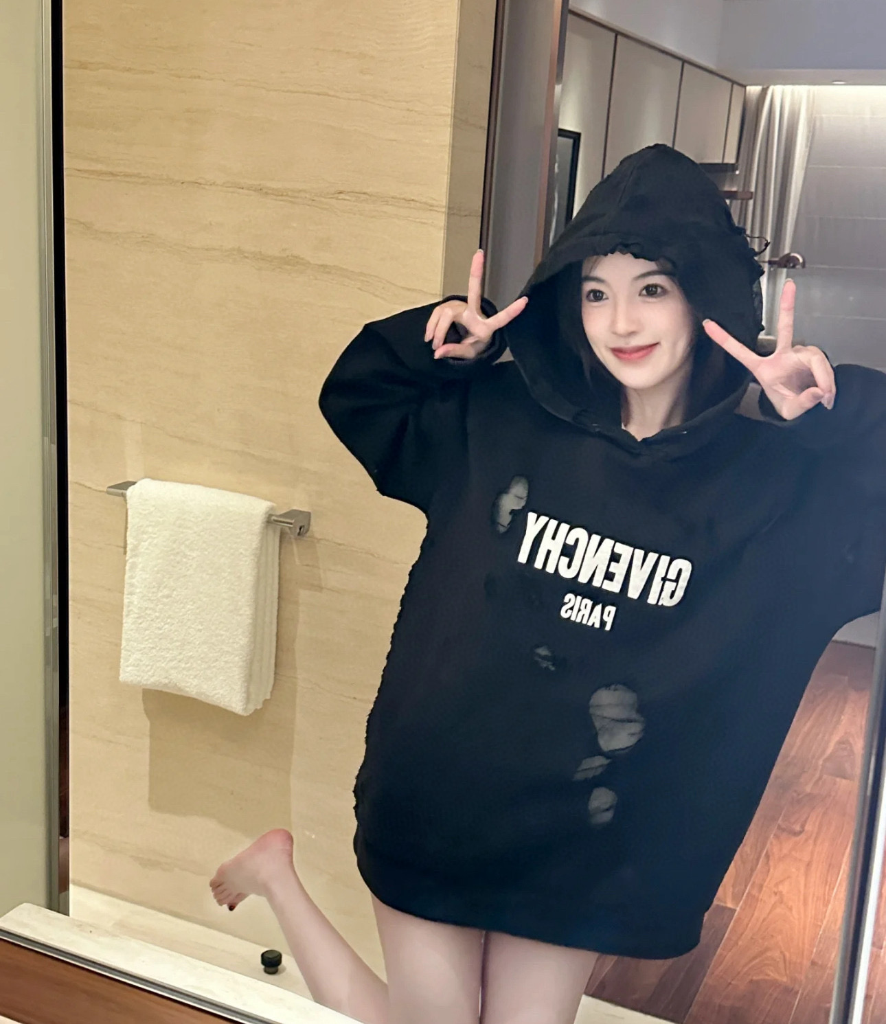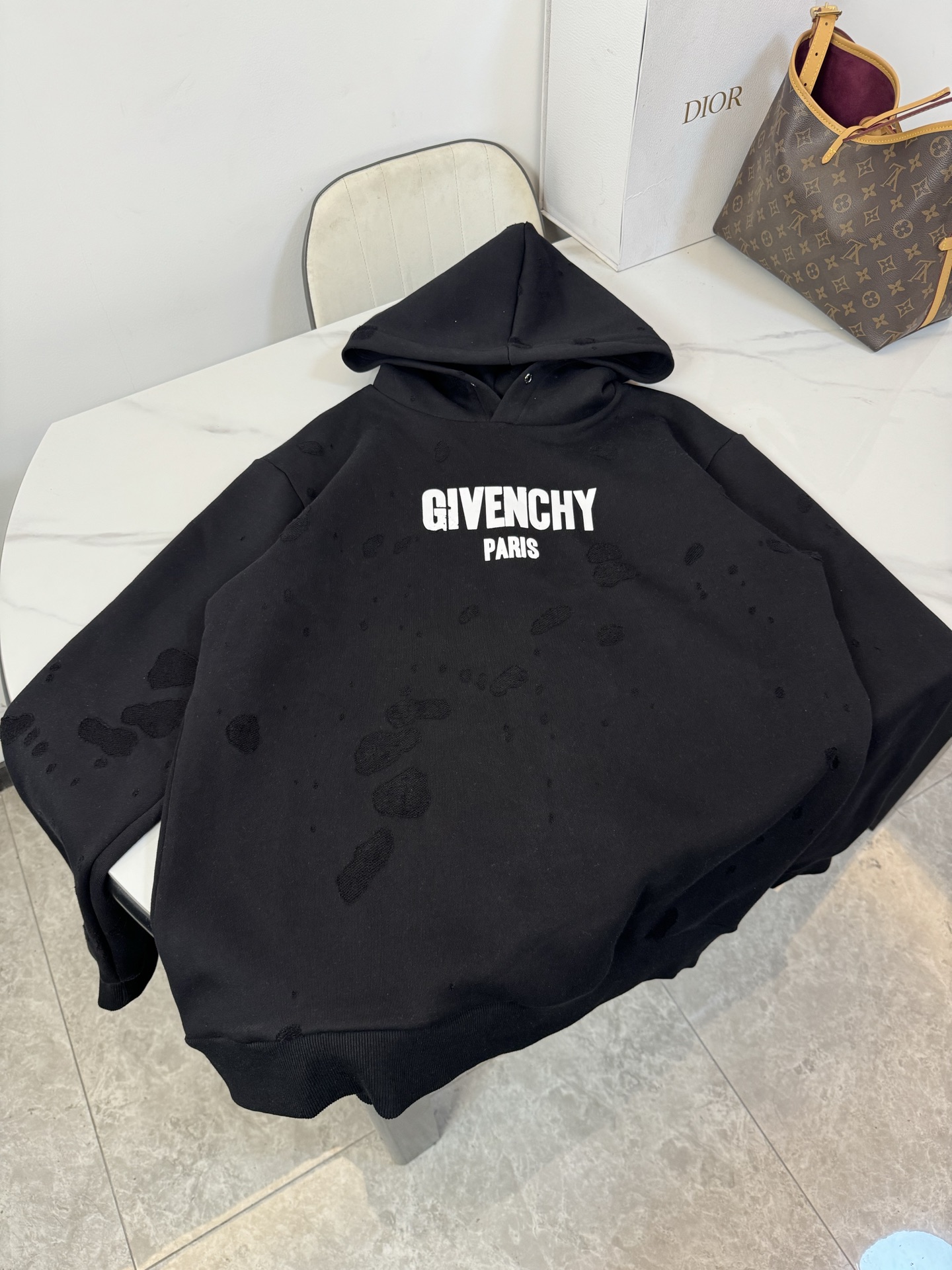 这款衣服是AAAAA 1:1 质量 (非常棒). 使用了和原版一模一样的材料. 商标部分也保持了和纪梵希/Givenchy一样. 图片拍摄是实物衣服拍摄, 您所收到的实物保证和我们图片一模一样.