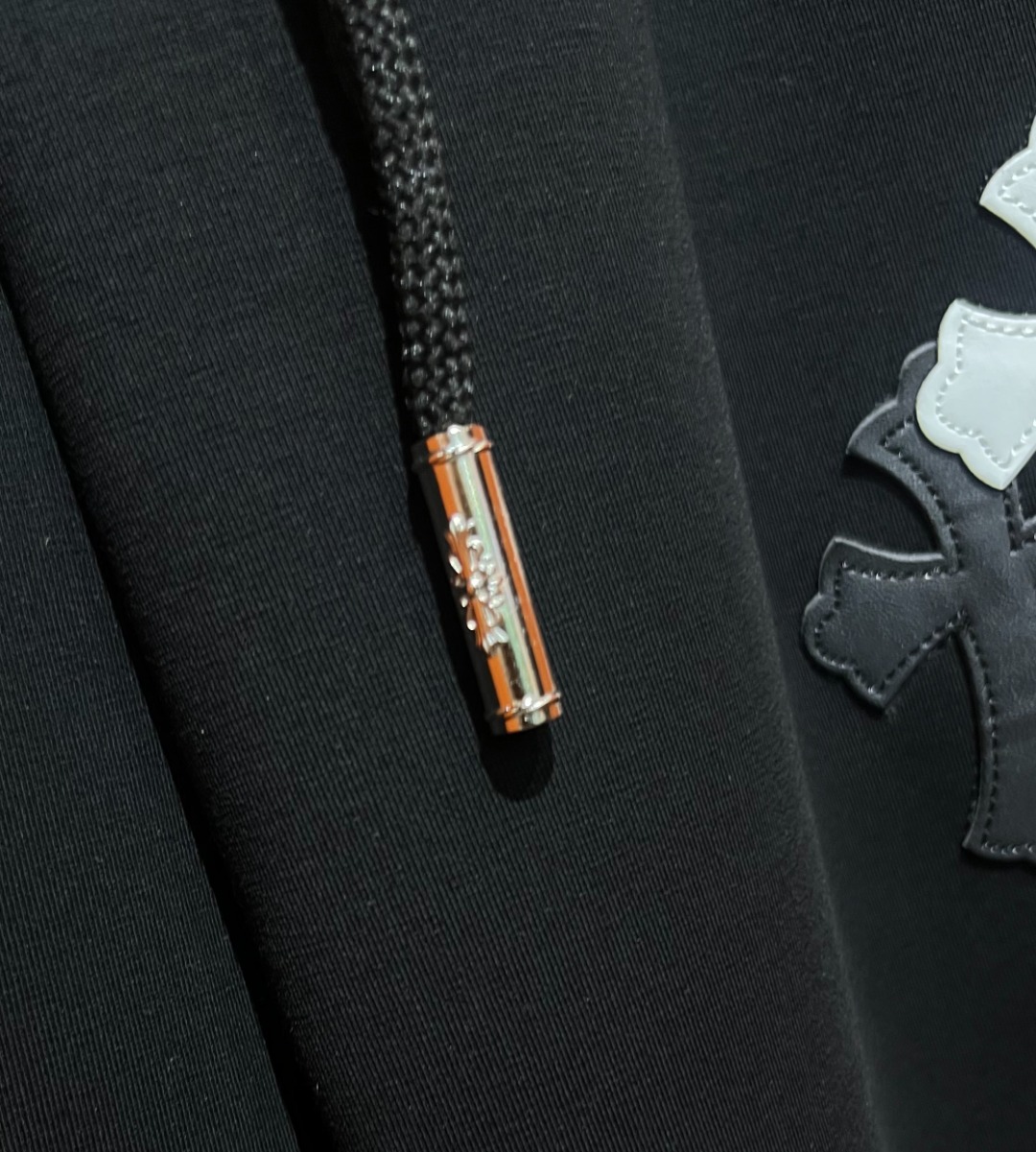 这款衣服是AAAAA 1:1 质量 (非常棒). 使用了和原版一模一样的材料. 商标部分也保持了和克罗心/Chrome Hearts一样. 图片拍摄是实物衣服拍摄, 您所收到的实物保证和我们图片一模一样.
