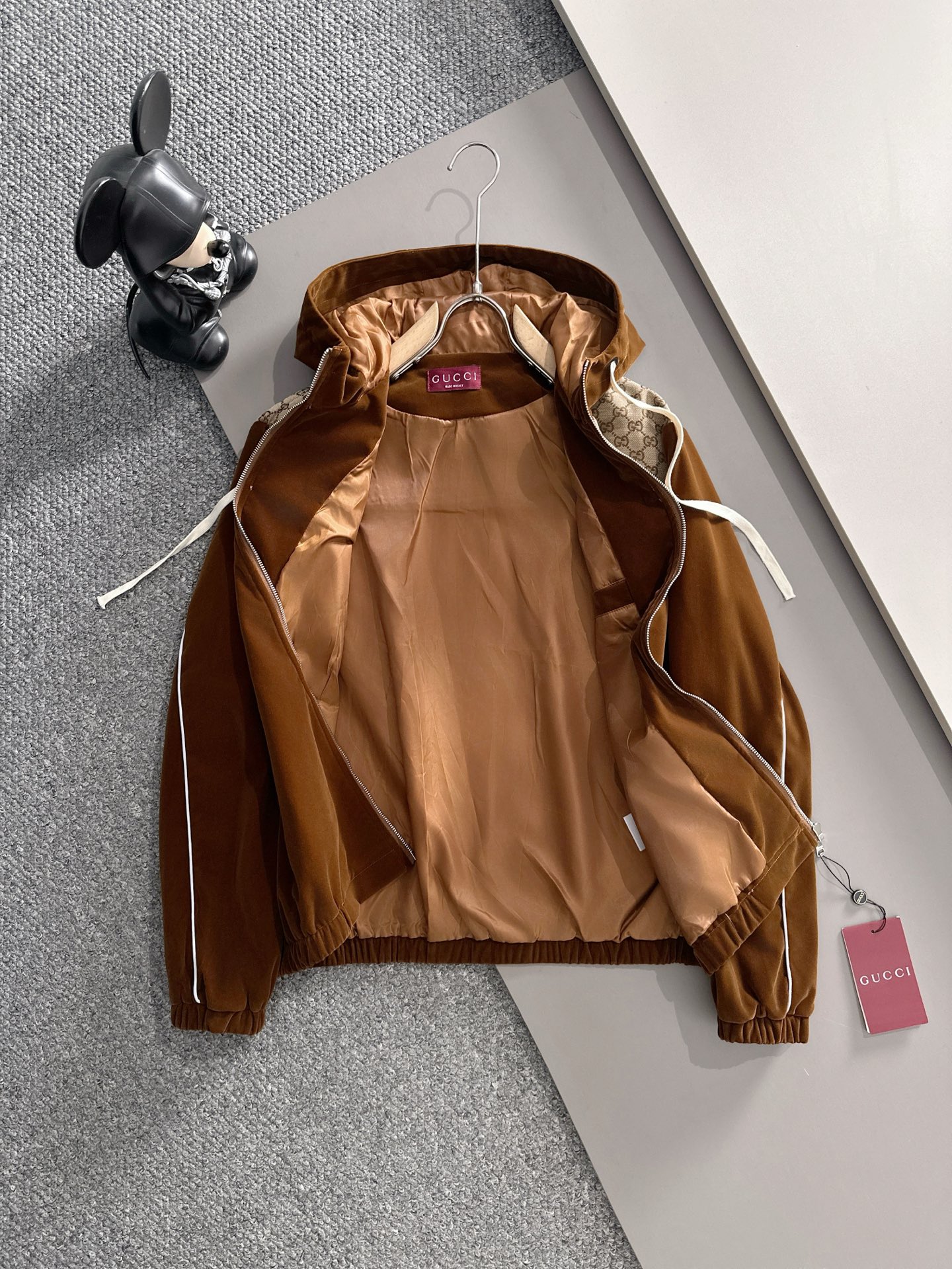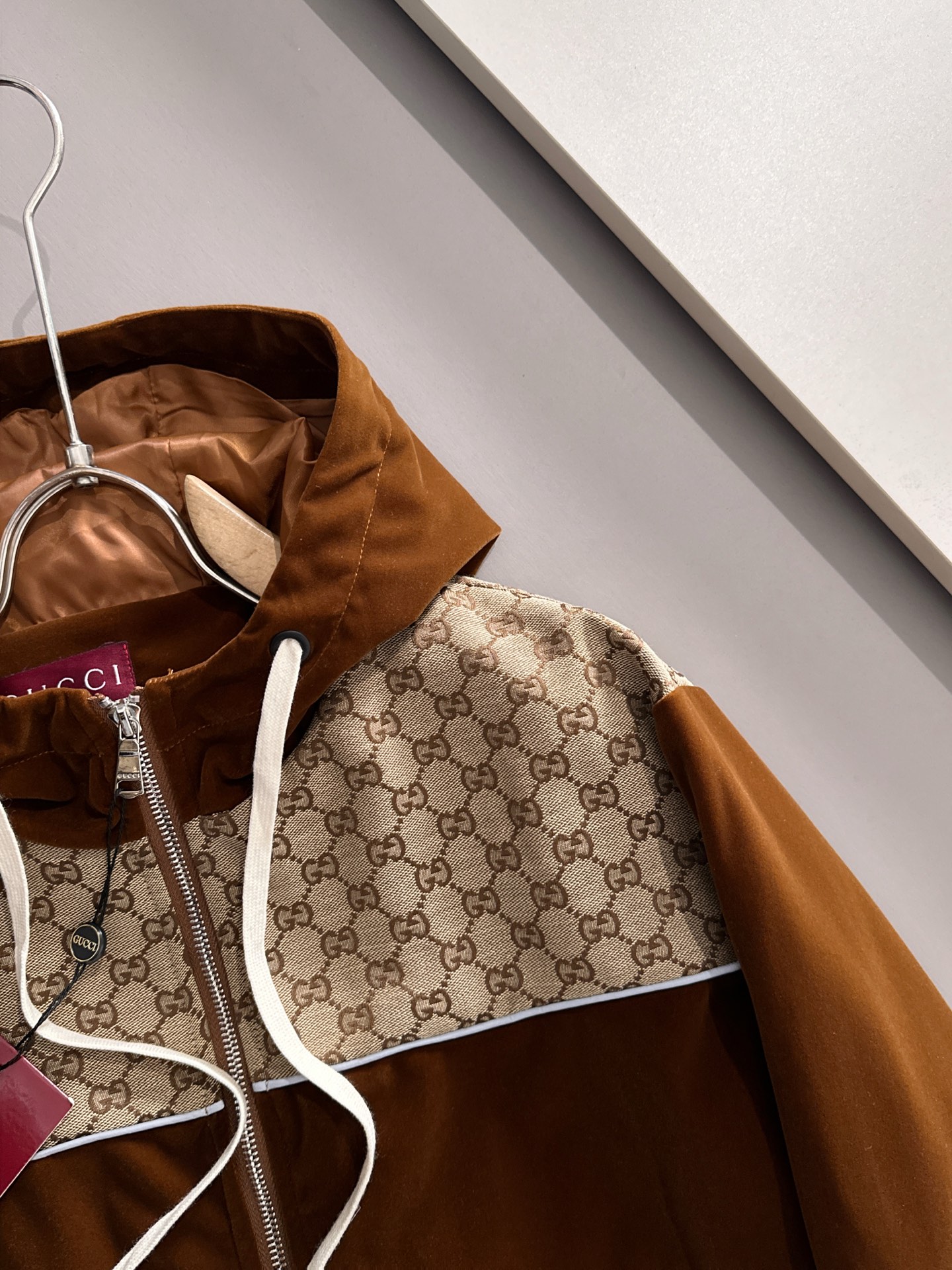 这款衣服是AAAAA 1:1 质量 (非常棒). 使用了和原版一模一样的材料. 商标部分也保持了和古奇/Gucci一样. 图片拍摄是实物衣服拍摄, 您所收到的实物保证和我们图片一模一样.