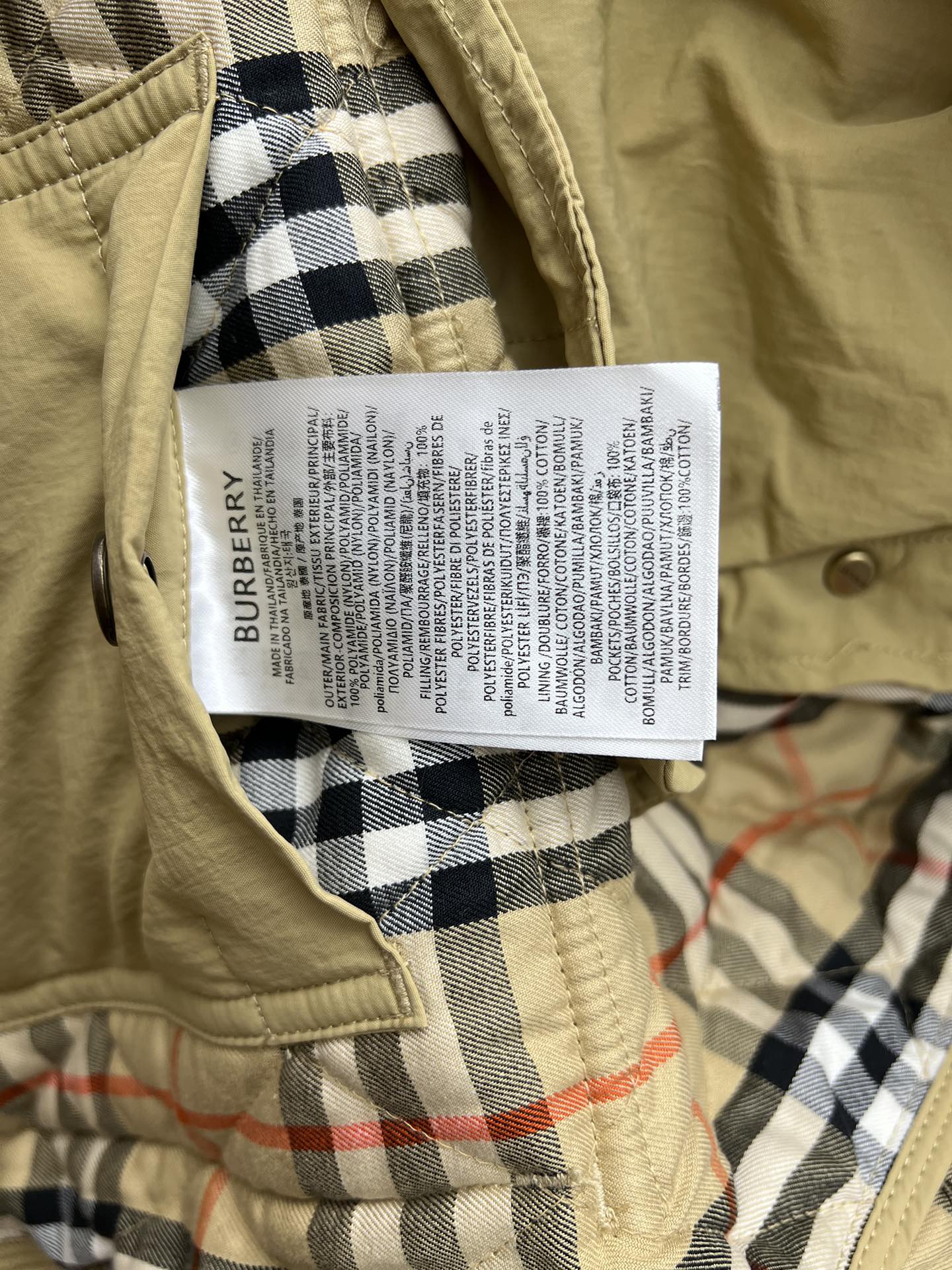 这款衣服是AAAAA 1:1 质量 (非常棒). 使用了和原版一模一样的材料. 商标部分也保持了和巴宝莉/Burberry一样. 图片拍摄是实物衣服拍摄, 您所收到的实物保证和我们图片一模一样.