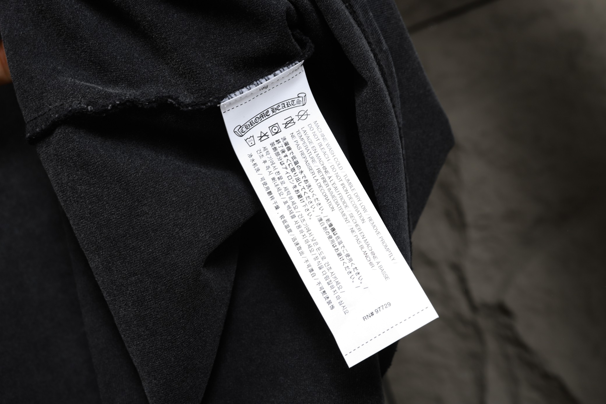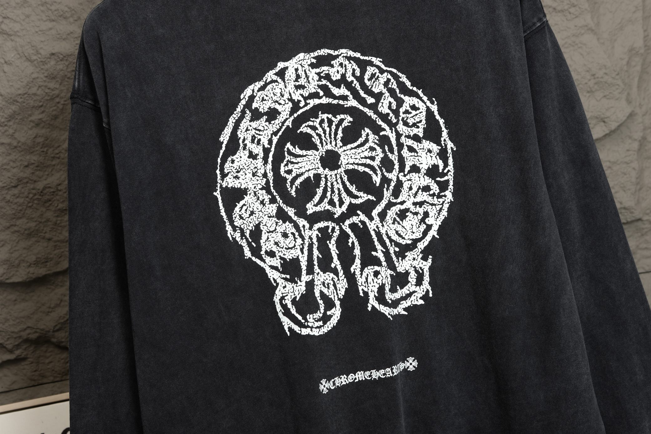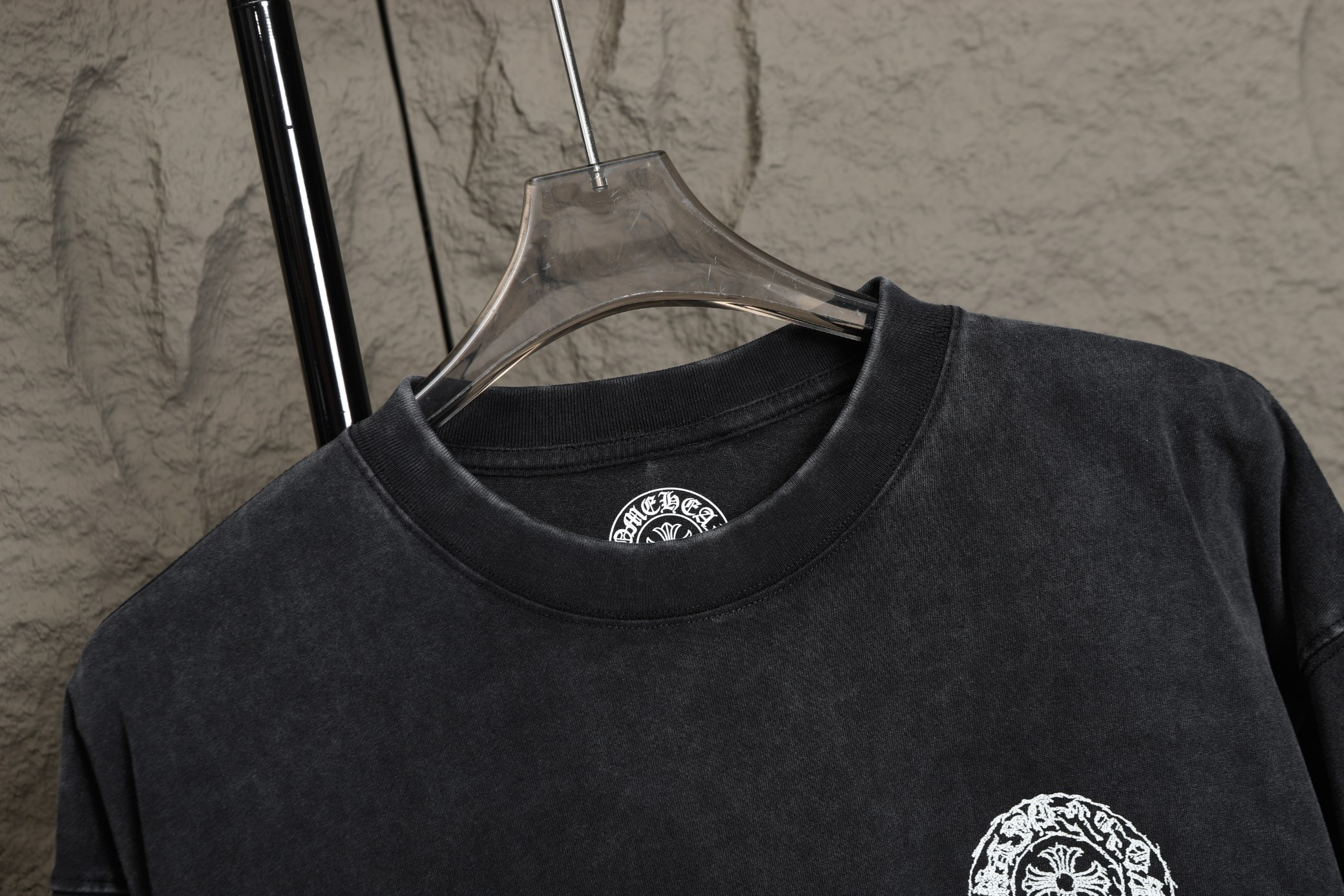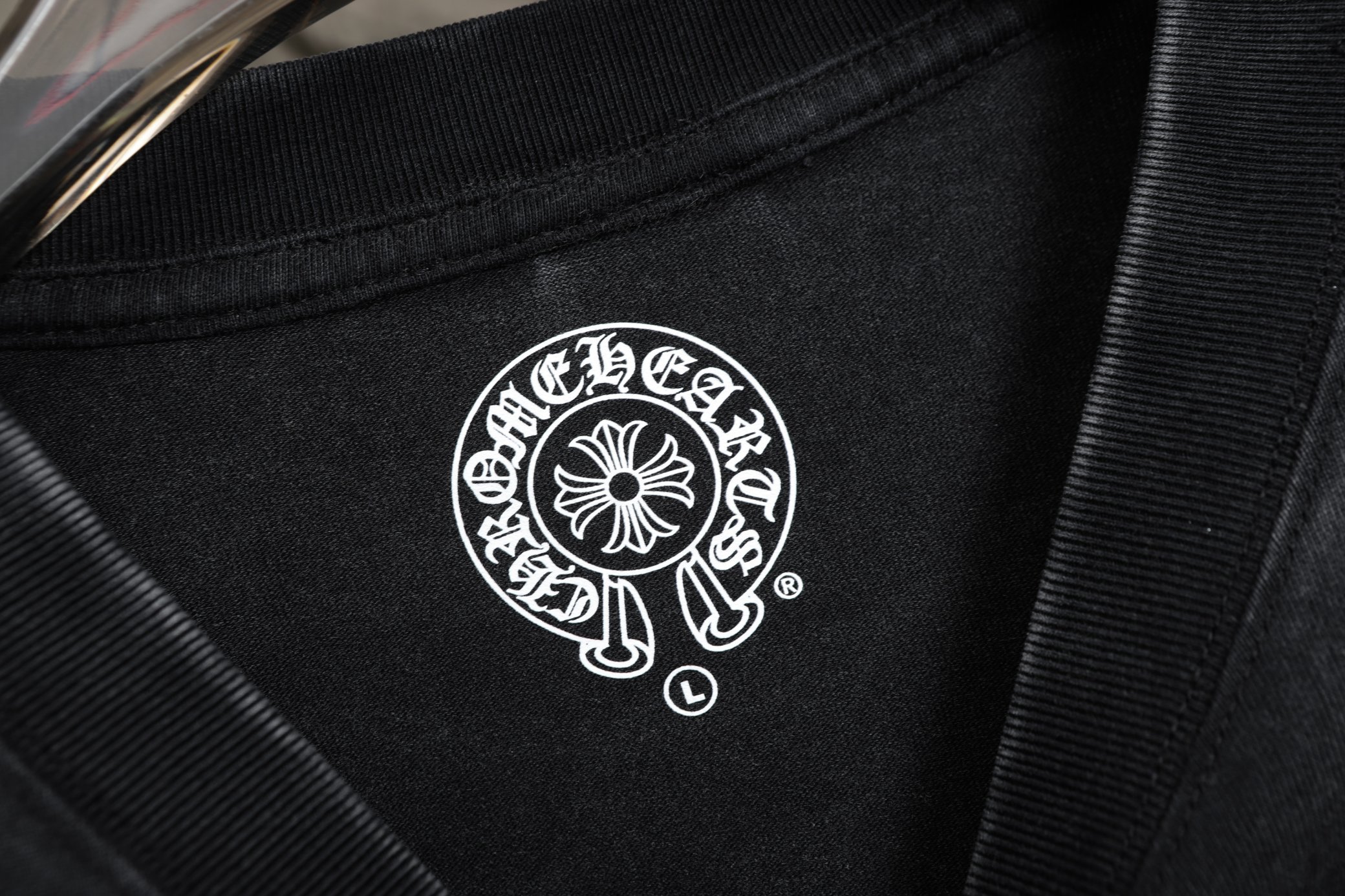这款衣服是AAAAA 1:1 质量 (非常棒). 使用了和原版一模一样的材料. 商标部分也保持了和克罗心/Chrome Hearts一样. 图片拍摄是实物衣服拍摄, 您所收到的实物保证和我们图片一模一样.