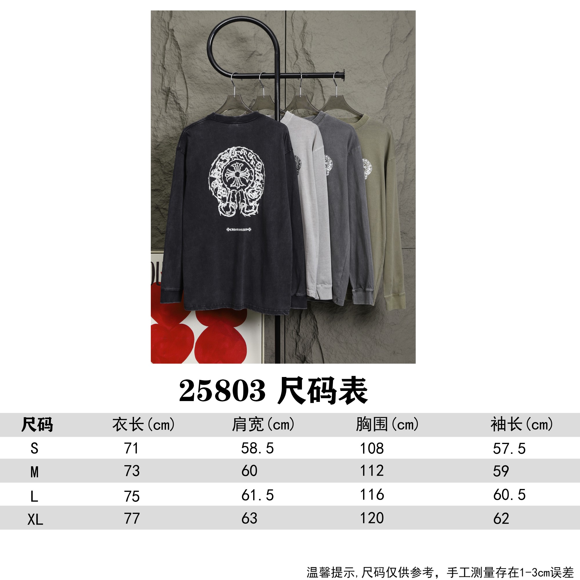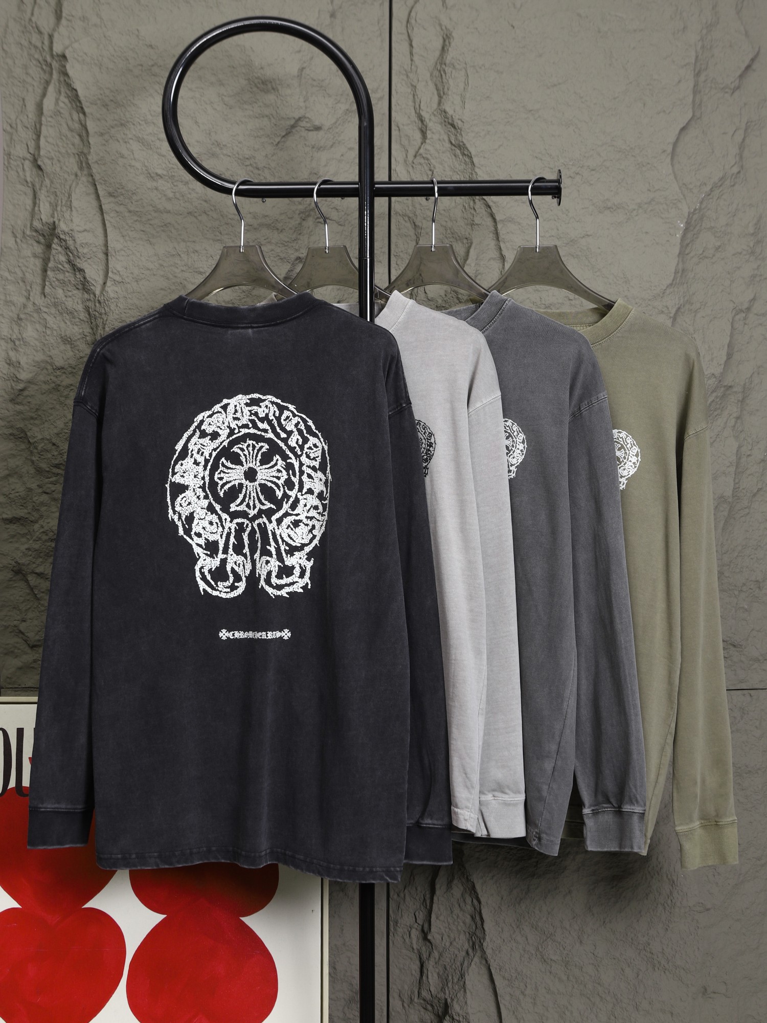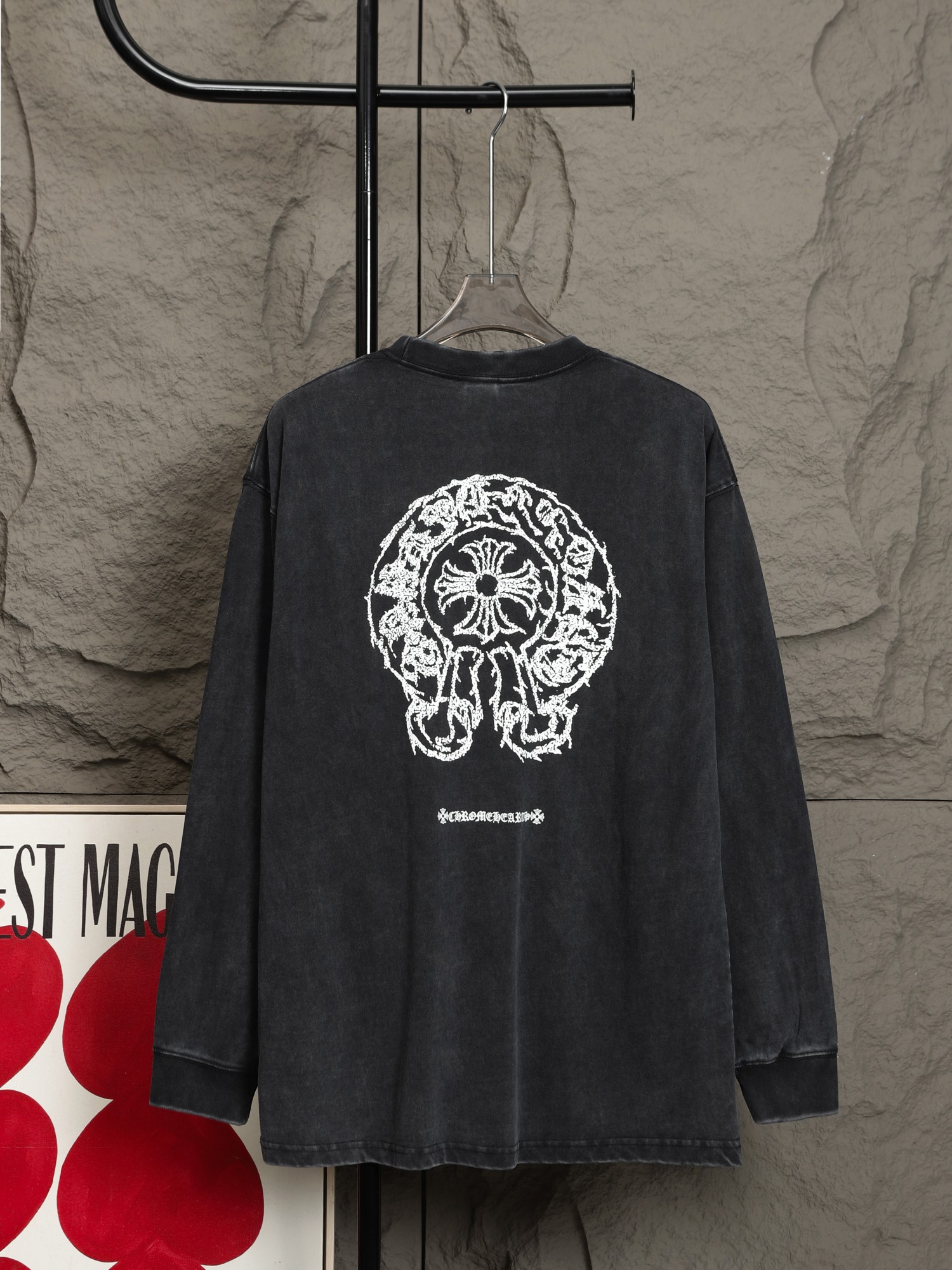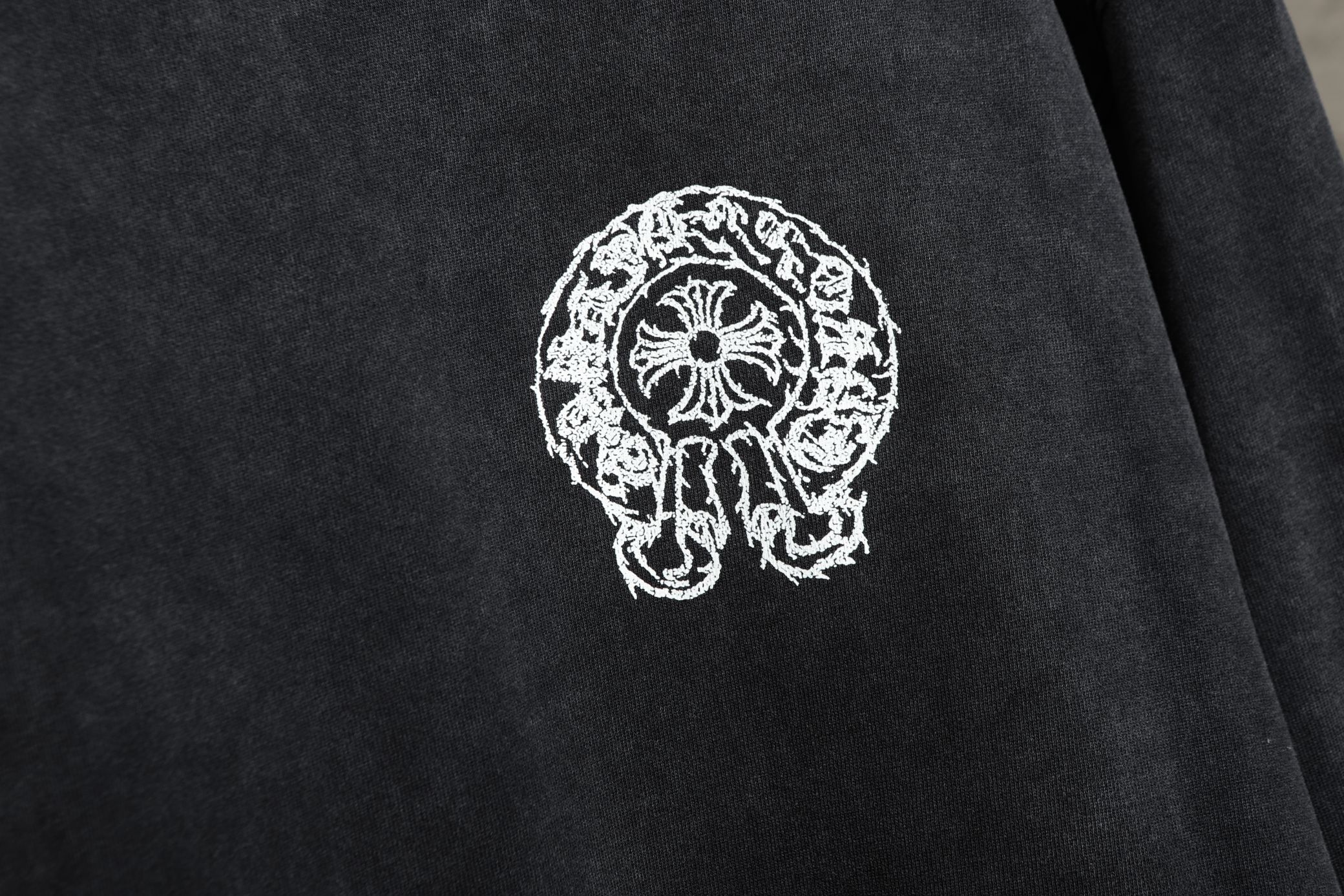 这款衣服是AAAAA 1:1 质量 (非常棒). 使用了和原版一模一样的材料. 商标部分也保持了和克罗心/Chrome Hearts一样. 图片拍摄是实物衣服拍摄, 您所收到的实物保证和我们图片一模一样.