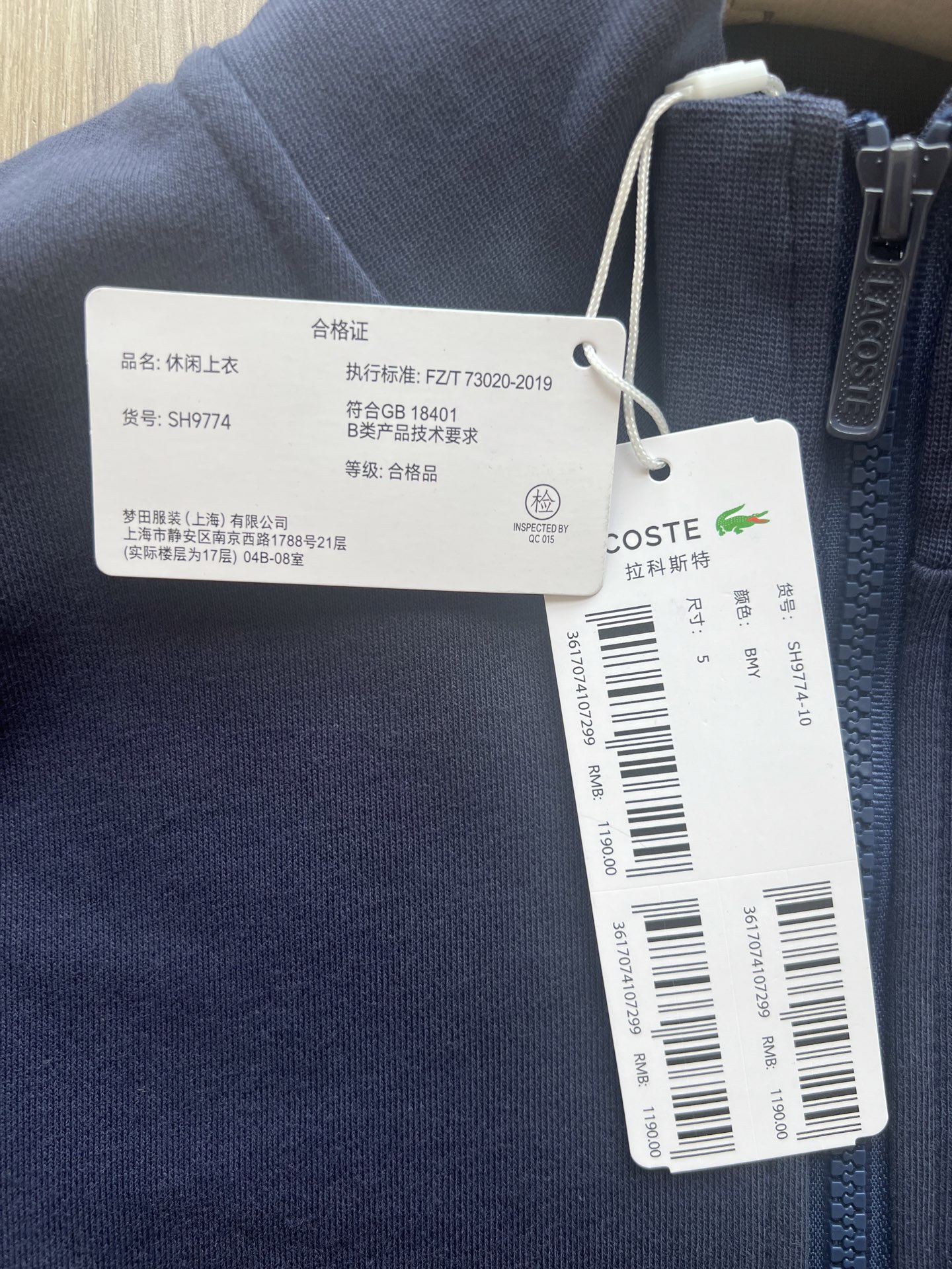 这款衣服是AAAAA 1:1 质量 (非常棒). 使用了和原版一模一样的材料. 商标部分也保持了和LACOSTE一样. 图片拍摄是实物衣服拍摄, 您所收到的实物保证和我们图片一模一样.