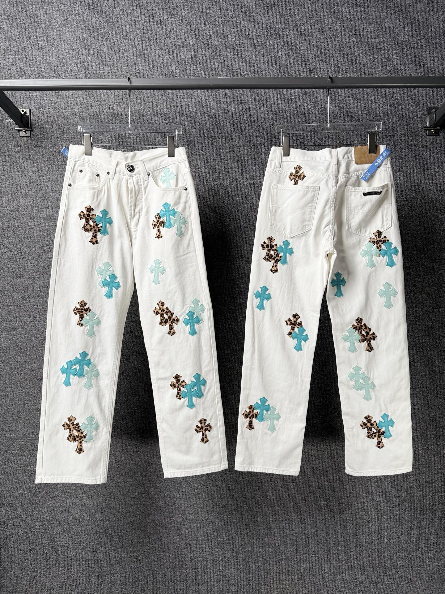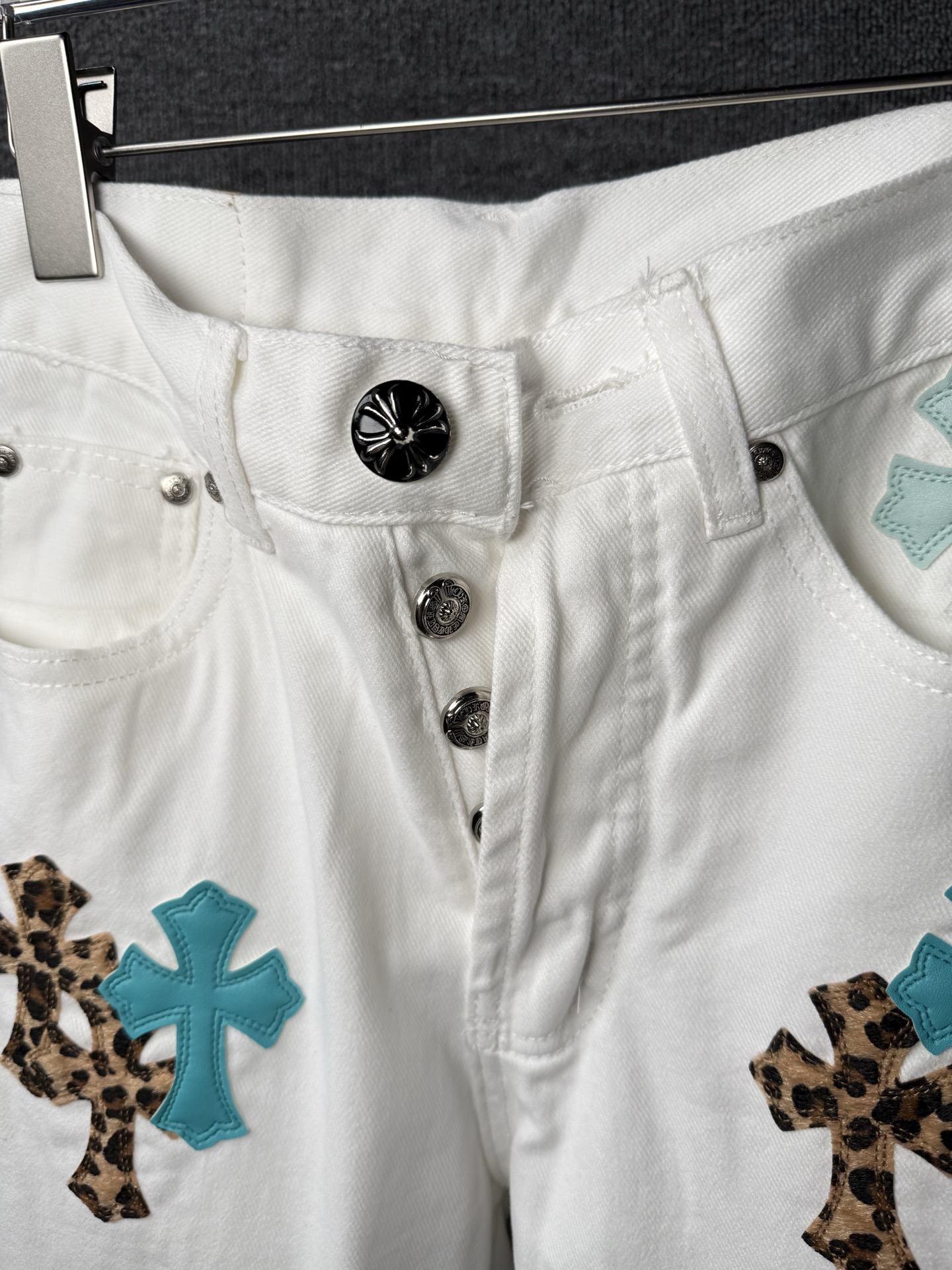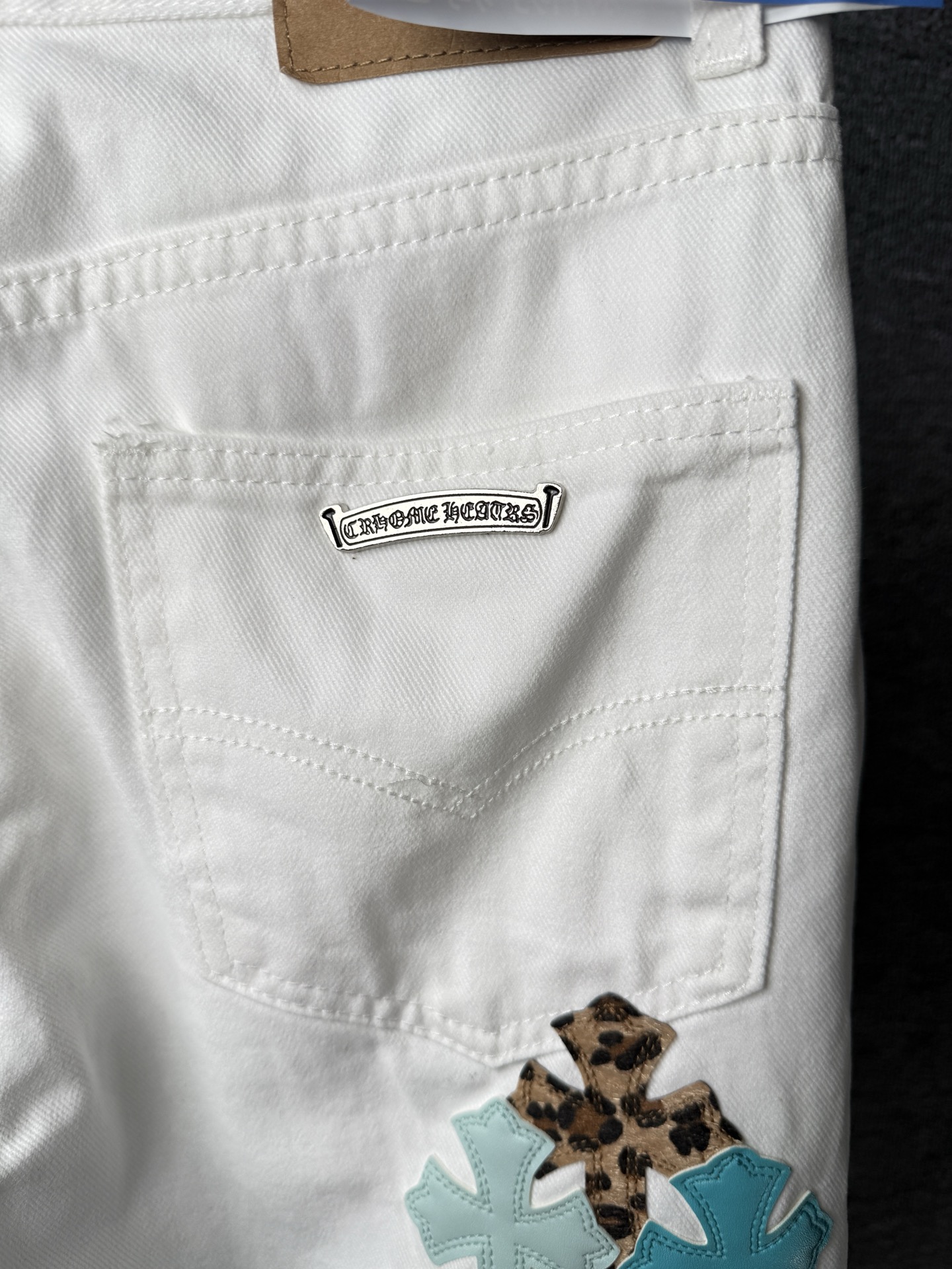 这款衣服是AAAAA 1:1 质量 (非常棒). 使用了和原版一模一样的材料. 商标部分也保持了和克罗心/Chrome Hearts一样. 图片拍摄是实物衣服拍摄, 您所收到的实物保证和我们图片一模一样.