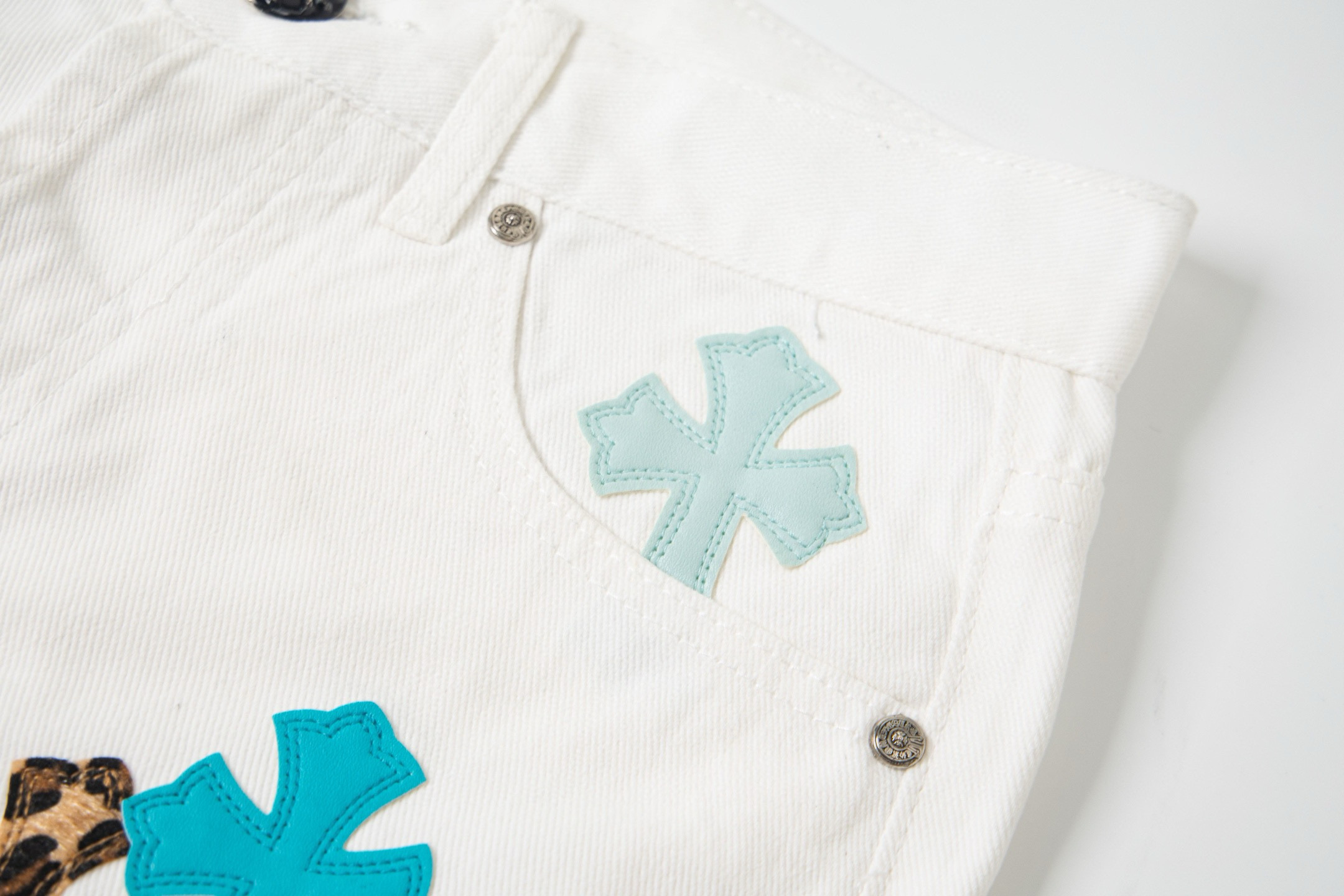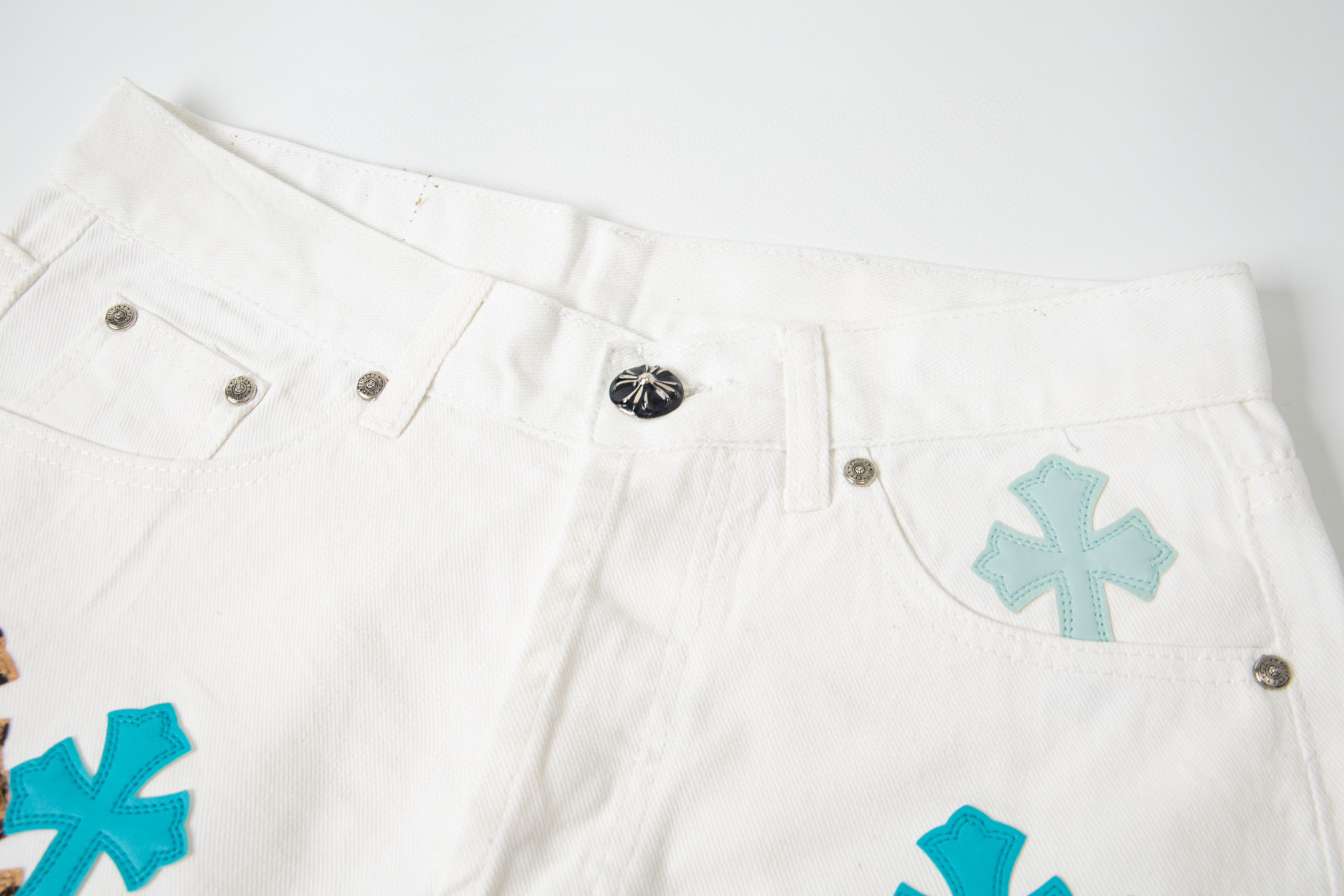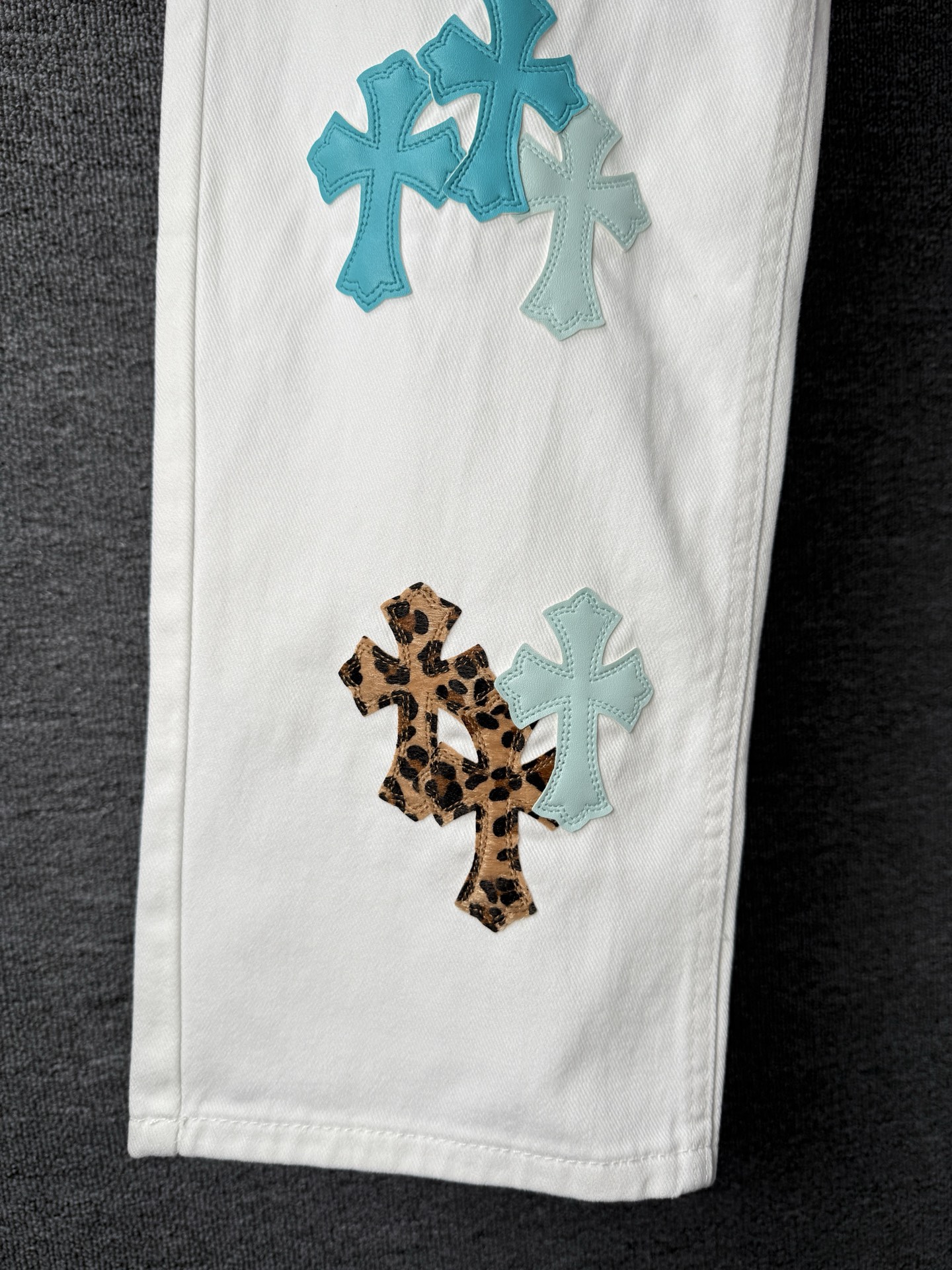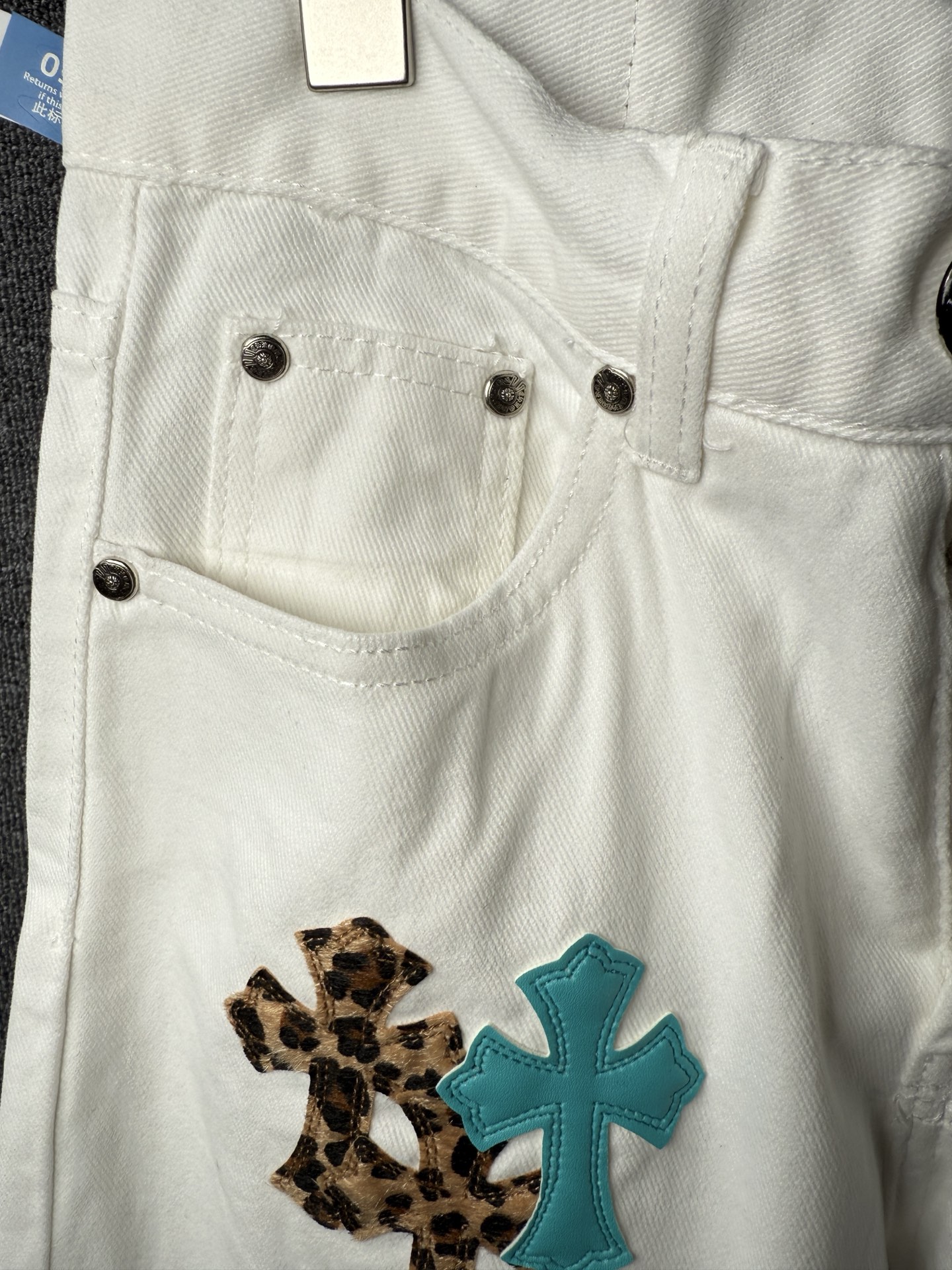 这款衣服是AAAAA 1:1 质量 (非常棒). 使用了和原版一模一样的材料. 商标部分也保持了和克罗心/Chrome Hearts一样. 图片拍摄是实物衣服拍摄, 您所收到的实物保证和我们图片一模一样.