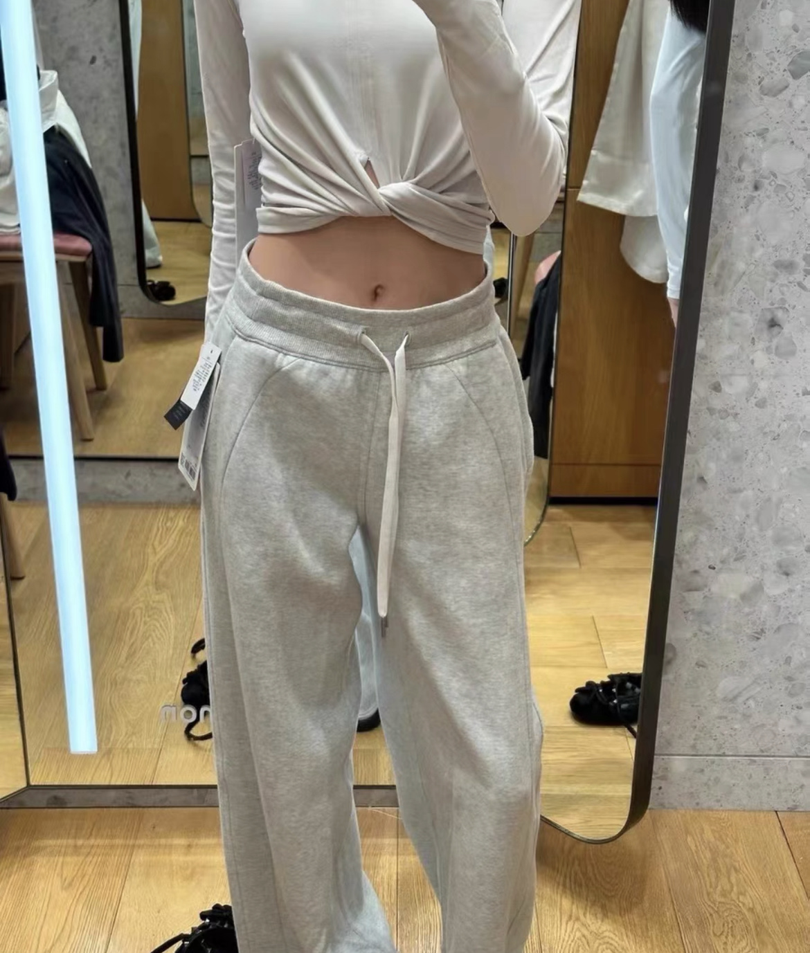 这款衣服是AAAAA 1:1 质量 (非常棒). 使用了和原版一模一样的材料. 商标部分也保持了和Lululemon一样. 图片拍摄是实物衣服拍摄, 您所收到的实物保证和我们图片一模一样.
