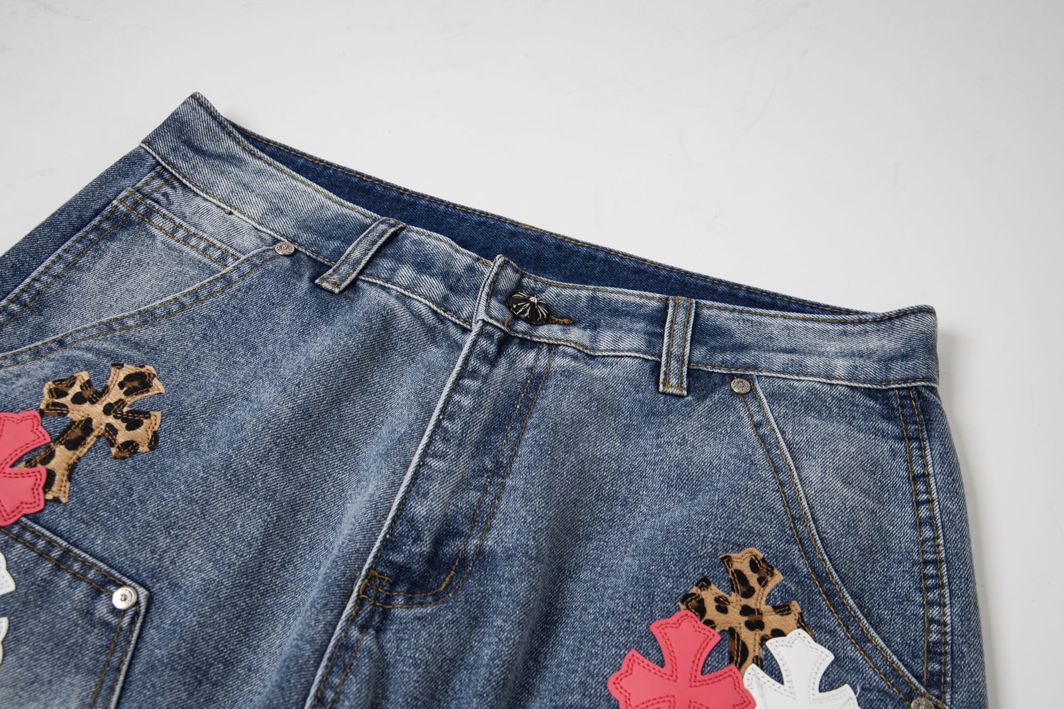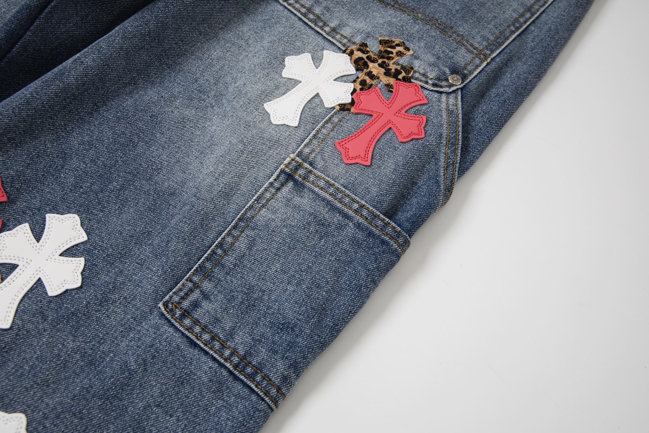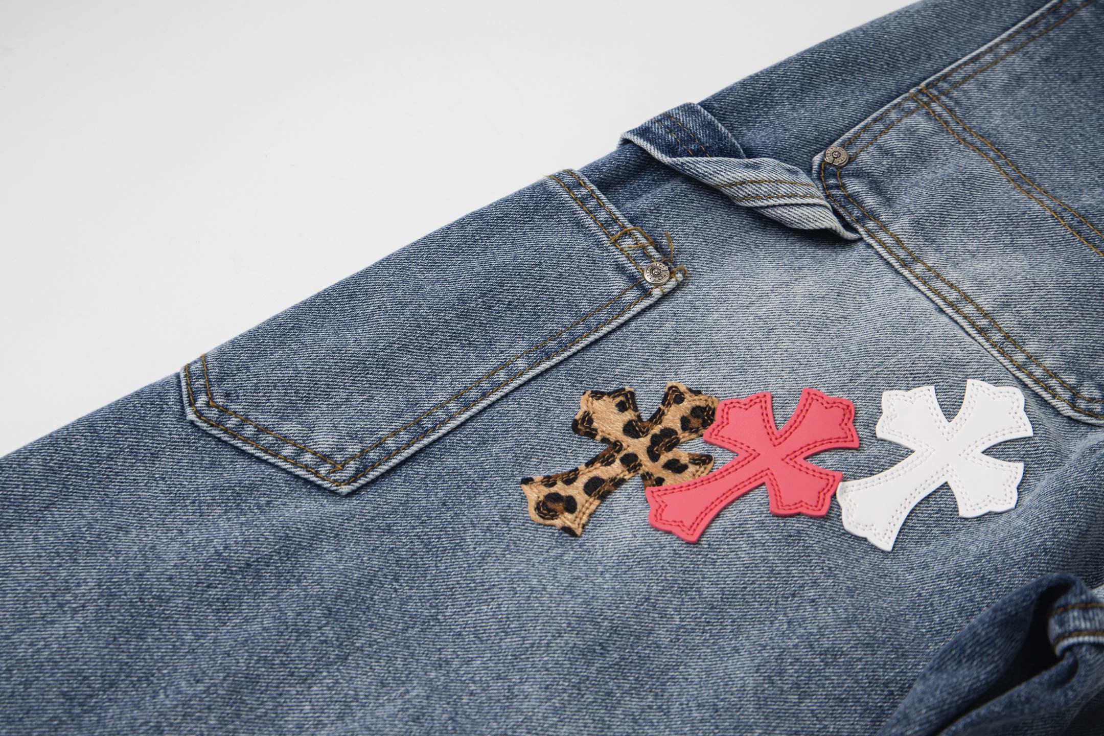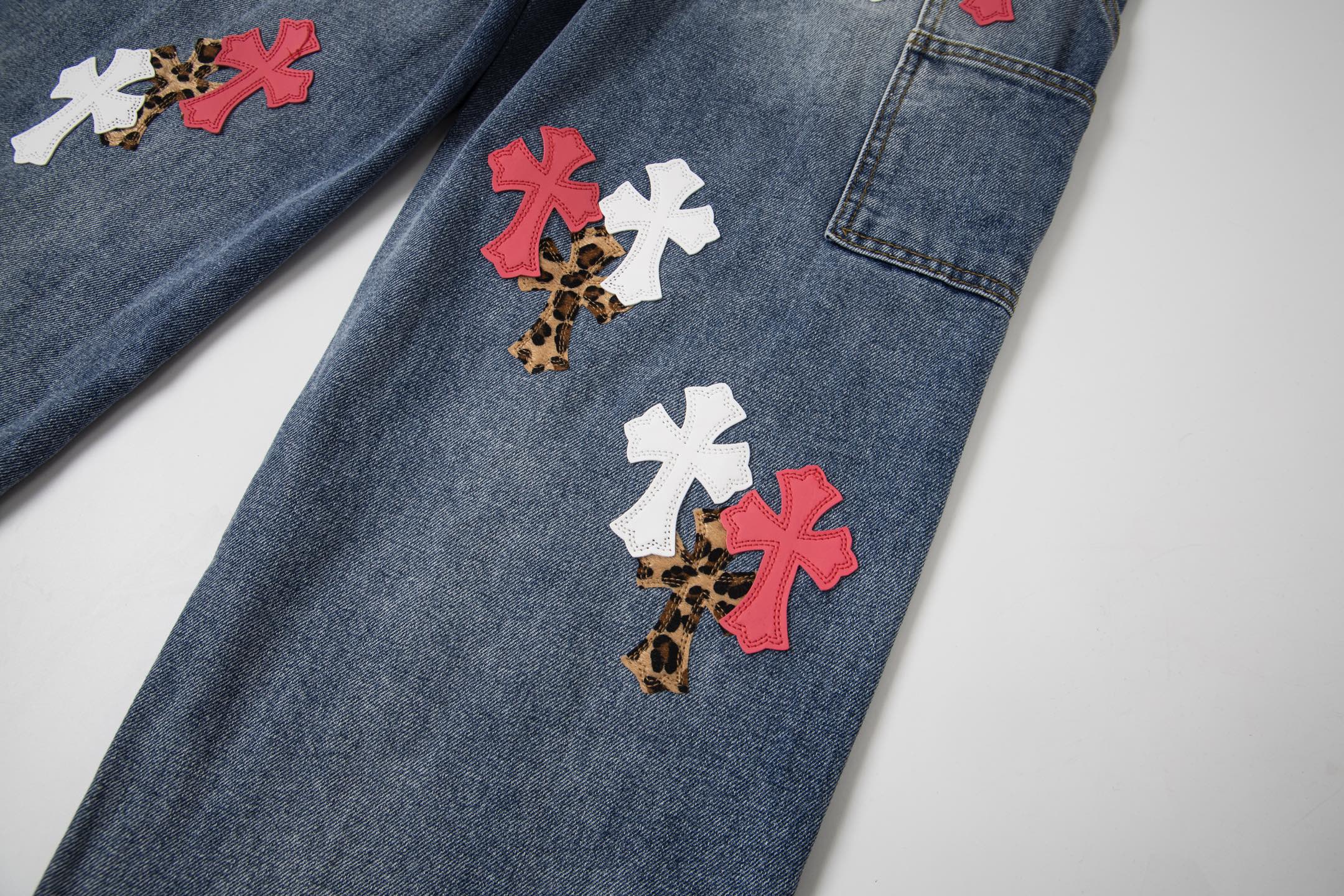 这款衣服是AAAAA 1:1 质量 (非常棒). 使用了和原版一模一样的材料. 商标部分也保持了和克罗心/Chrome Hearts一样. 图片拍摄是实物衣服拍摄, 您所收到的实物保证和我们图片一模一样.