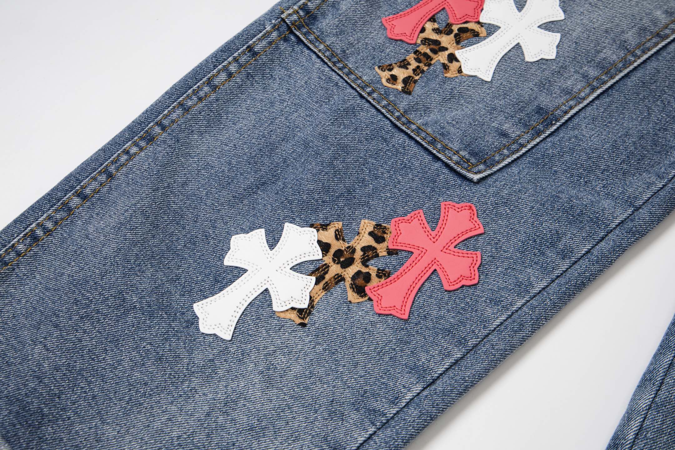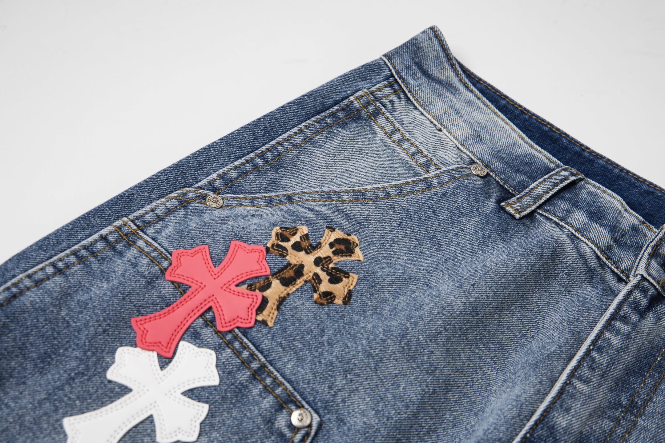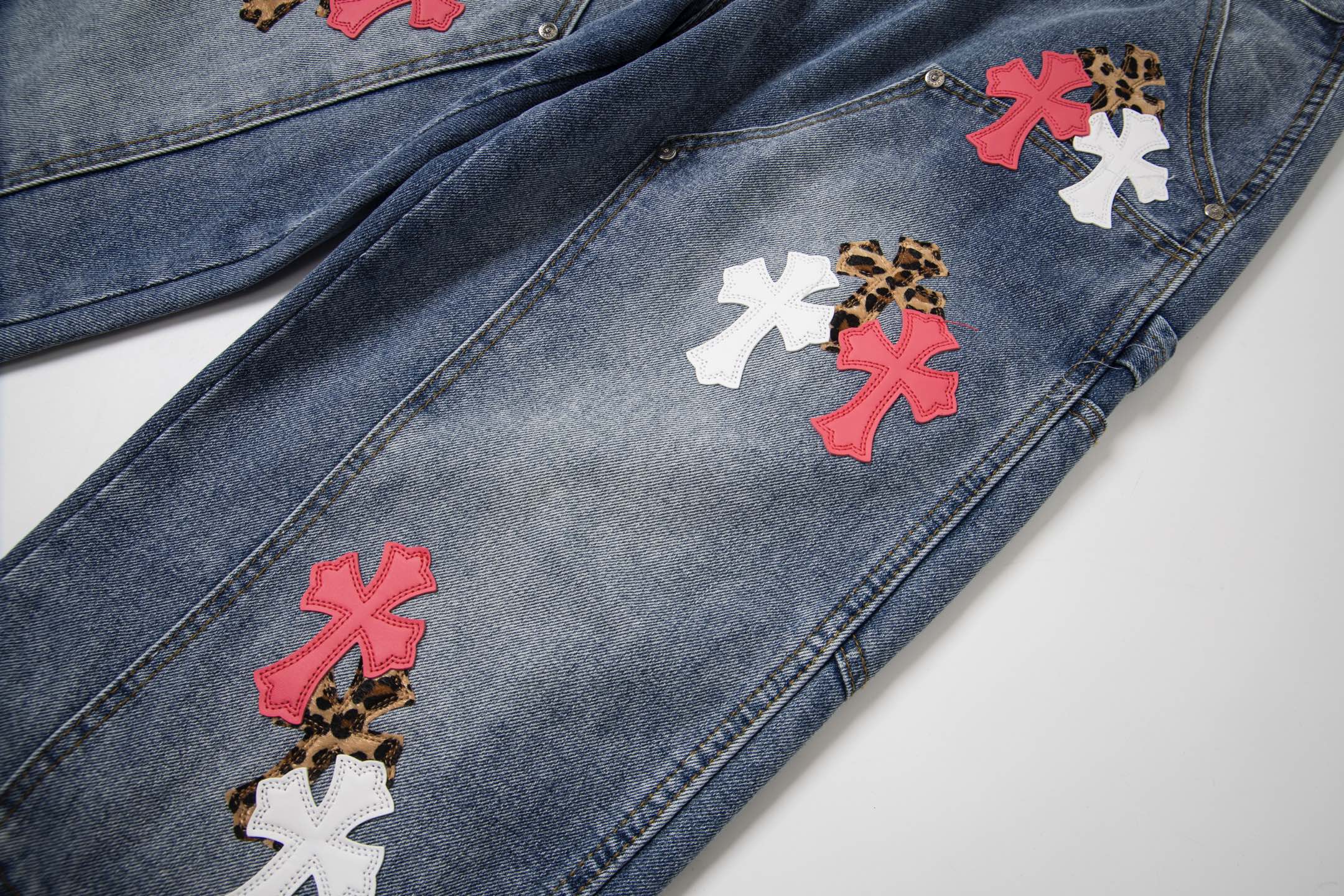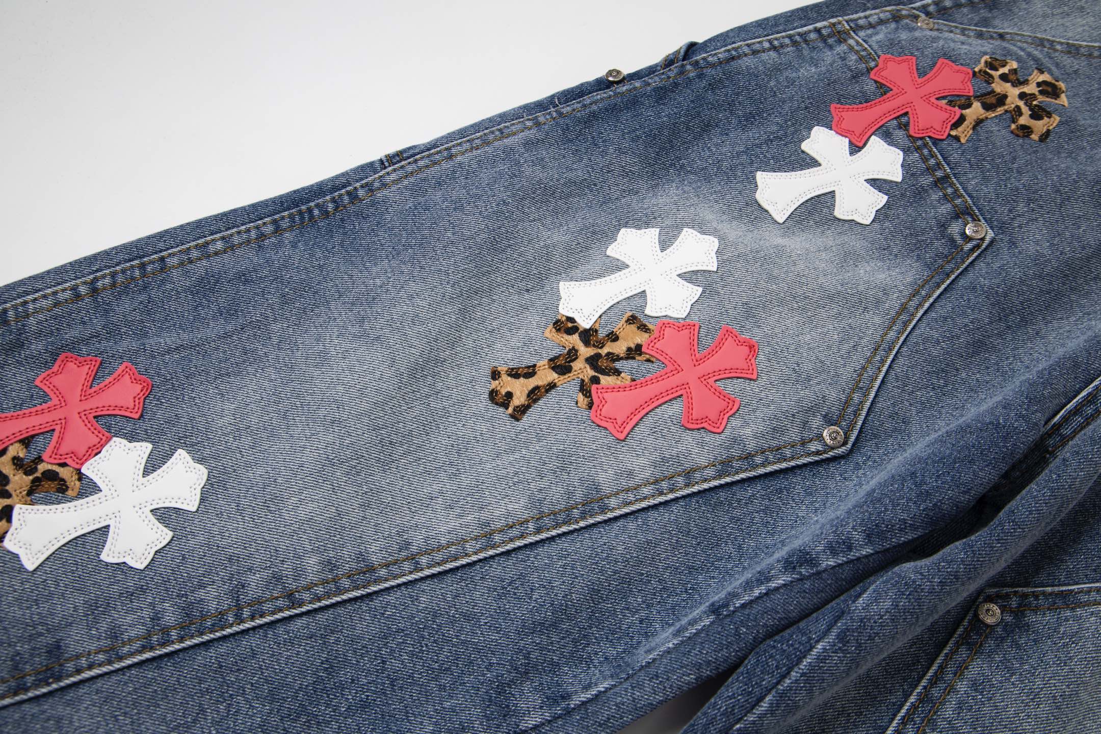 这款衣服是AAAAA 1:1 质量 (非常棒). 使用了和原版一模一样的材料. 商标部分也保持了和克罗心/Chrome Hearts一样. 图片拍摄是实物衣服拍摄, 您所收到的实物保证和我们图片一模一样.