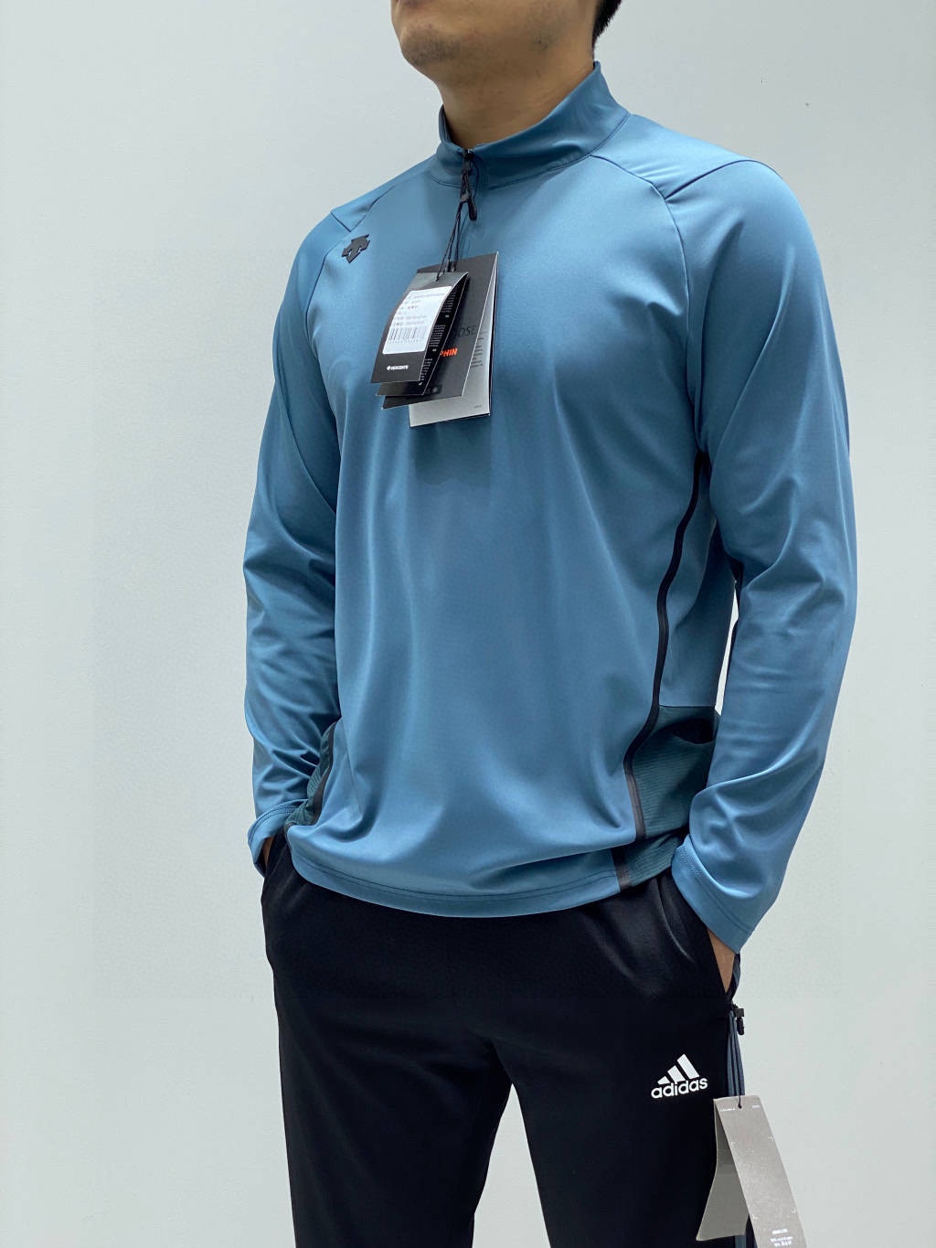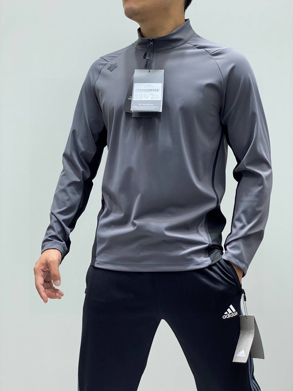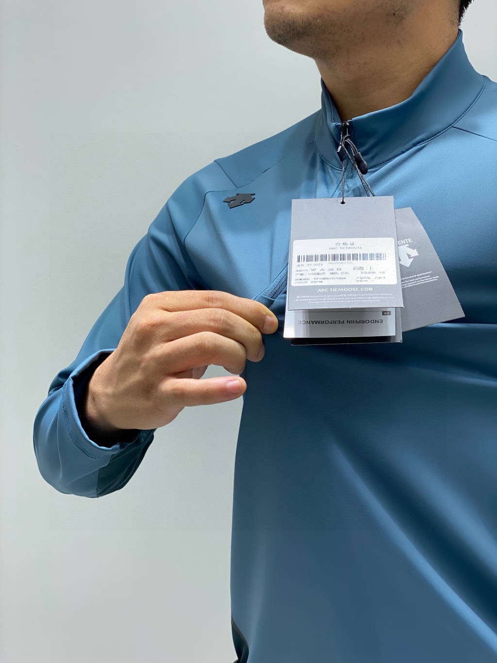 这款衣服是AAAAA 1:1 质量 (非常棒). 使用了和原版一模一样的材料. 商标部分也保持了和Descente一样. 图片拍摄是实物衣服拍摄, 您所收到的实物保证和我们图片一模一样.