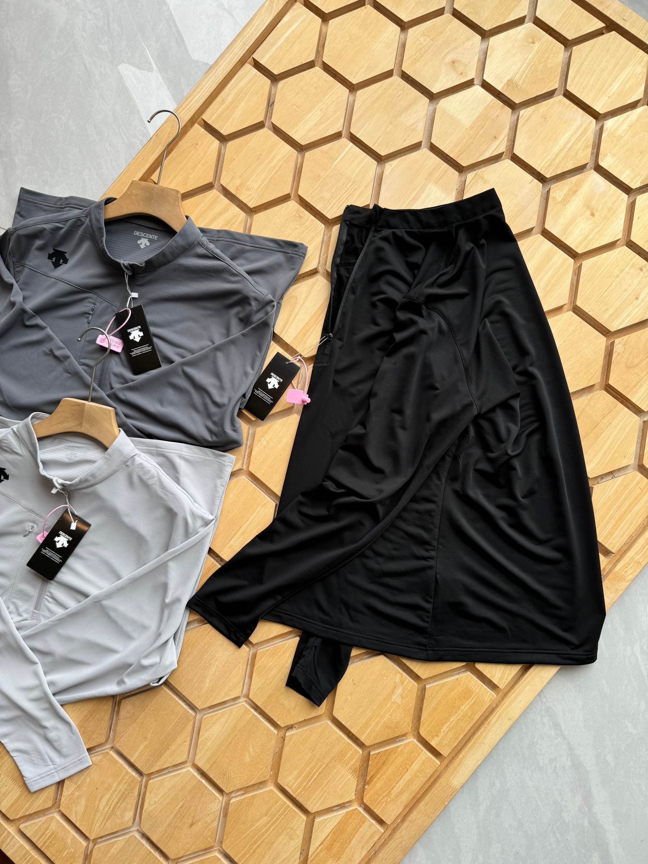这款衣服是AAAAA 1:1 质量 (非常棒). 使用了和原版一模一样的材料. 商标部分也保持了和Descente一样. 图片拍摄是实物衣服拍摄, 您所收到的实物保证和我们图片一模一样.