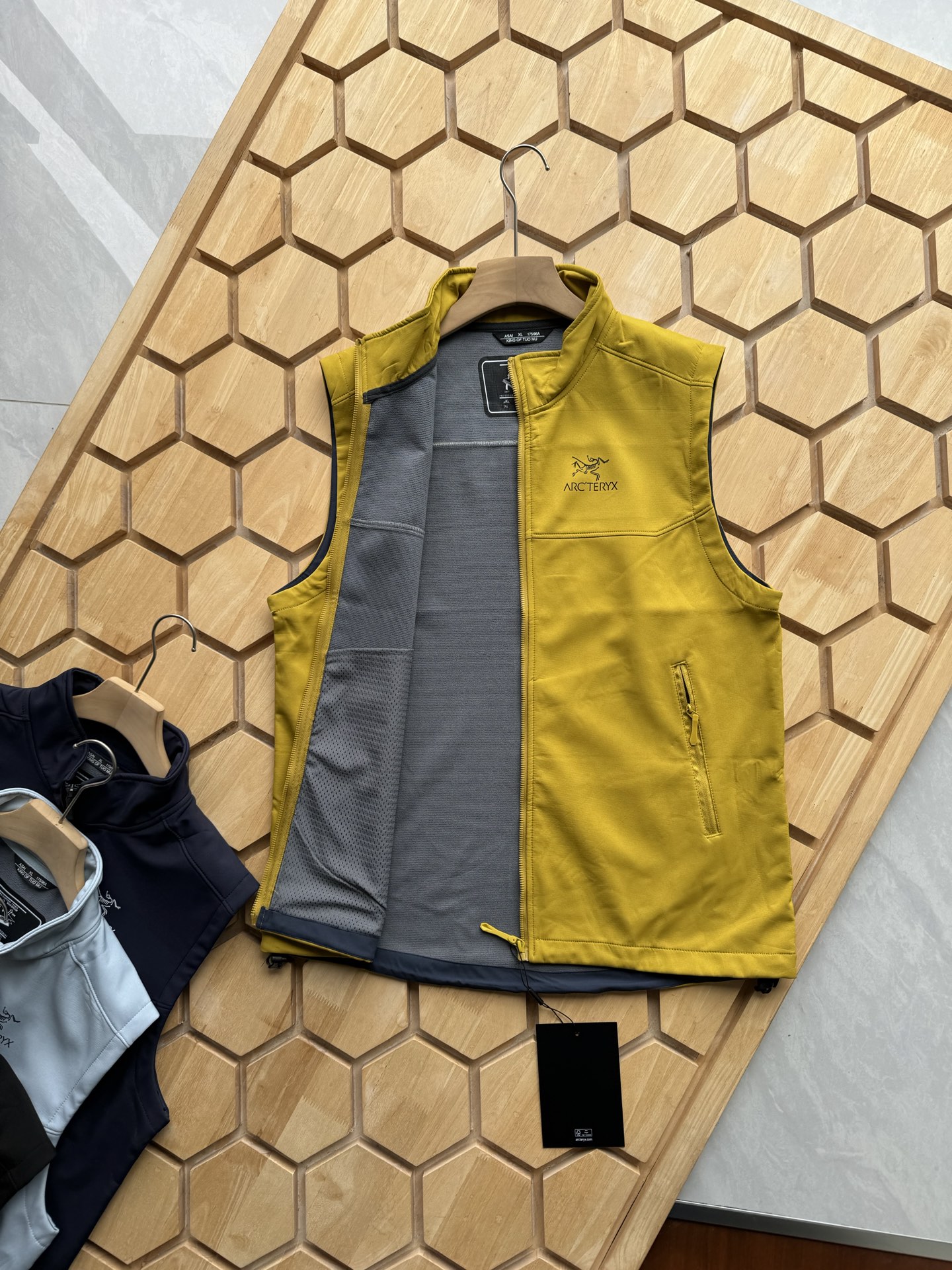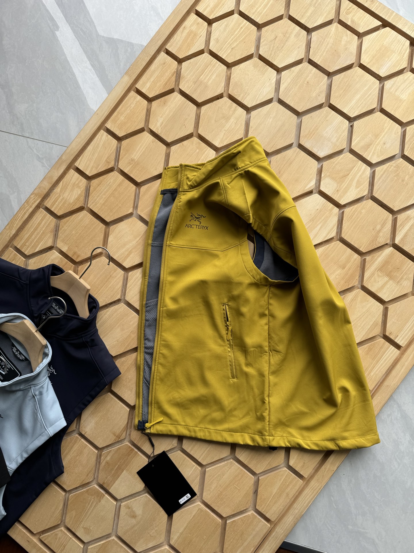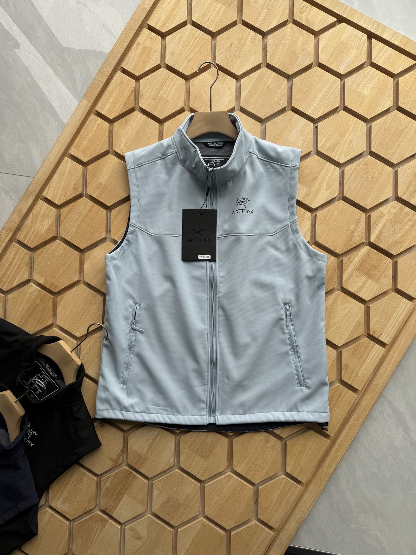 这款衣服是AAAAA 1:1 质量 (非常棒). 使用了和原版一模一样的材料. 商标部分也保持了和ARC'TERYX一样. 图片拍摄是实物衣服拍摄, 您所收到的实物保证和我们图片一模一样.