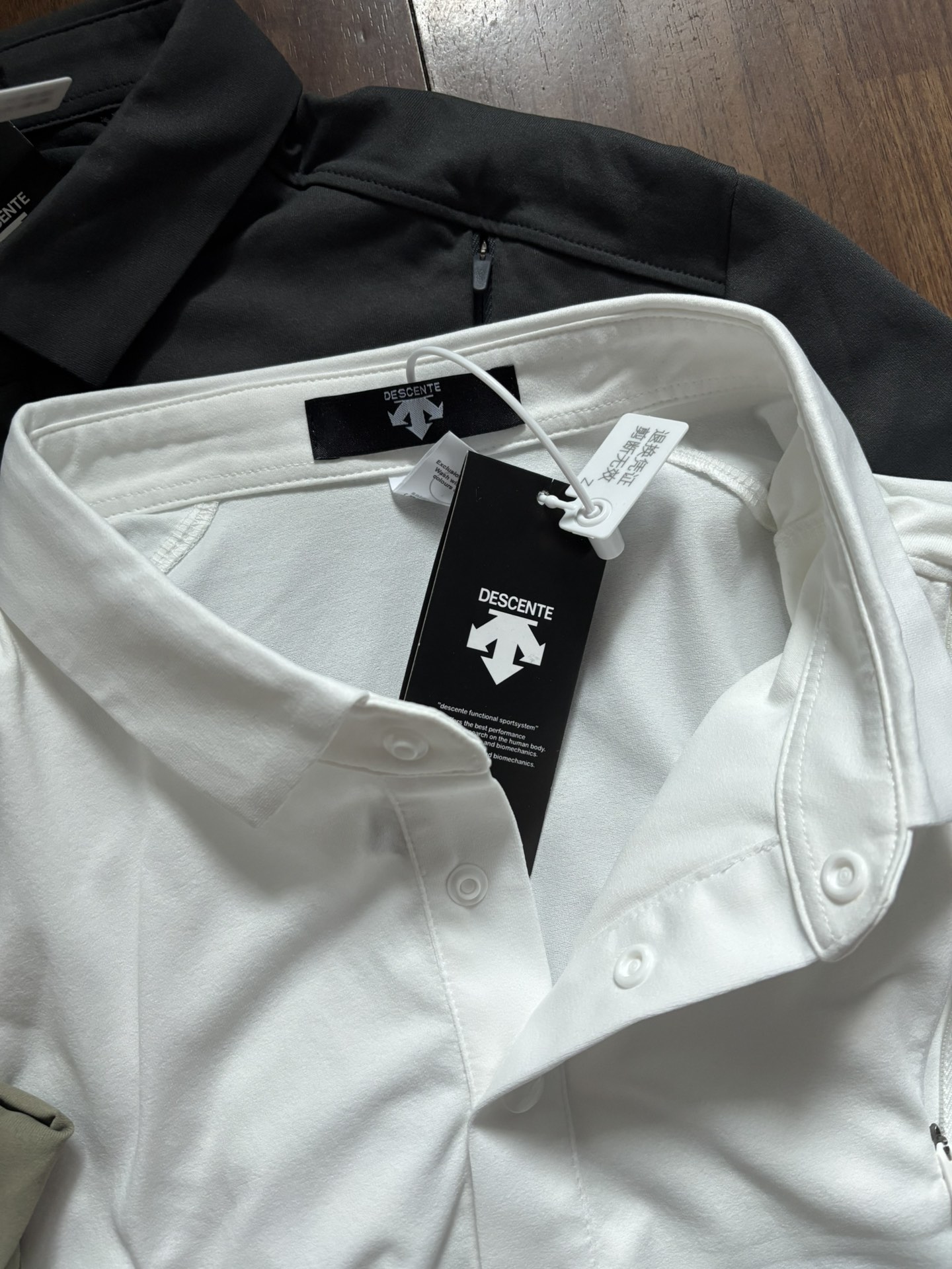 这款衣服是AAAAA 1:1 质量 (非常棒). 使用了和原版一模一样的材料. 商标部分也保持了和Descente一样. 图片拍摄是实物衣服拍摄, 您所收到的实物保证和我们图片一模一样.