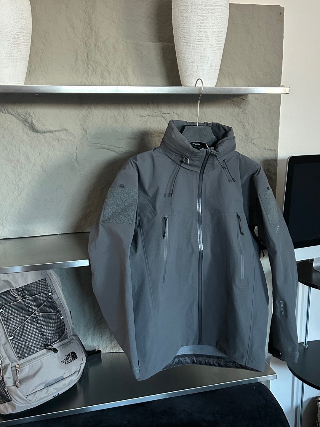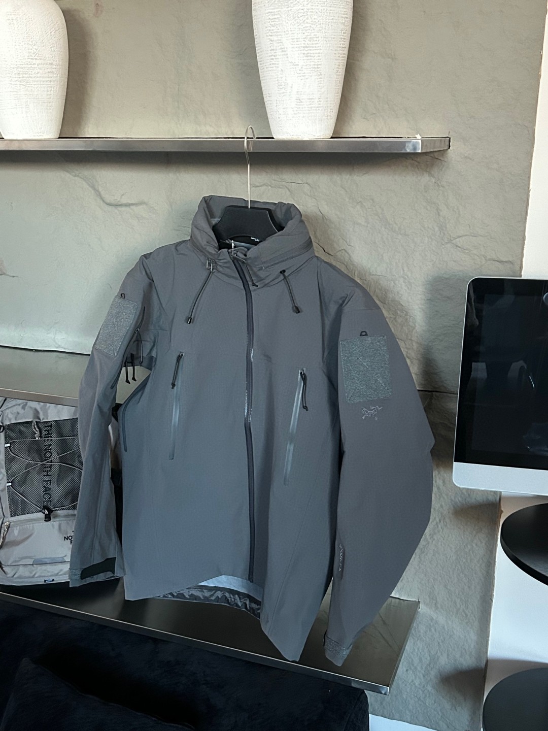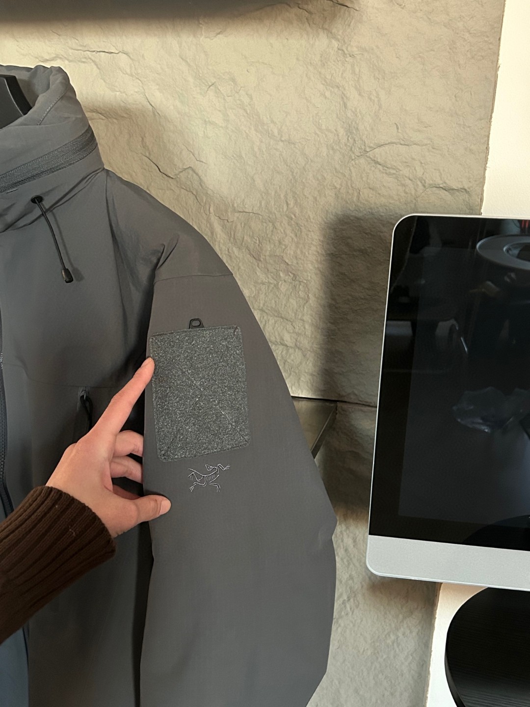 这款衣服是AAAAA 1:1 质量 (非常棒). 使用了和原版一模一样的材料. 商标部分也保持了和ARC'TERYX一样. 图片拍摄是实物衣服拍摄, 您所收到的实物保证和我们图片一模一样.