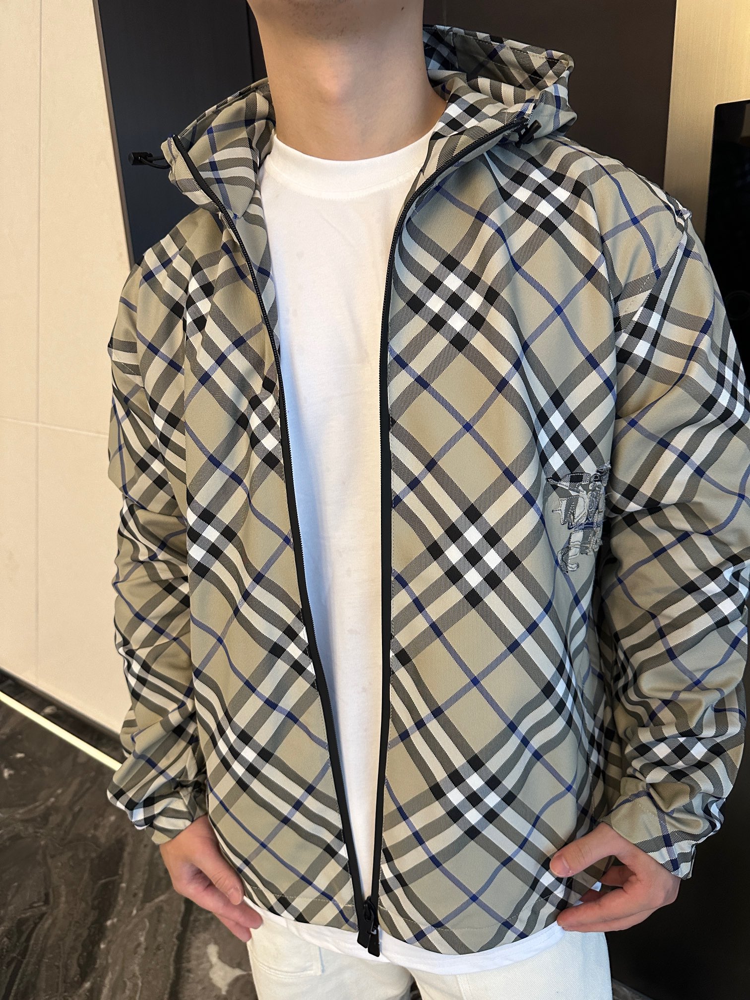 这款衣服是AAAAA 1:1 质量 (非常棒). 使用了和原版一模一样的材料. 商标部分也保持了和巴宝莉/Burberry一样. 图片拍摄是实物衣服拍摄, 您所收到的实物保证和我们图片一模一样.