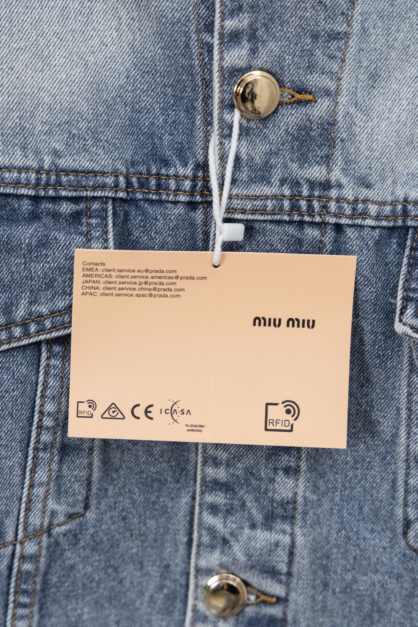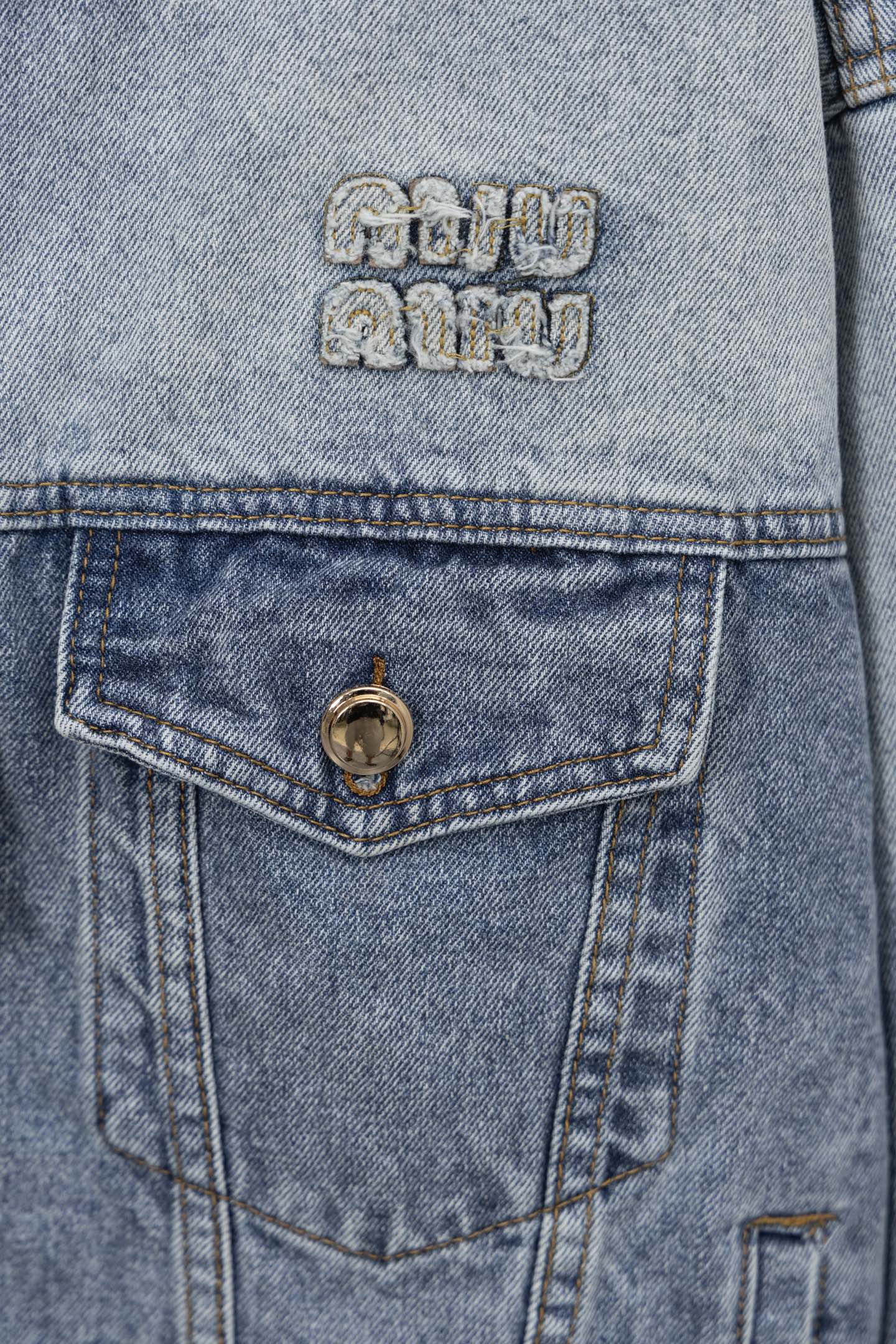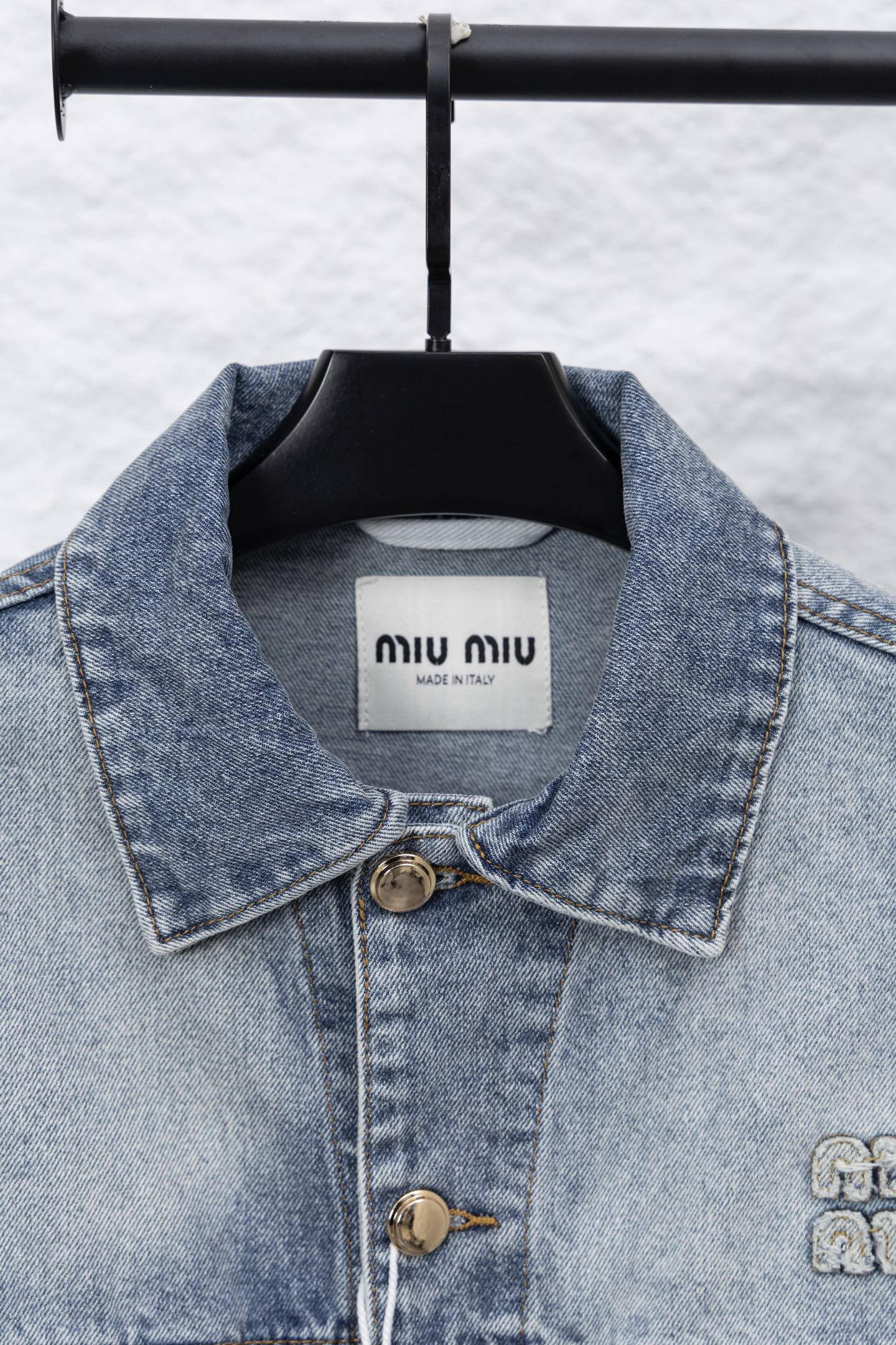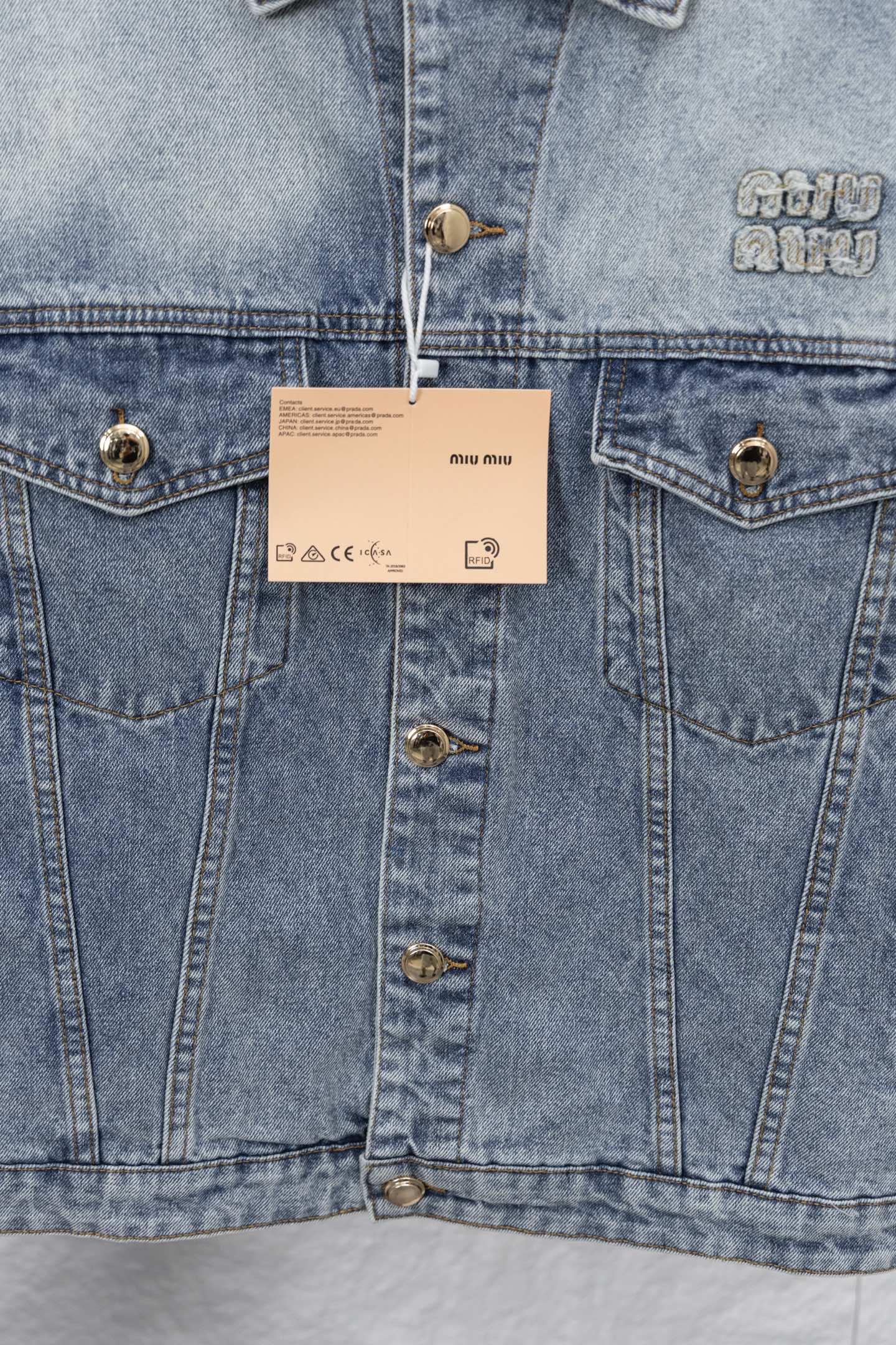 这款衣服是AAAAA 1:1 质量 (非常棒). 使用了和原版一模一样的材料. 商标部分也保持了和缪缪/Miu Miu一样. 图片拍摄是实物衣服拍摄, 您所收到的实物保证和我们图片一模一样.