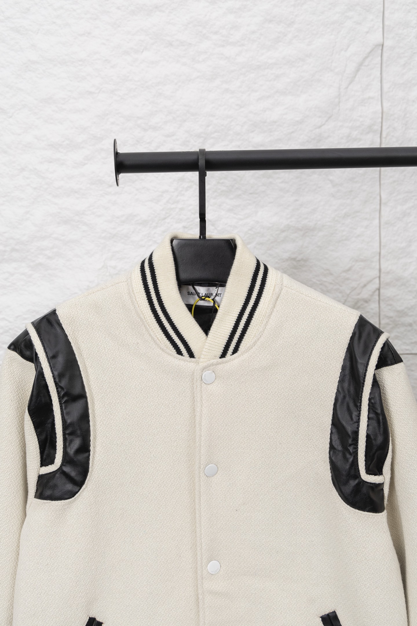 这款衣服是AAAAA 1:1 质量 (非常棒). 使用了和原版一模一样的材料. 商标部分也保持了和圣罗兰/Saint Laurent一样. 图片拍摄是实物衣服拍摄, 您所收到的实物保证和我们图片一模一样.