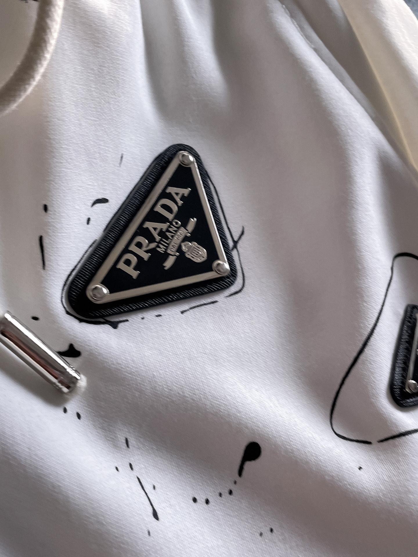 这款衣服是AAAAA 1:1 质量 (非常棒). 使用了和原版一模一样的材料. 商标部分也保持了和普拉达/Prada一样. 图片拍摄是实物衣服拍摄, 您所收到的实物保证和我们图片一模一样.