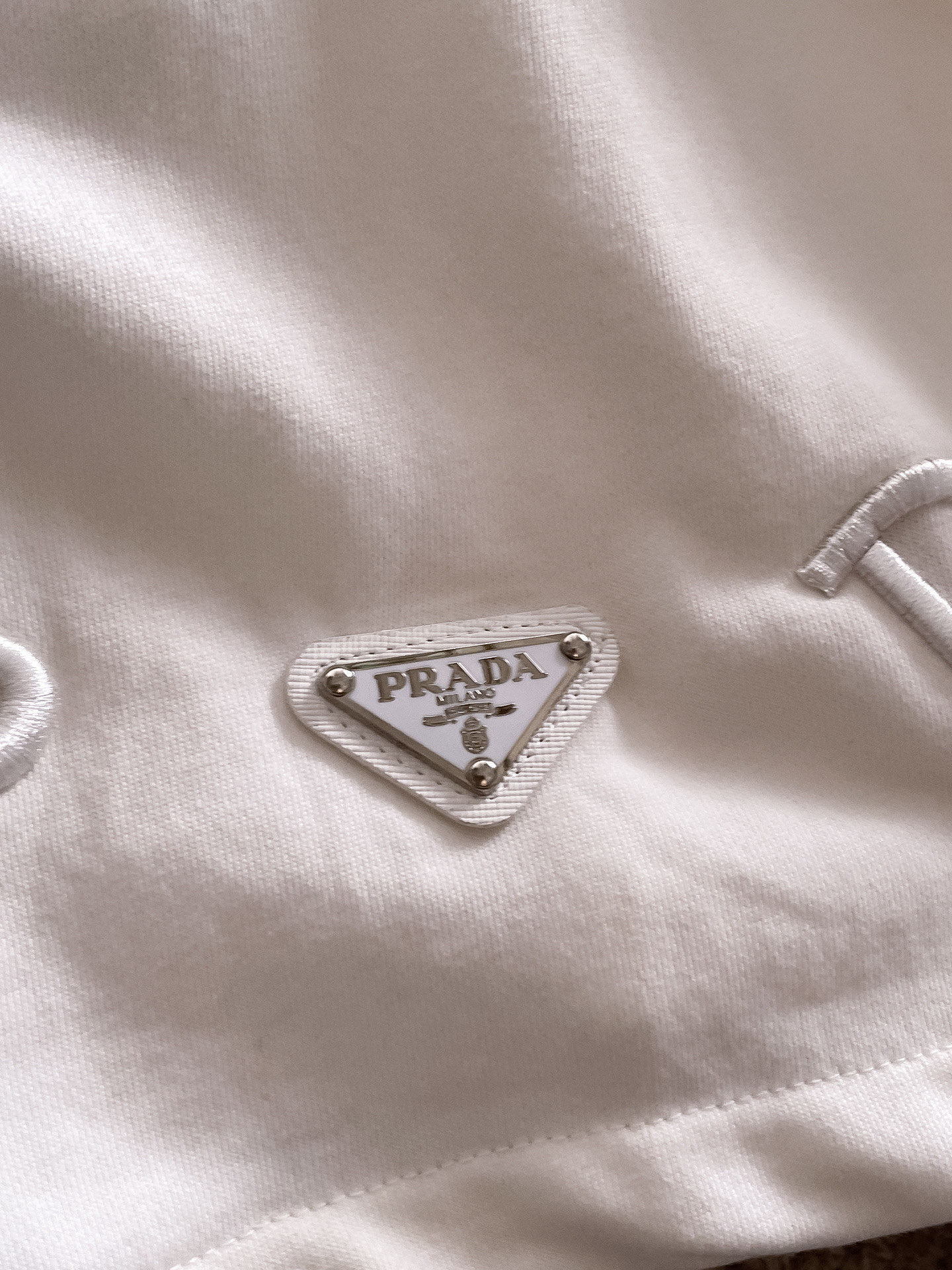 这款衣服是AAAAA 1:1 质量 (非常棒). 使用了和原版一模一样的材料. 商标部分也保持了和普拉达/Prada一样. 图片拍摄是实物衣服拍摄, 您所收到的实物保证和我们图片一模一样.