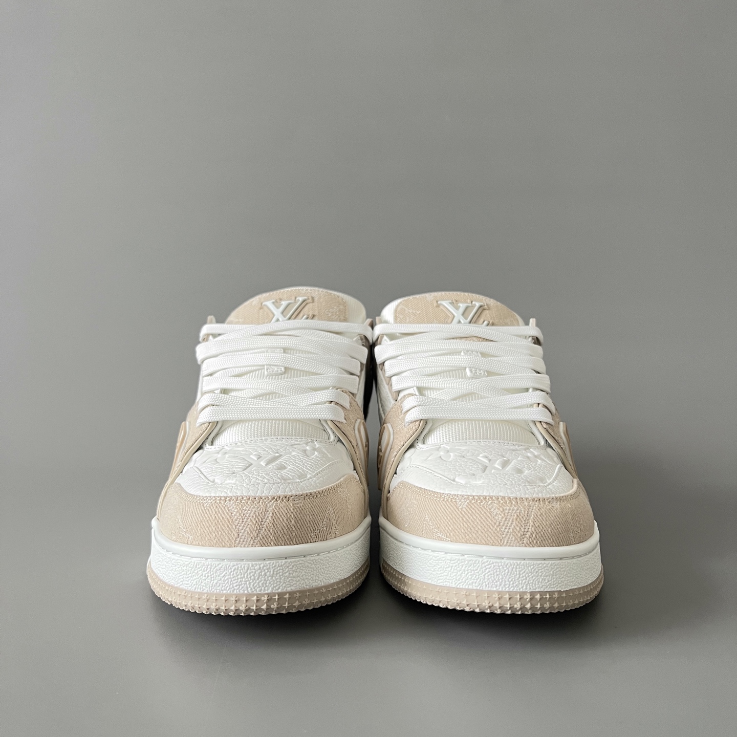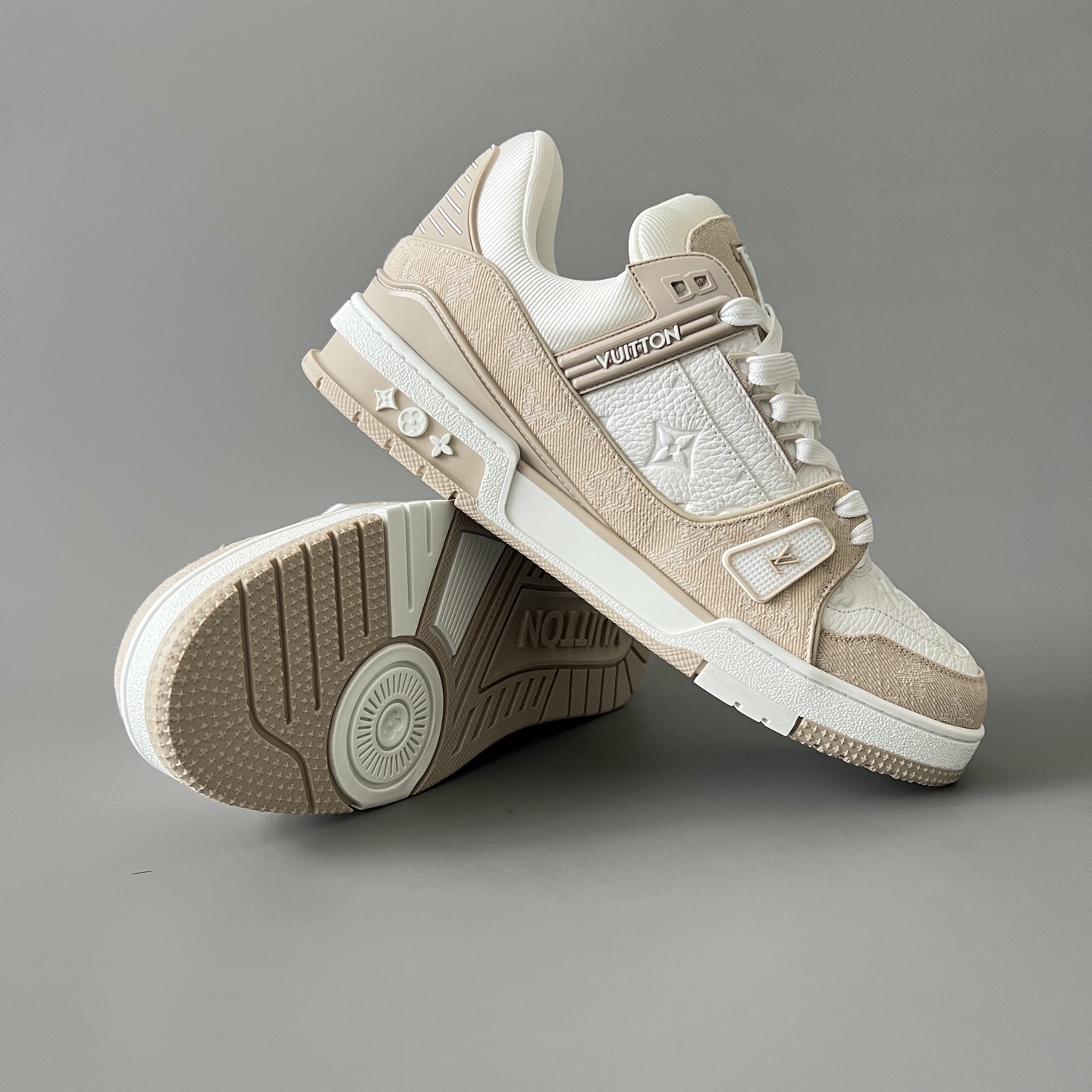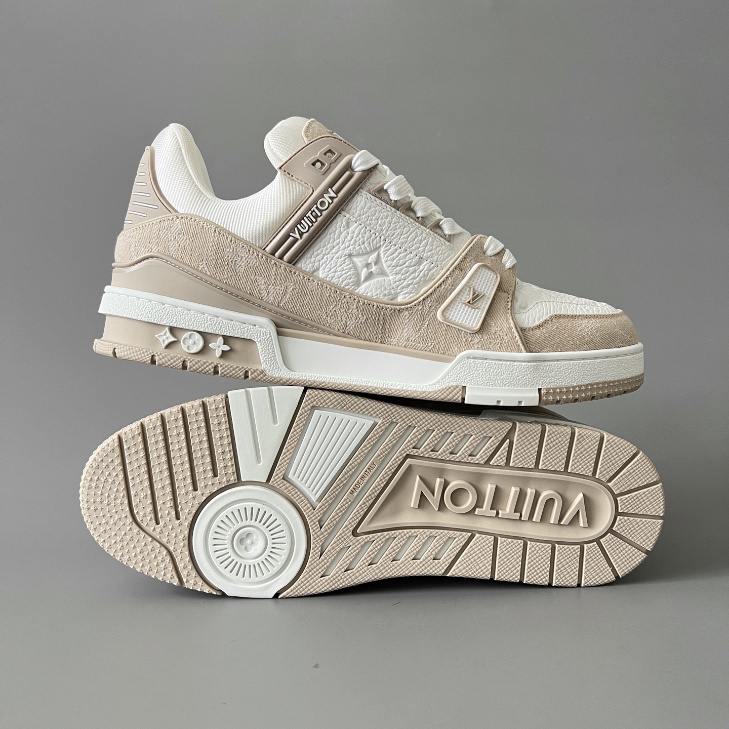 这款鞋子是AAAAA 1:1 质量 (非常棒). 使用了和原版一模一样的材料. 商标部分也保持了和路易威登/Louis Vuitton一样. 图片拍摄是实物鞋子拍摄, 您所收到的实物保证和我们图片一模一样.