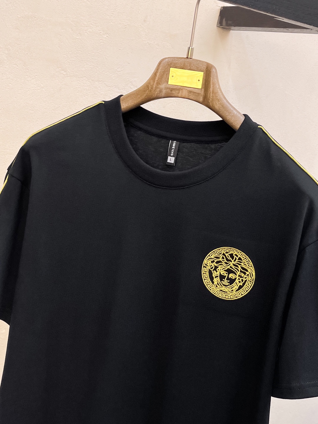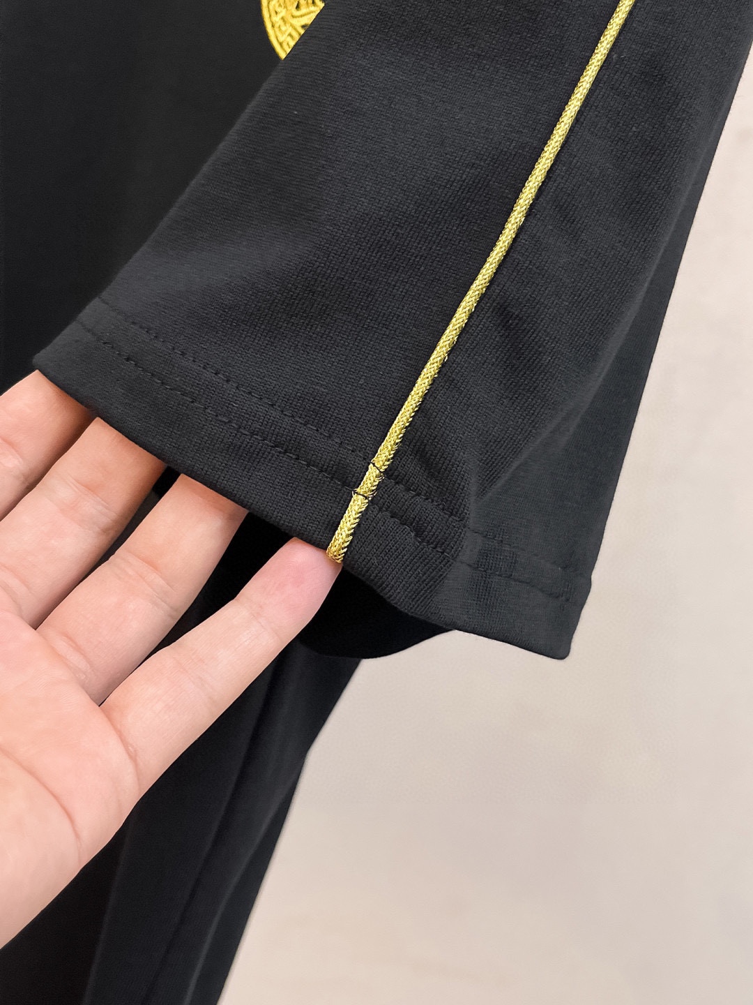 这款衣服是AAAAA 1:1 质量 (非常棒). 使用了和原版一模一样的材料. 商标部分也保持了和范思哲/Versace一样. 图片拍摄是实物衣服拍摄, 您所收到的实物保证和我们图片一模一样.