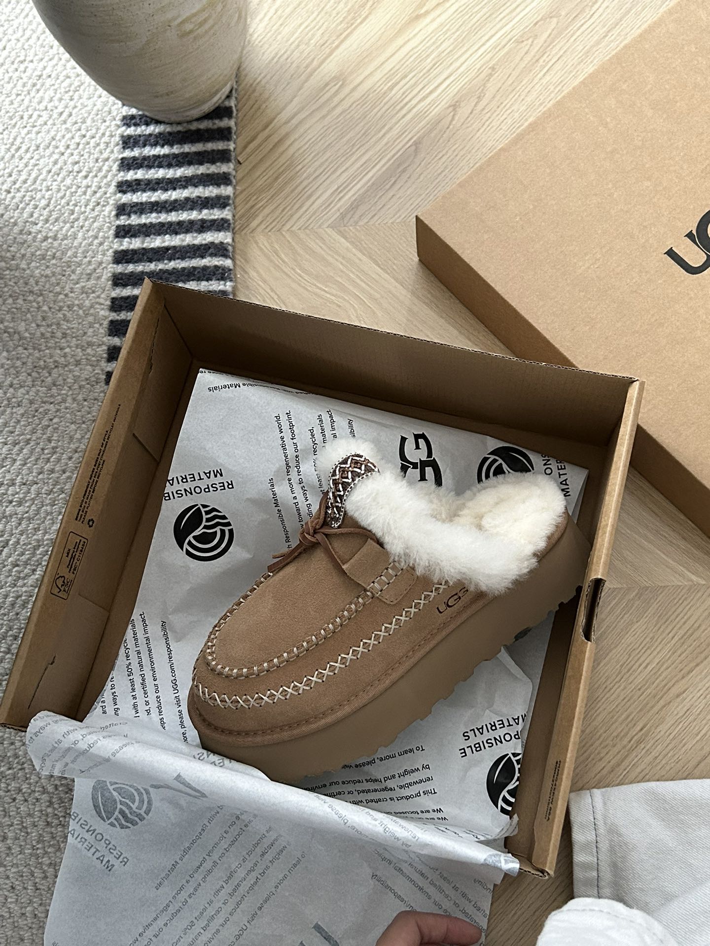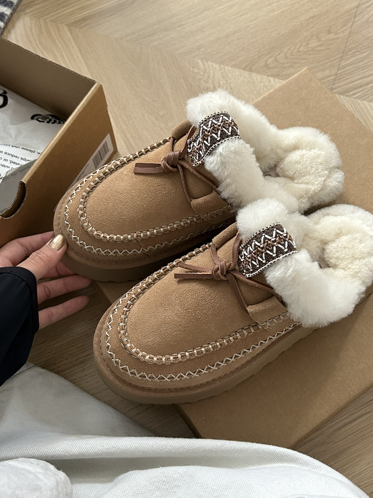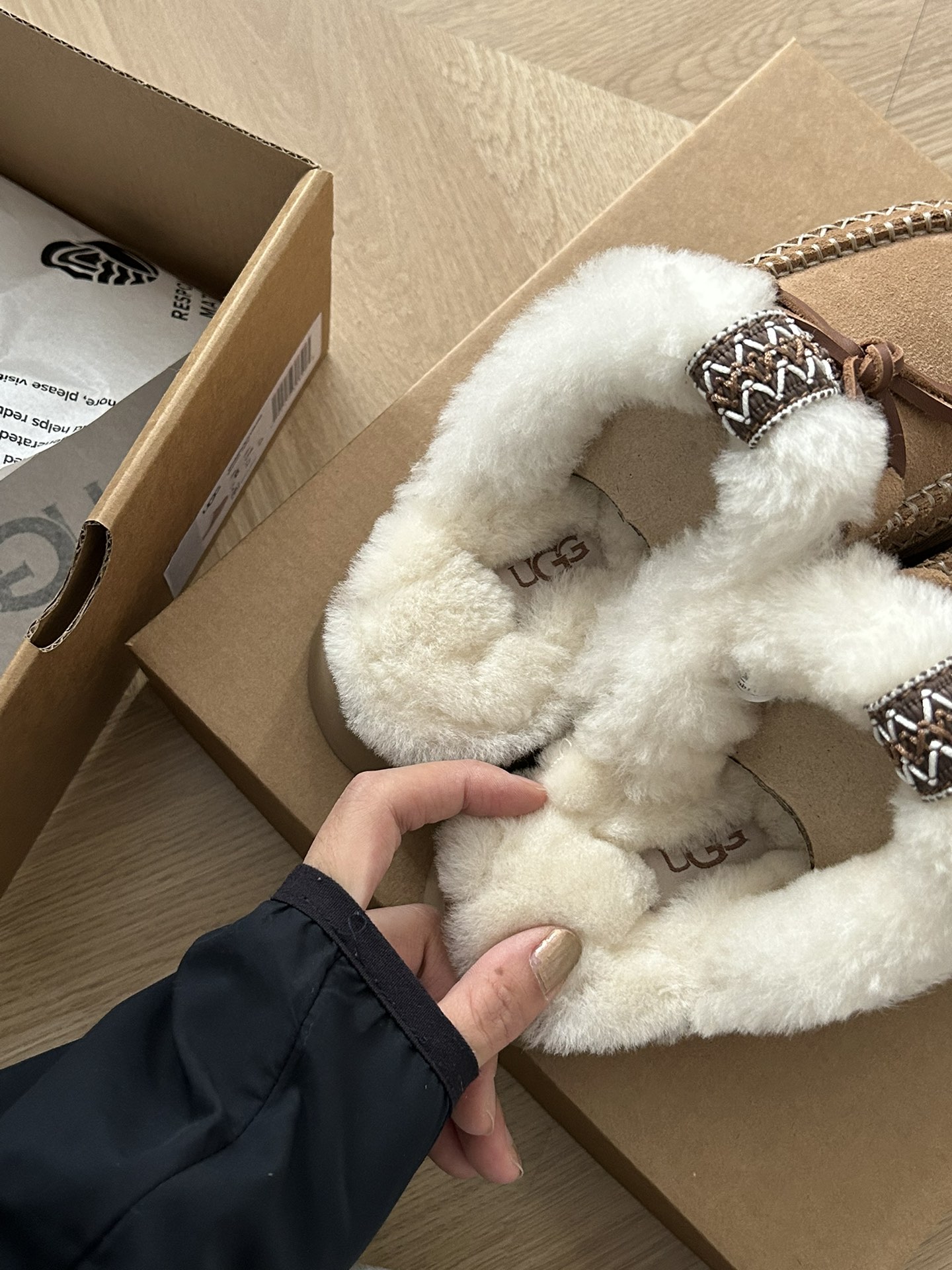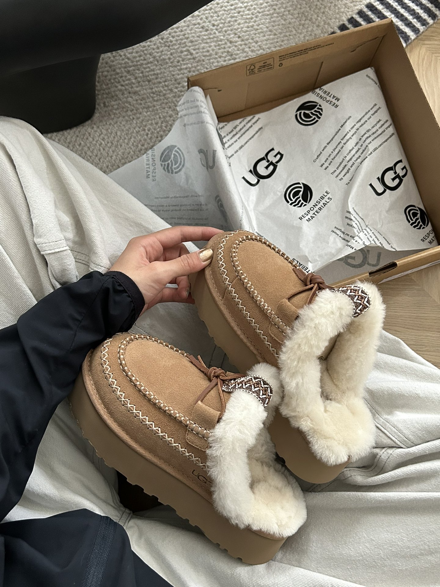 这款鞋子是AAAAA 1:1 质量 (非常棒). 使用了和原版一模一样的材料. 商标部分也保持了和UGG雪地靴一样. 图片拍摄是实物鞋子拍摄, 您所收到的实物保证和我们图片一模一样.