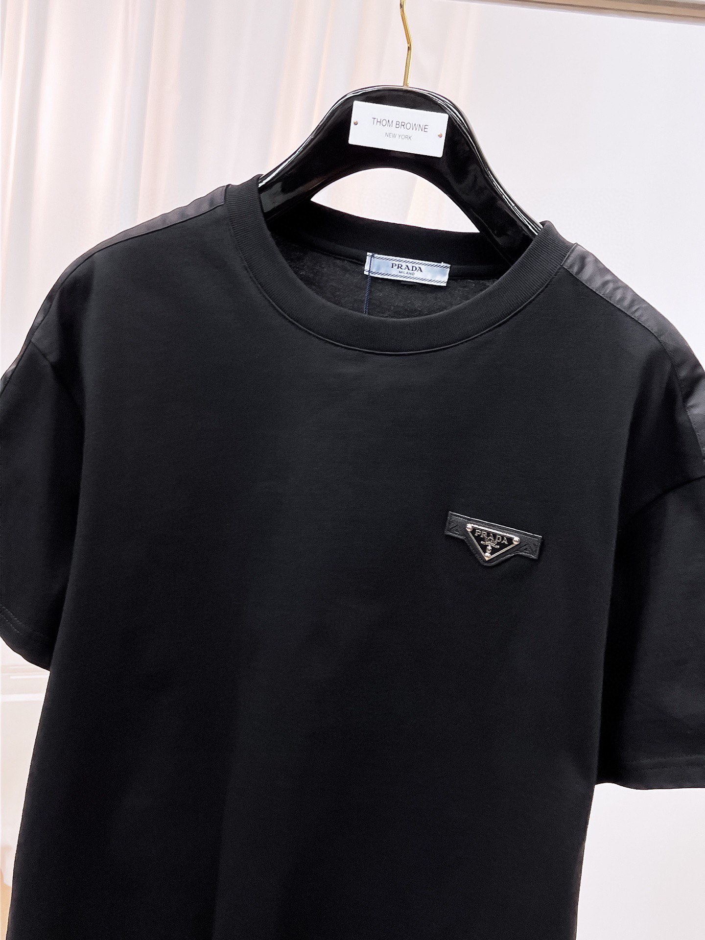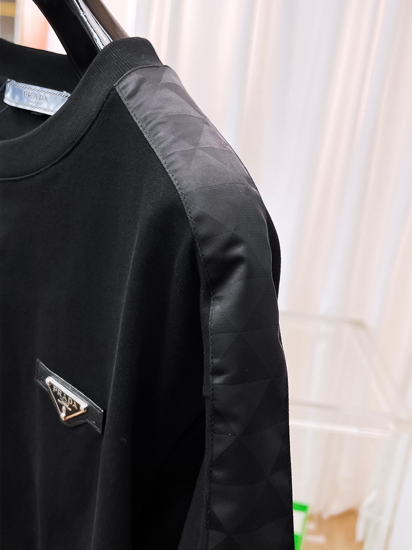 这款衣服是AAAAA 1:1 质量 (非常棒). 使用了和原版一模一样的材料. 商标部分也保持了和普拉达/Prada一样. 图片拍摄是实物衣服拍摄, 您所收到的实物保证和我们图片一模一样.