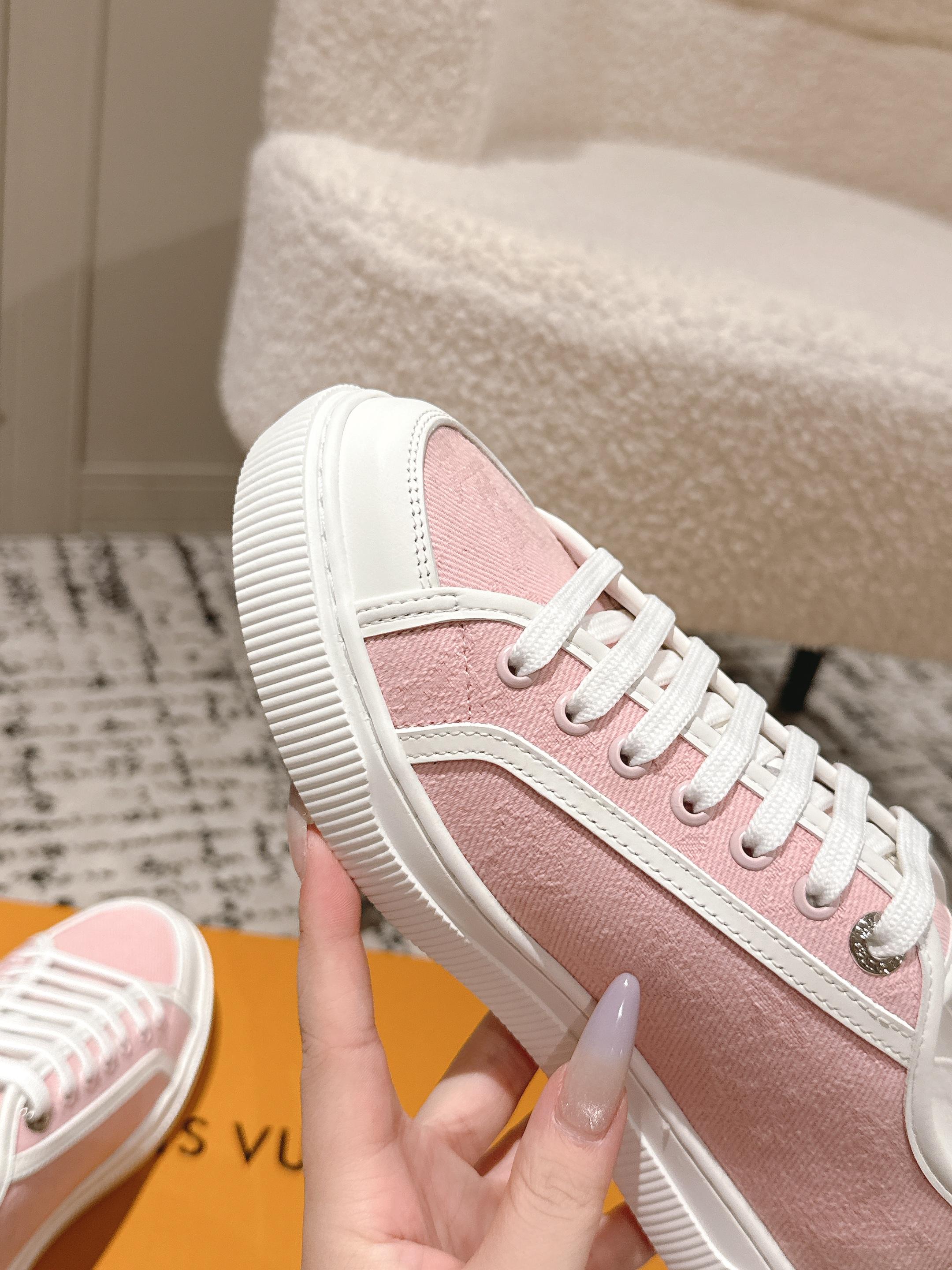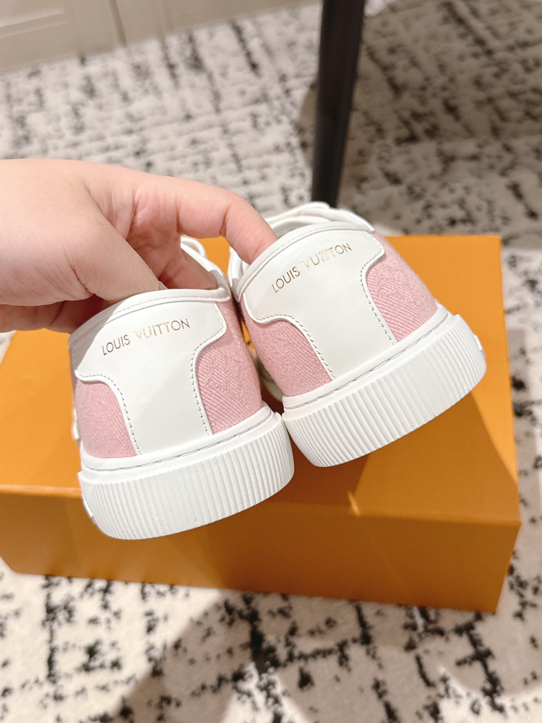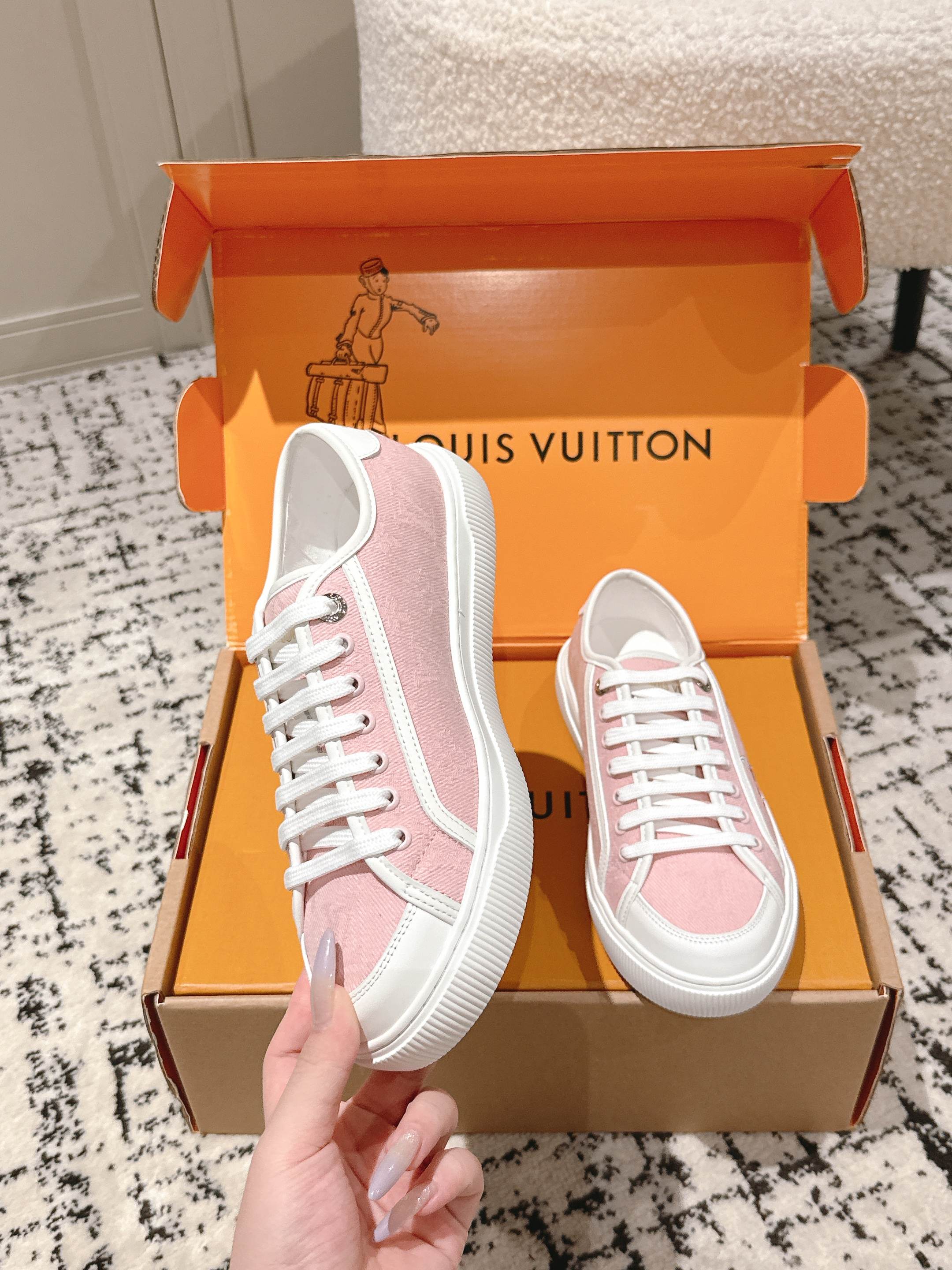 这款鞋子是AAAAA 1:1 质量 (非常棒). 使用了和原版一模一样的材料. 商标部分也保持了和路易威登/Louis Vuitton一样. 图片拍摄是实物鞋子拍摄, 您所收到的实物保证和我们图片一模一样.